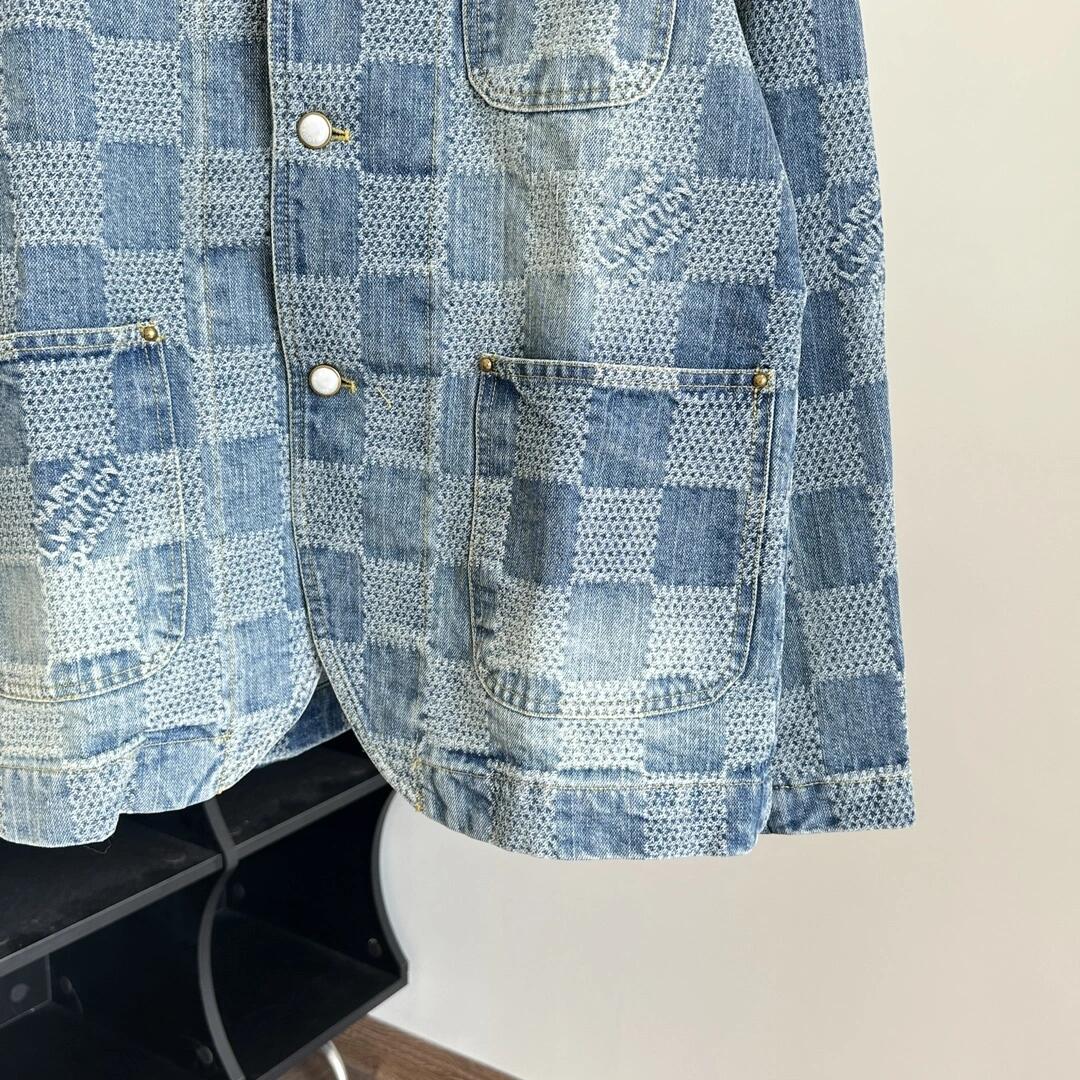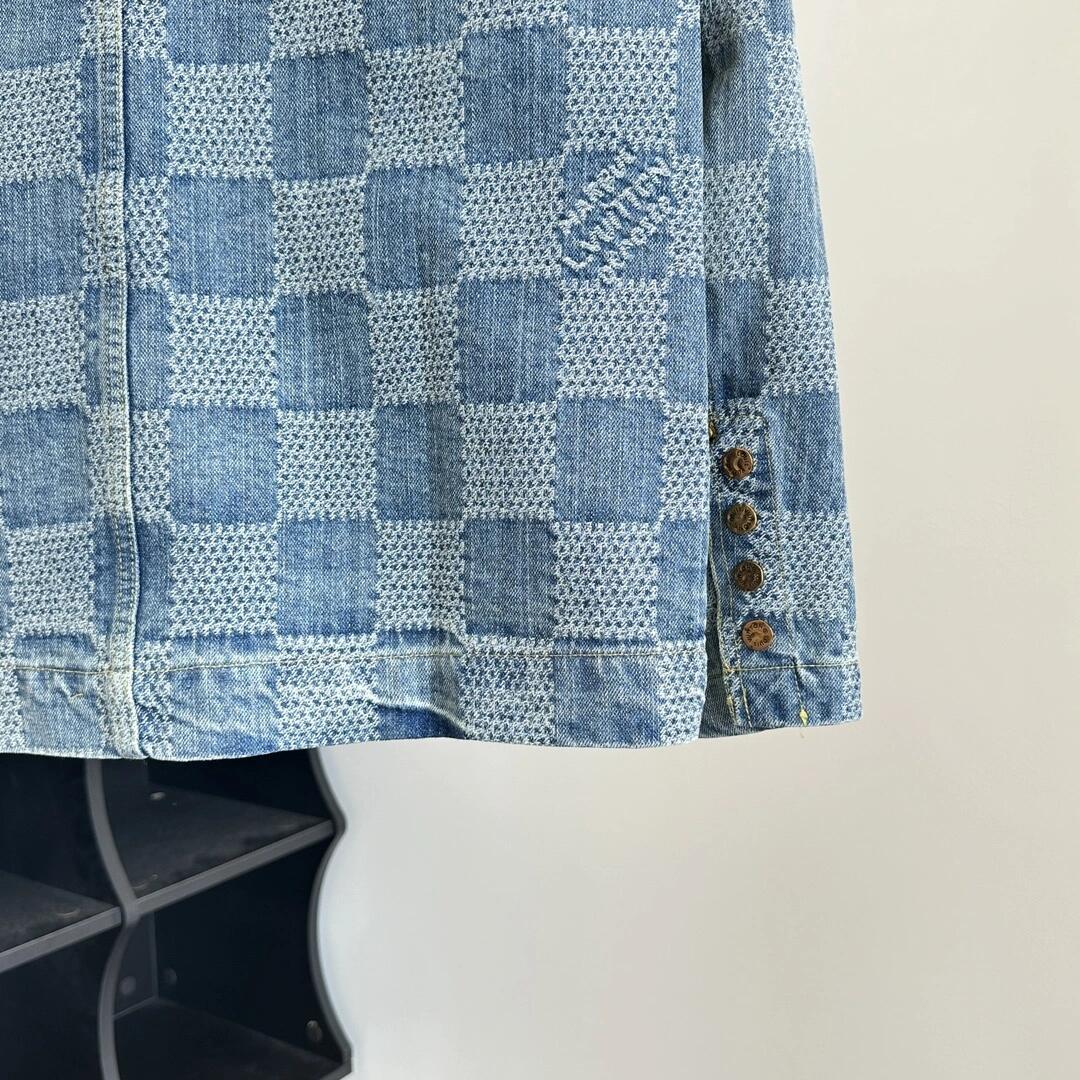 Diese Jeansjacke aus 3D-Damier-Jacquard-Stoff hat ein elegantes kragenloses Design und geknöpfte Manschetten für einen Dandy-Look, der gut zu passenden Hosen passt.