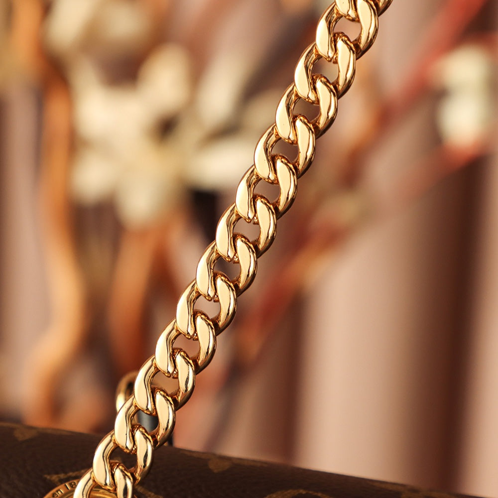 Braunes, beschichtetes Canvas mit Monogramm und Passy-Goldbeschlägen