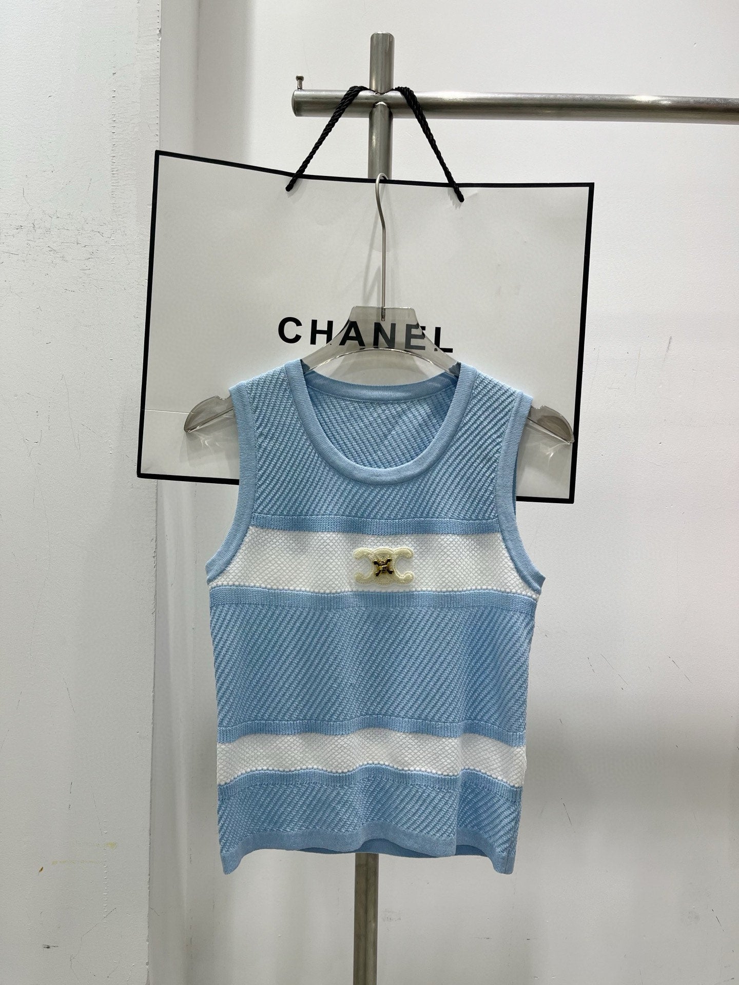 Diese ärmellose Strickweste ist ein raffiniertes Basic, das klassische französische Eleganz mit moderner Vielseitigkeit verbindet und die raffinierte Ästhetik der Trends verkörpert.