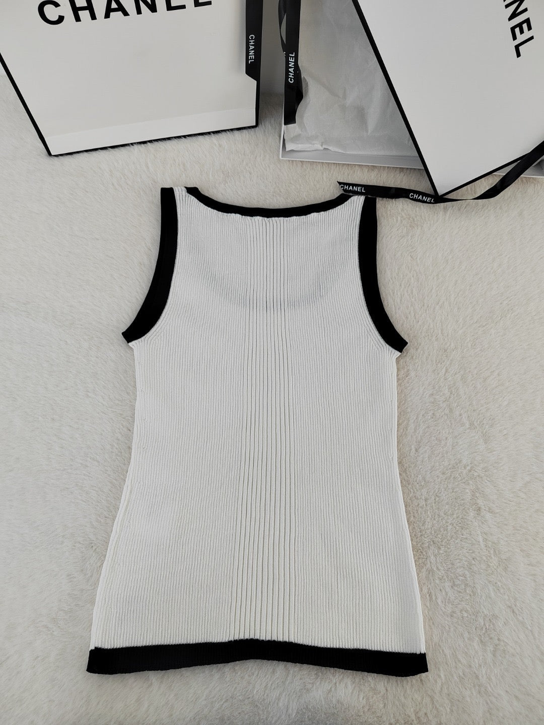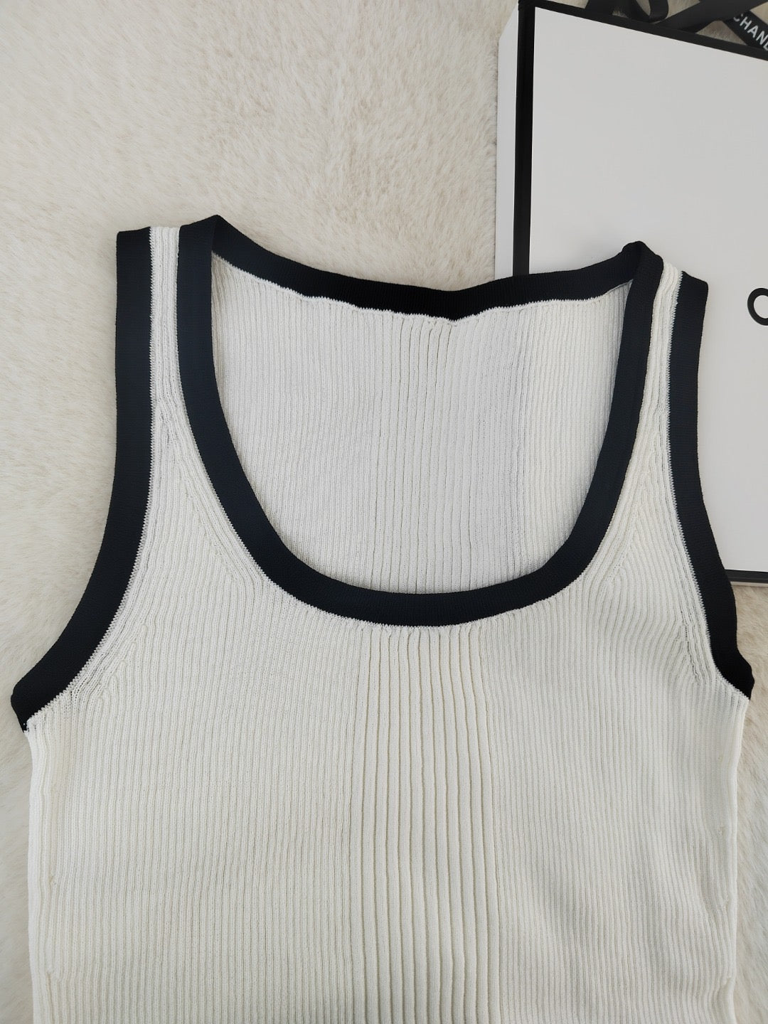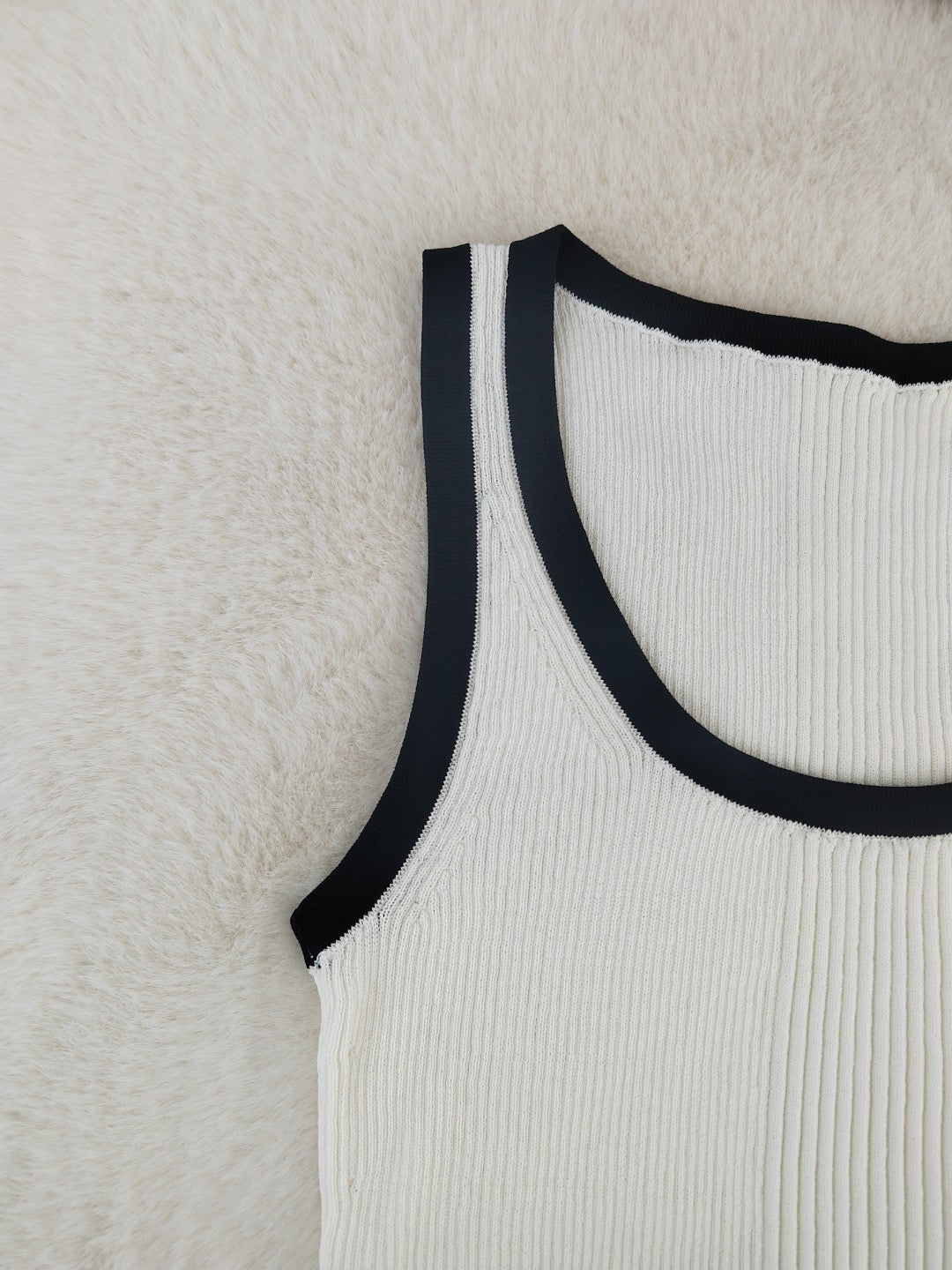 Diese ärmellose Strickweste ist ein raffiniertes Basic, das klassische französische Eleganz mit moderner Vielseitigkeit verbindet und die raffinierte Ästhetik der Trends verkörpert.