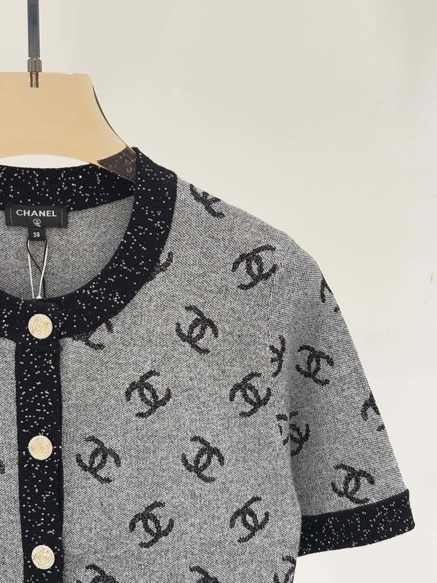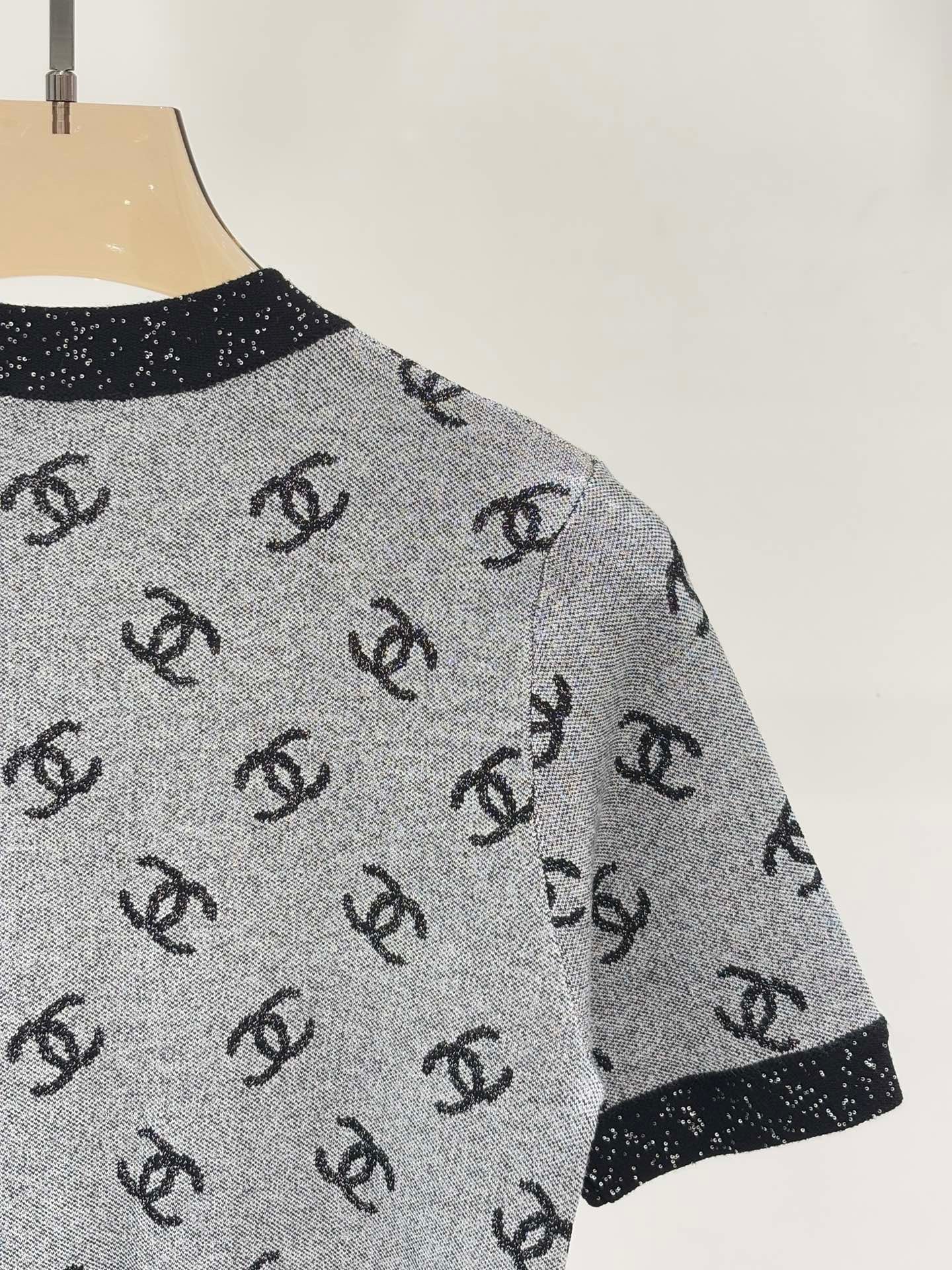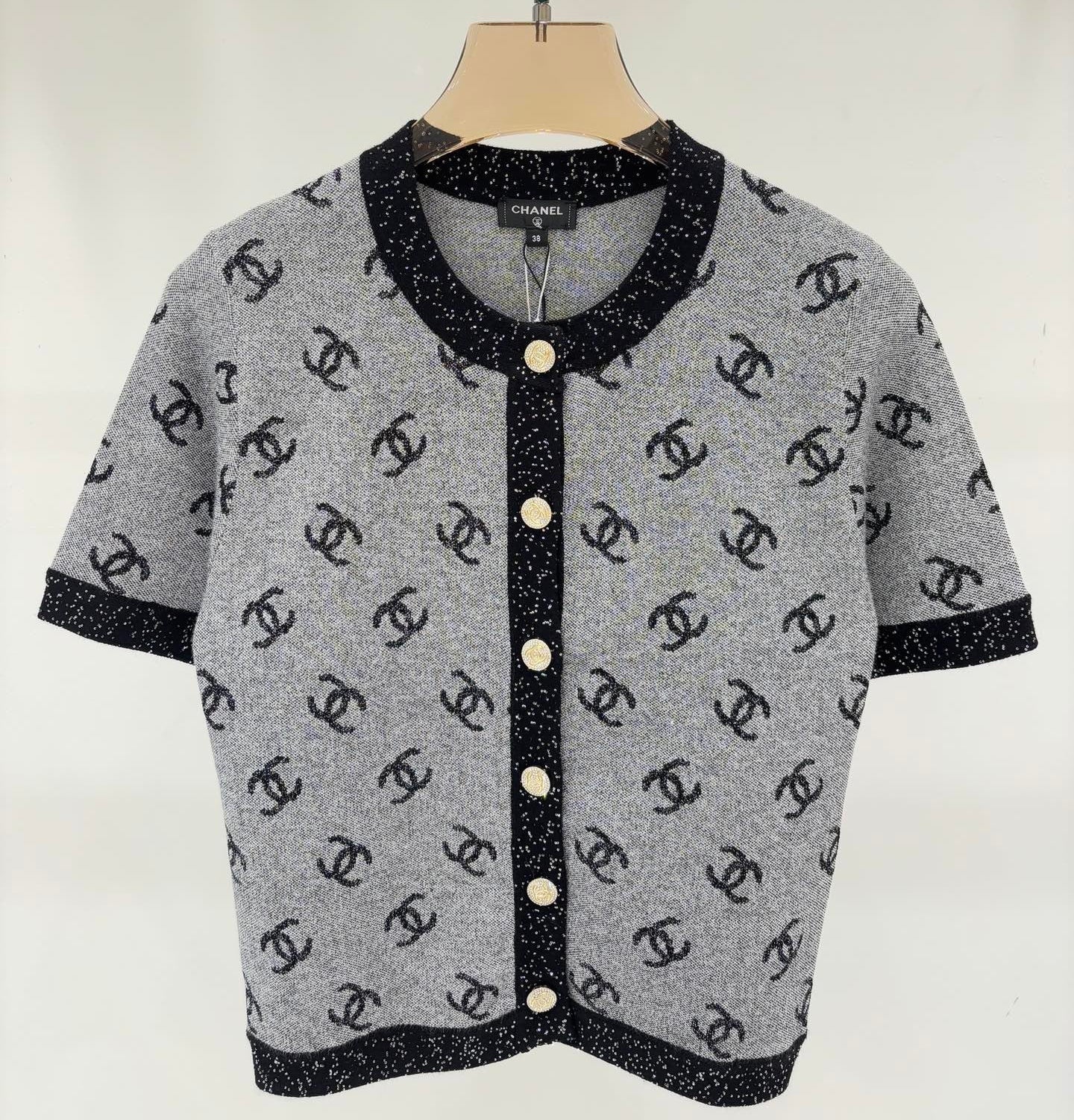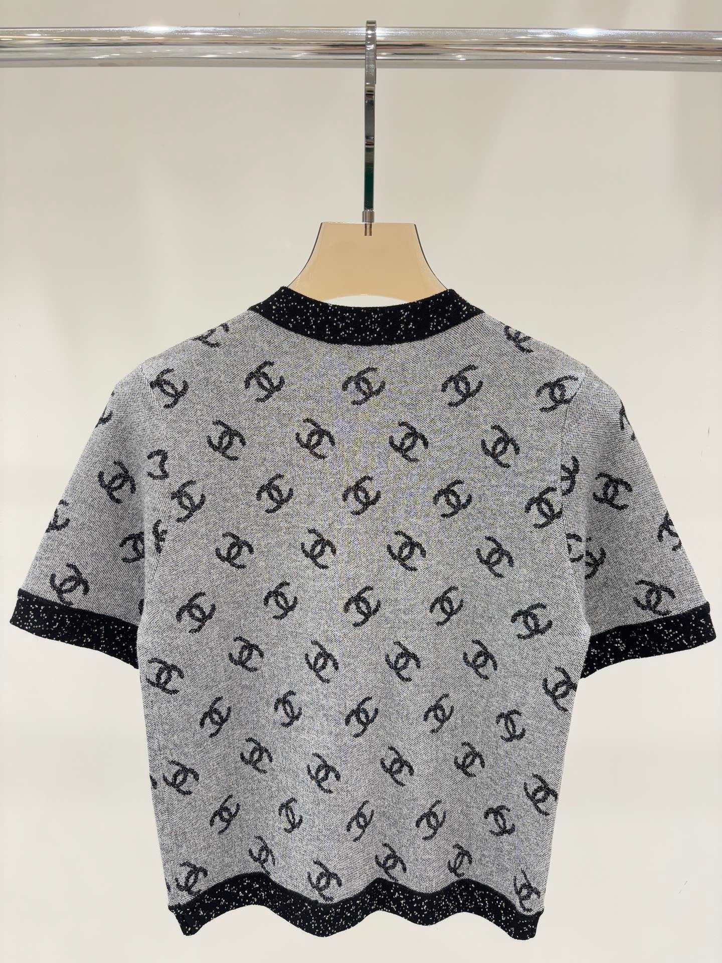 Neuankömmling Sommer 2025 – Grobstrick-Kurzarm-T-Shirt mit Stickerei und Metallic-Besatz