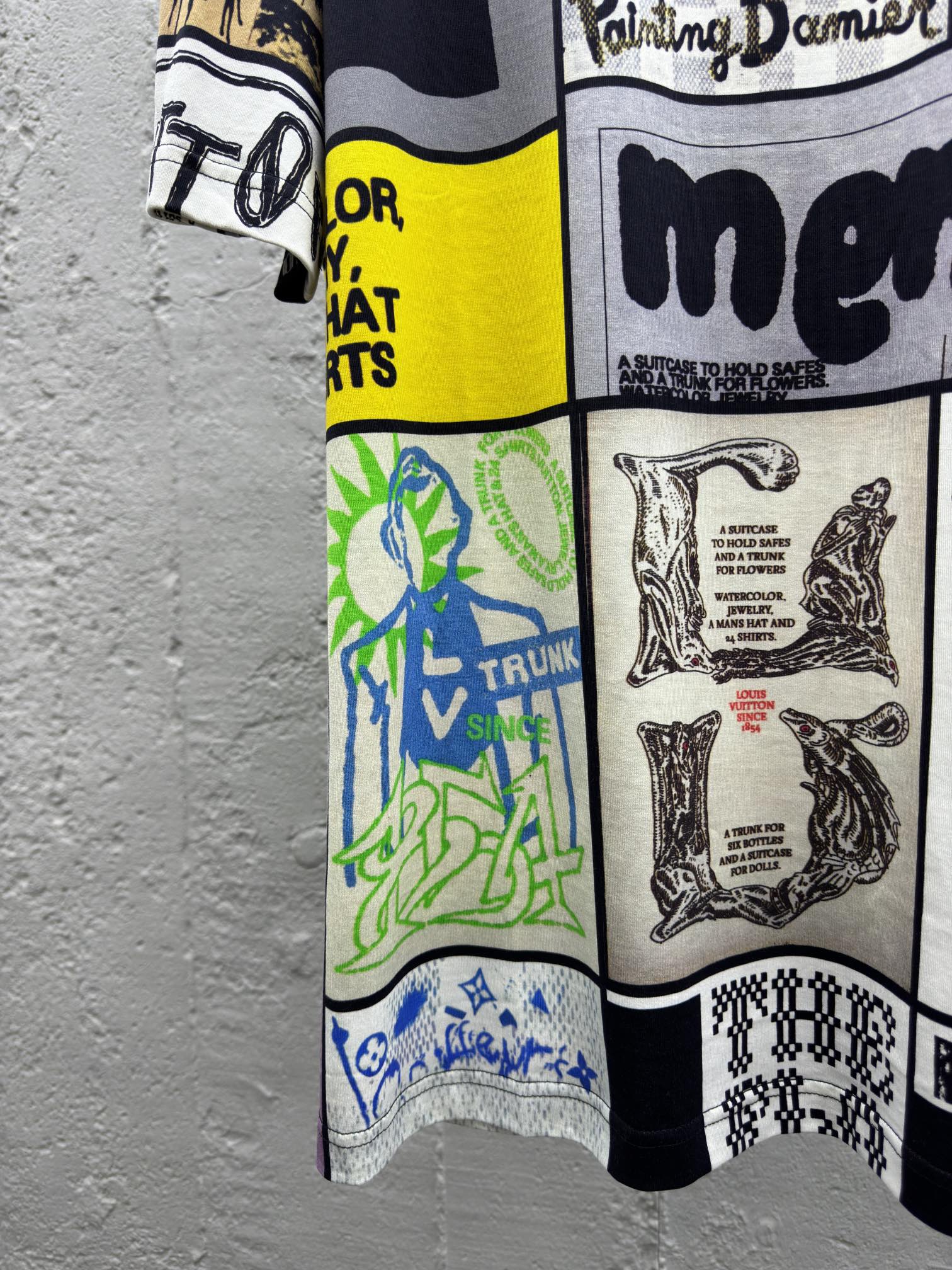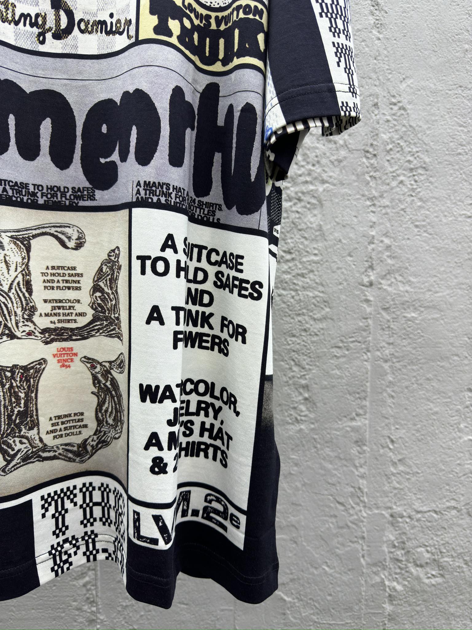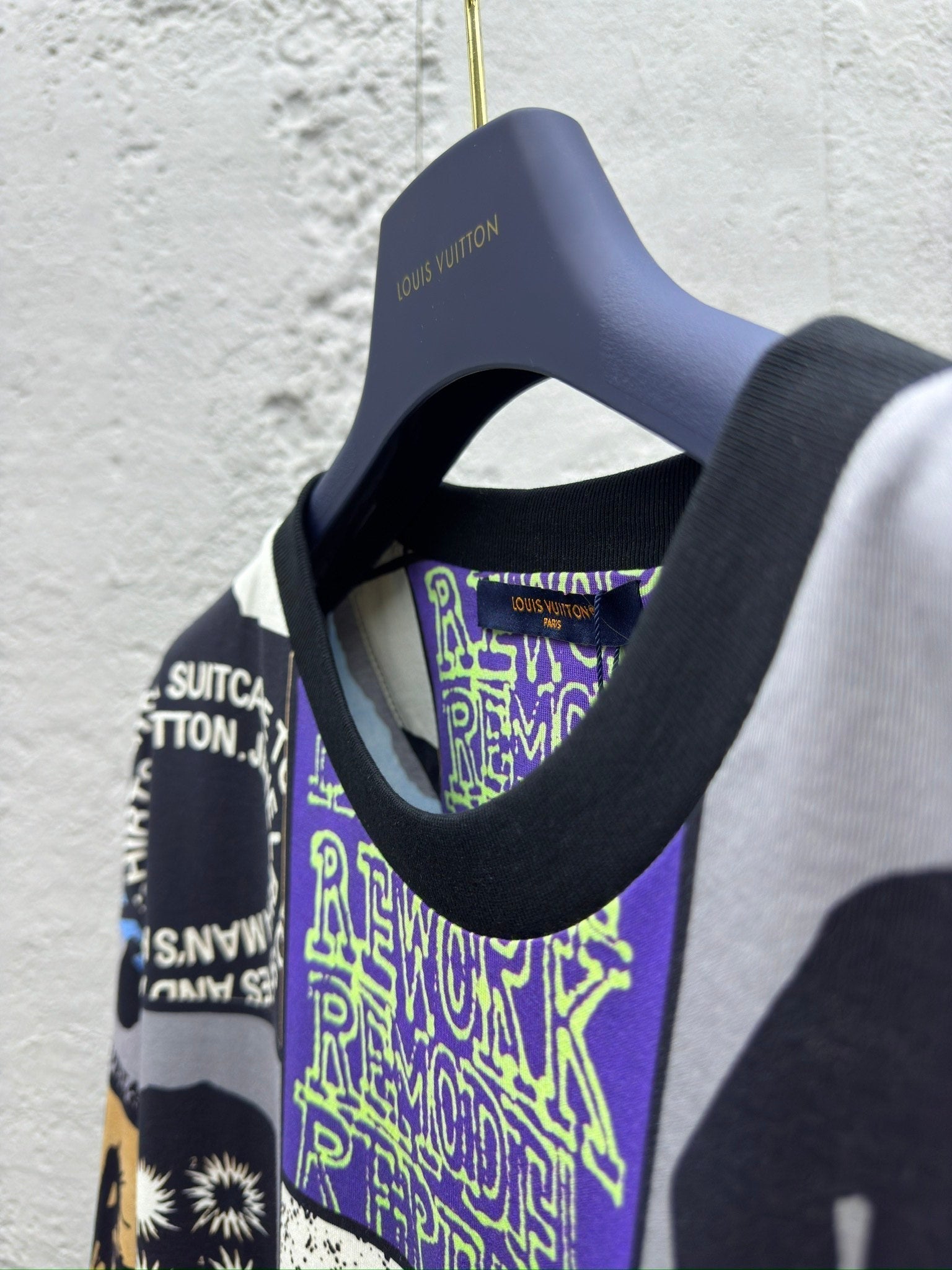 Hergestellt aus 40er-Doppelstrang-merzerisiertem Baumwoll-Unistoff mit einem Gewicht von 180 g. Der graue Stoff wird in einem Bottich gekocht, um Verunreinigungen und farbige Baumwollfaserhüllen zu entfernen. Es wird kein fluoreszierender Aufheller hinzugefügt, um den fertigen, nicht fluoreszierenden, weißen, halbgebleichten Grundstoff herzustellen. Der Stoff wird im aktiven digitalen Direkt-Tintenstrahldruckverfahren hergestellt, indem die Y-Version des handgemalten Druckentwurfs gescannt, die ausgeschnittenen Teile positioniert und die Größe vergrößert wird, um quadratische, grobe Muster zu erstellen. Das gesamte Kleidungsstück hat 22 Farben. Es erfordert mehrere Mustererstellungen, um die Musterdetails zu ändern und die Farben anzupassen. Der Farbanpassungszyklus nimmt fast die Hälfte der Zeit in Anspruch. Monate, Drucken mit importierter Tinte, späteres Dämpfen und Waschen, Formen und Versenden, Laser-Infrarotmarkierung und manuelles Schneiden. Es wird mit 32er-Doppelgarn 1x1 Baumwollfaden und einem kompletten Satz passender Waschmarkierungszubehörteile geliefert.