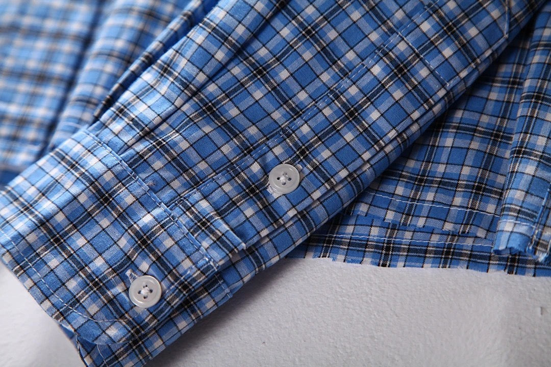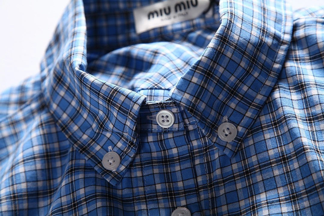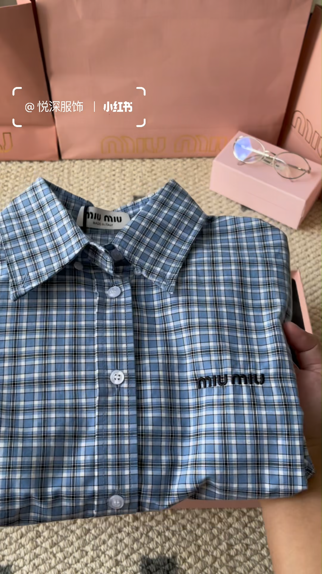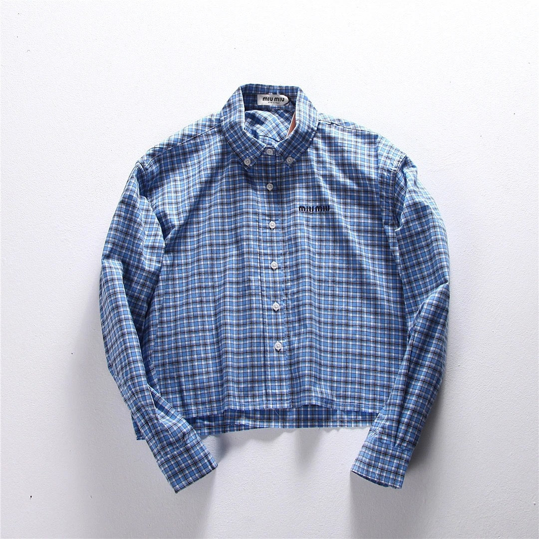 2025 Hellblaues kariertes Hemd mit kleinem Logo-Stickerei und Pelzbesatz, besticktes, bauchfreies Hemd mit langen Ärmeln, luxuriöser Old-Money-Stil 2025 Hellblaues kariertes Hemd mit kleinem Logo-Stickerei und Pelzbesatz, kleinkariertes Hemd mit Pelzbesatz, kariertes Hemd, der Ton ist wirklich schick. Verlieben Sie sich auf den ersten Blick, das kontrastierende Buchstaben-Logo-Stickerei-Design auf der Brust verleiht ein Gefühl von Lagenlook, das Design mit überschnittenen Schultern verändert die Schulterlinie, voller Lässigkeit, kann innen oder in Lagen getragen werden, schmal und klassisch, jeder Schnitt ist sehr stimmungsvoll, ich liebe karierte Hemden wirklich. Das feine blaue karierte Hemd mit individuellem Stoff führt den Retro-Old-Money-Stil fort. Der Basic-Stil kann auch modisch getragen werden, und das Design mit offenem Saum ist so modisch