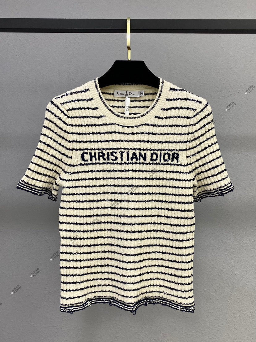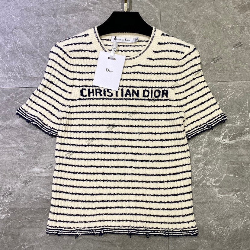 Echter Schuss, D's 🏠 neues Jacquard-Strickoberteil mit Buchstabenlogo, gestreiftem Rundhalsausschnitt und kurzen Ärmeln, Verarbeitungsdetails vorhanden 👍 hohe Qualität ✔️ Aprikosenstreifen, SML