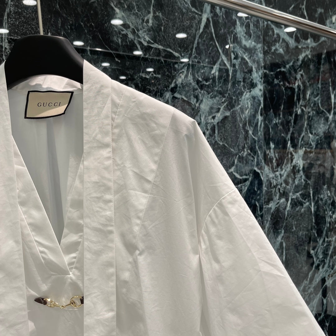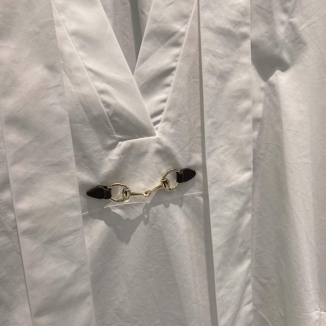 Horsebit-Bänderhemd Individueller Kragen mit langem Banddesign Breiter Manschettenschnitt Horsebit-Lederverzierung auf der Brust Einfach und fortschrittlich