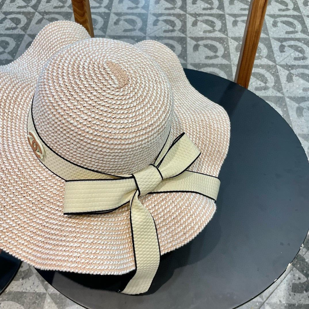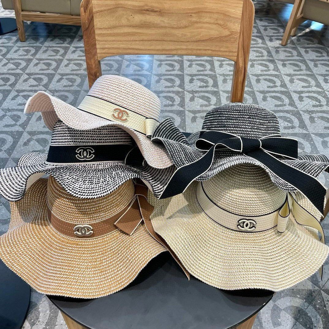 Hut mit breiter Krempe im Perlenstil mit Rüschen, Beckenhut, Strohhut, Must-Have zum Ausgehen, einfach zu kombinieren, mit Verstellseil