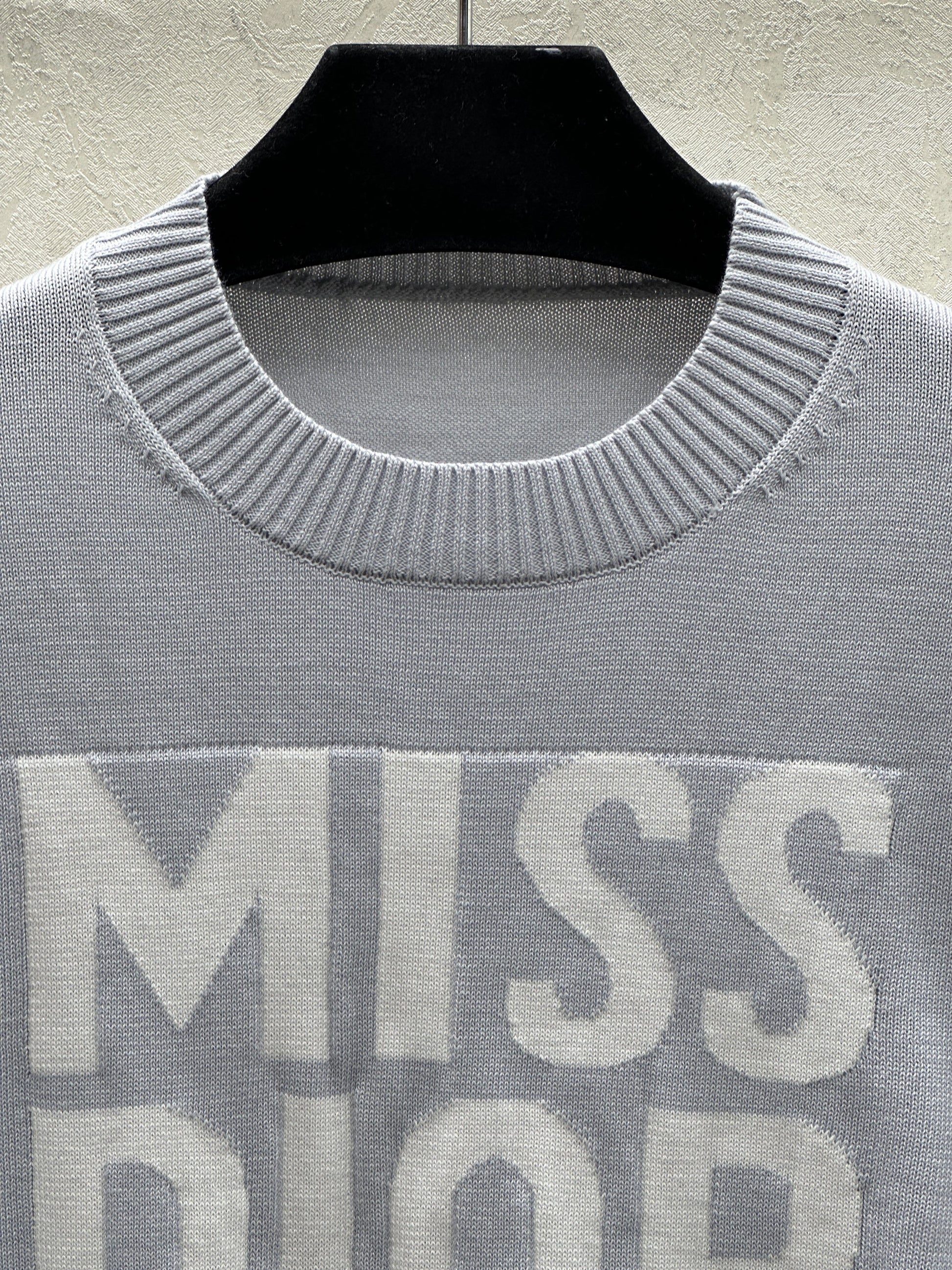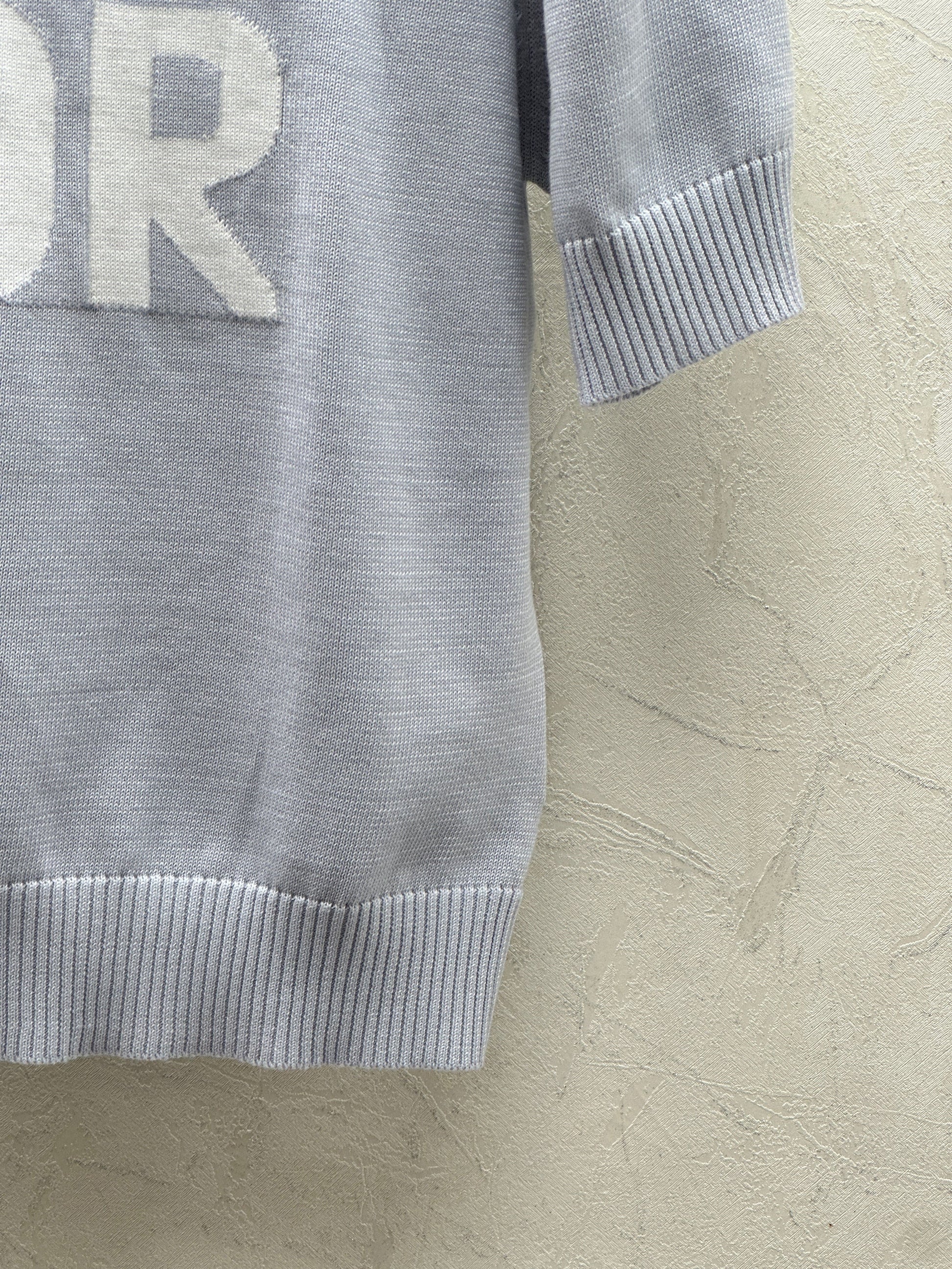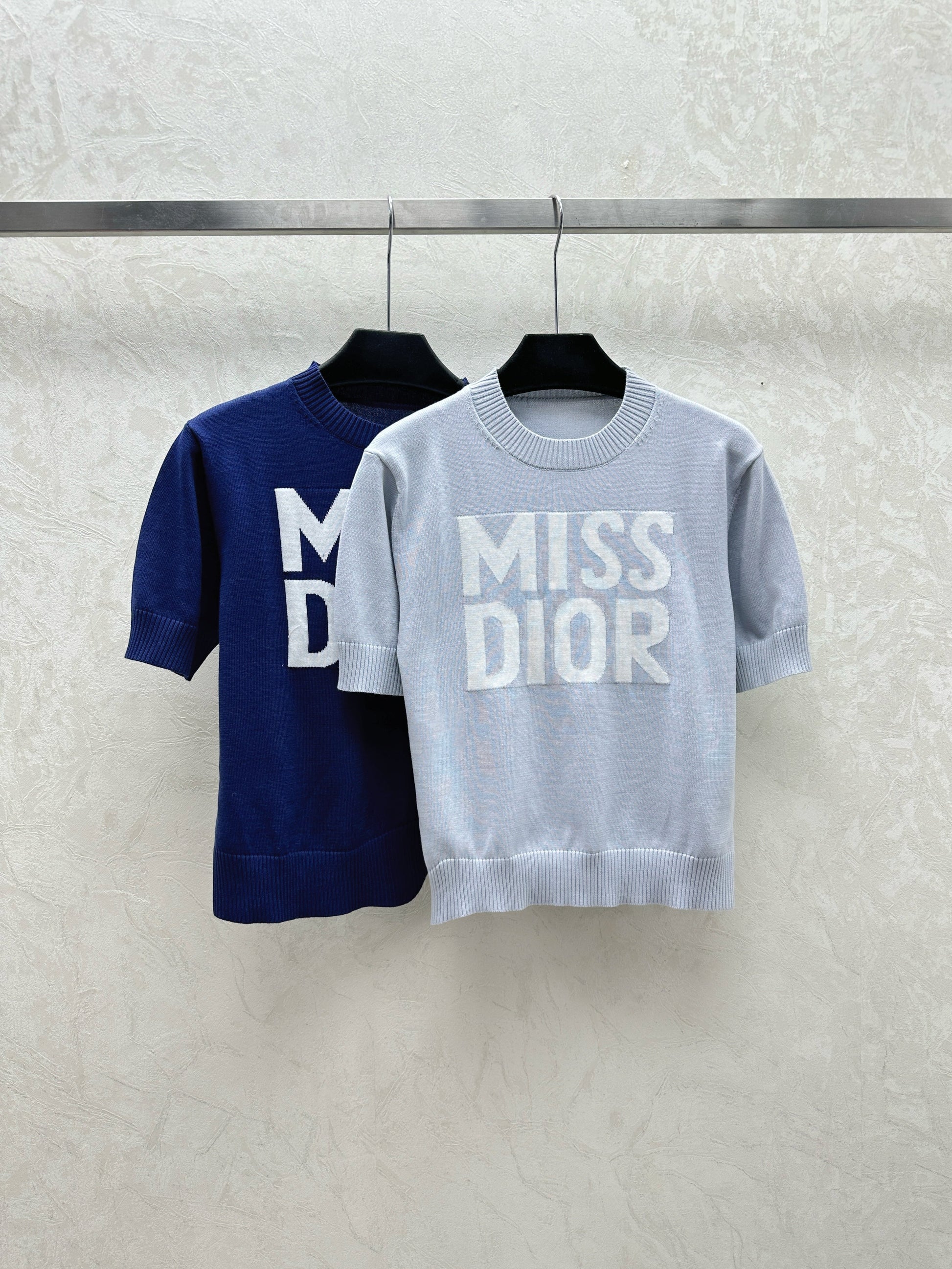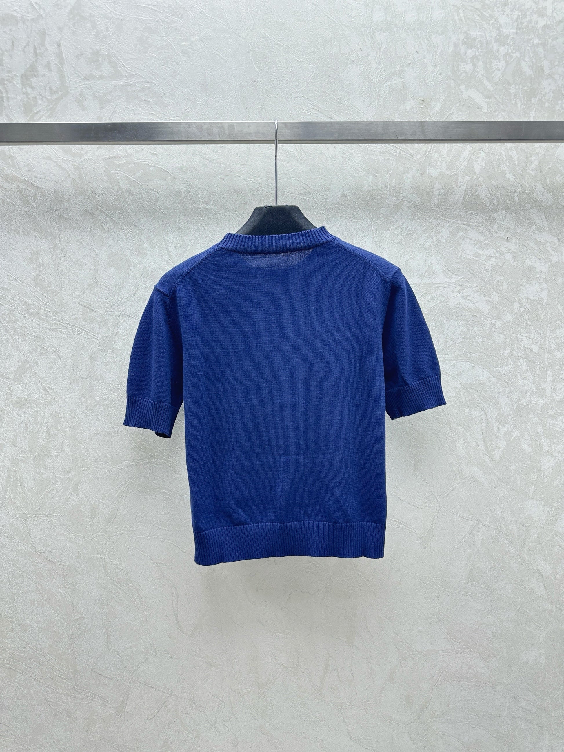 Einfaches, kontrastfarbenes, gestricktes Kurzarm-Oberteil mit Rundhalsausschnitt