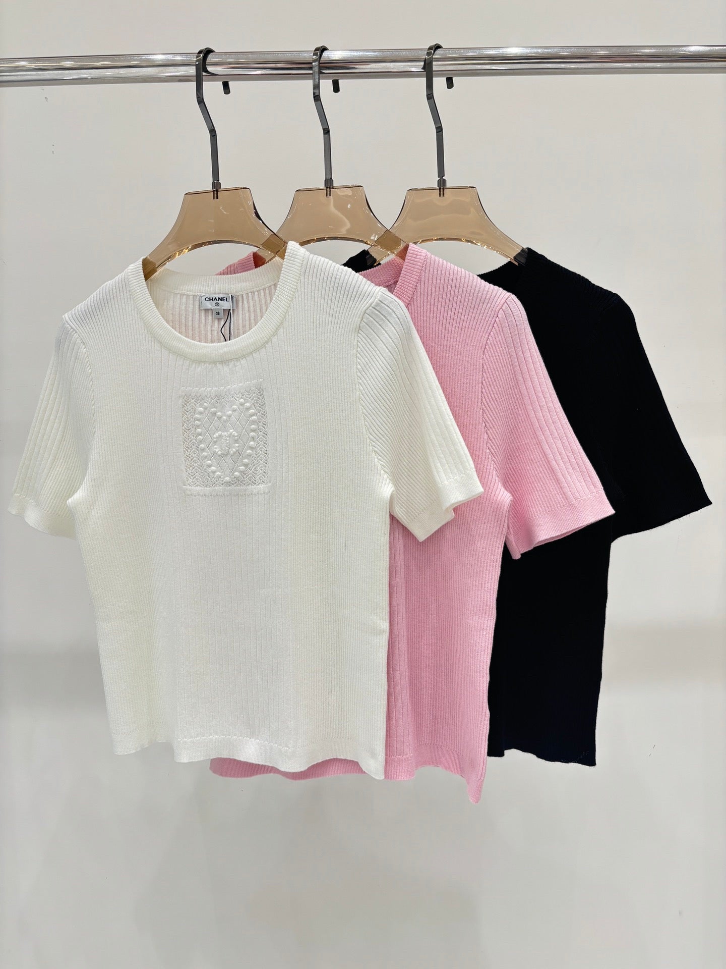 25B neuer Stil 💗 Love-Strickweste ➕ Kurzarm ➕ Langarm-Serie mit Love-Logo-Muster auf der Brust, individuelles ultrafeines Garn plus importierte Maschinentechnologie, einfache und vielseitige Rückseite mit zweifarbigem Metalletikett, leichte und bequeme und atmungsaktive Universalweste, die zu allen Jahreszeiten passt, drei Farben SML