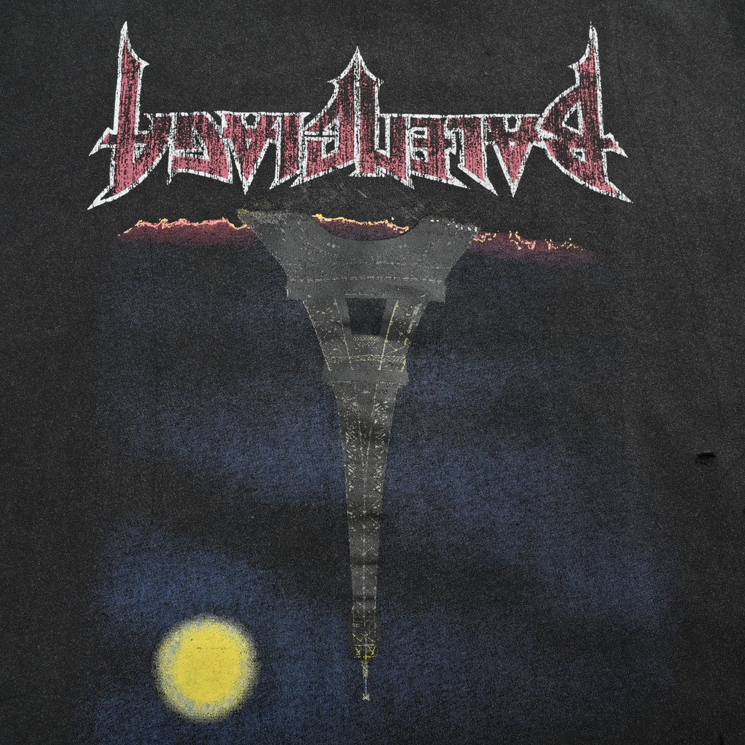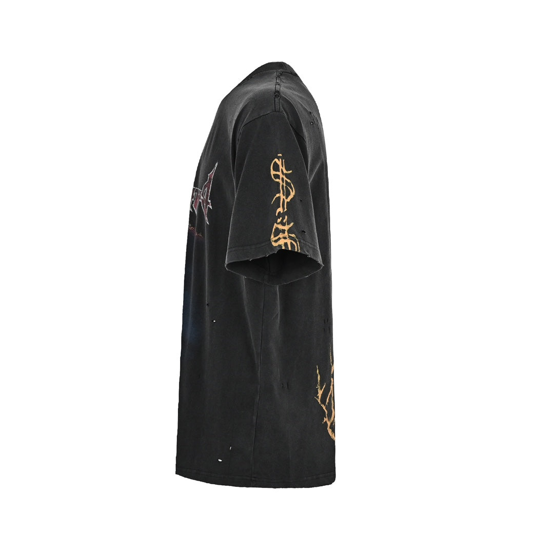 Iron Tower – Beschädigte, gewaschene Kurzarm-Letterprints