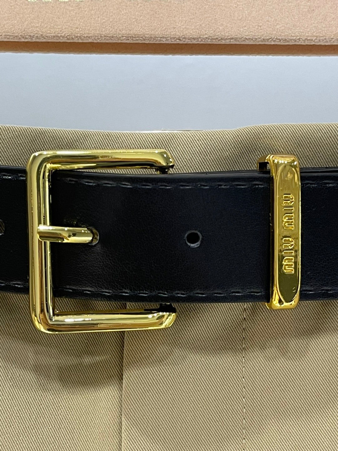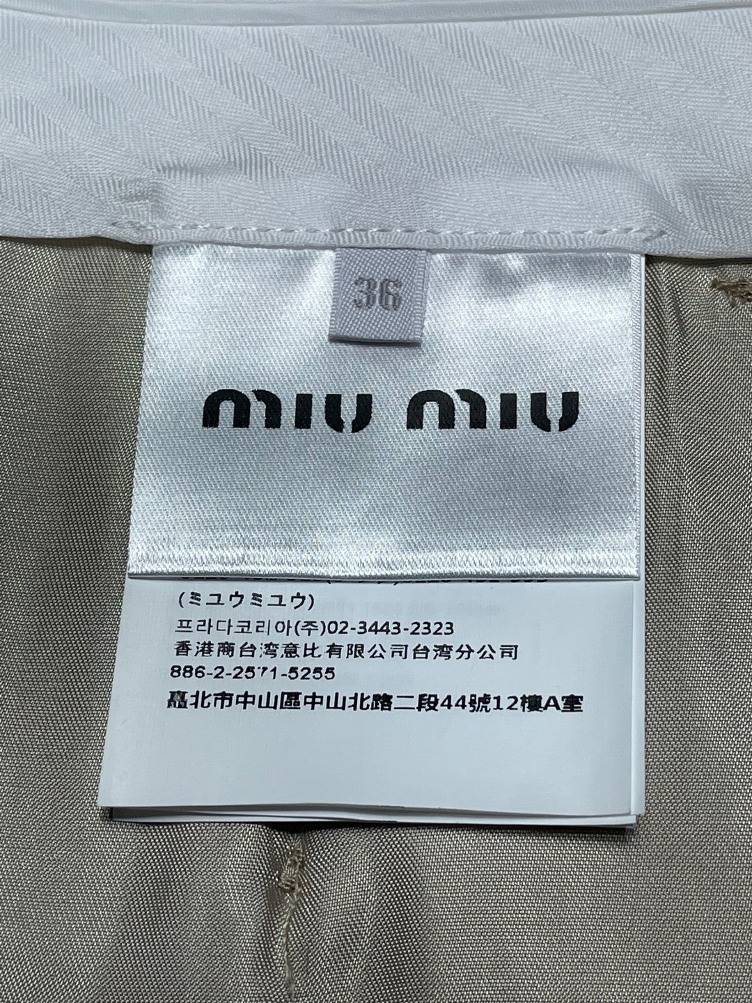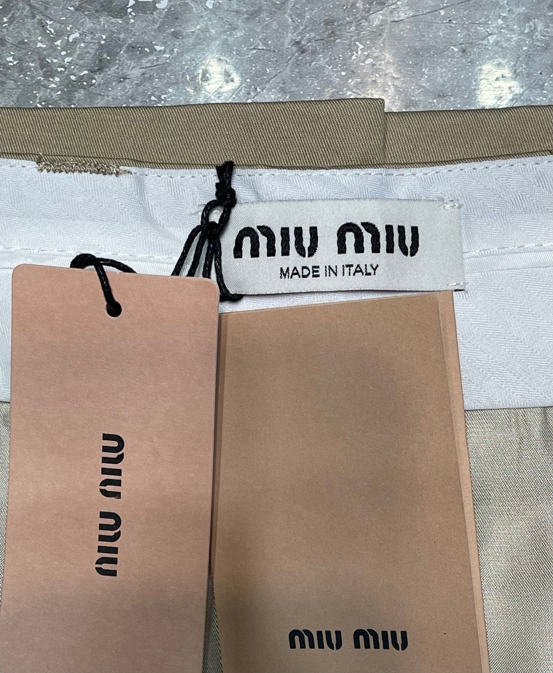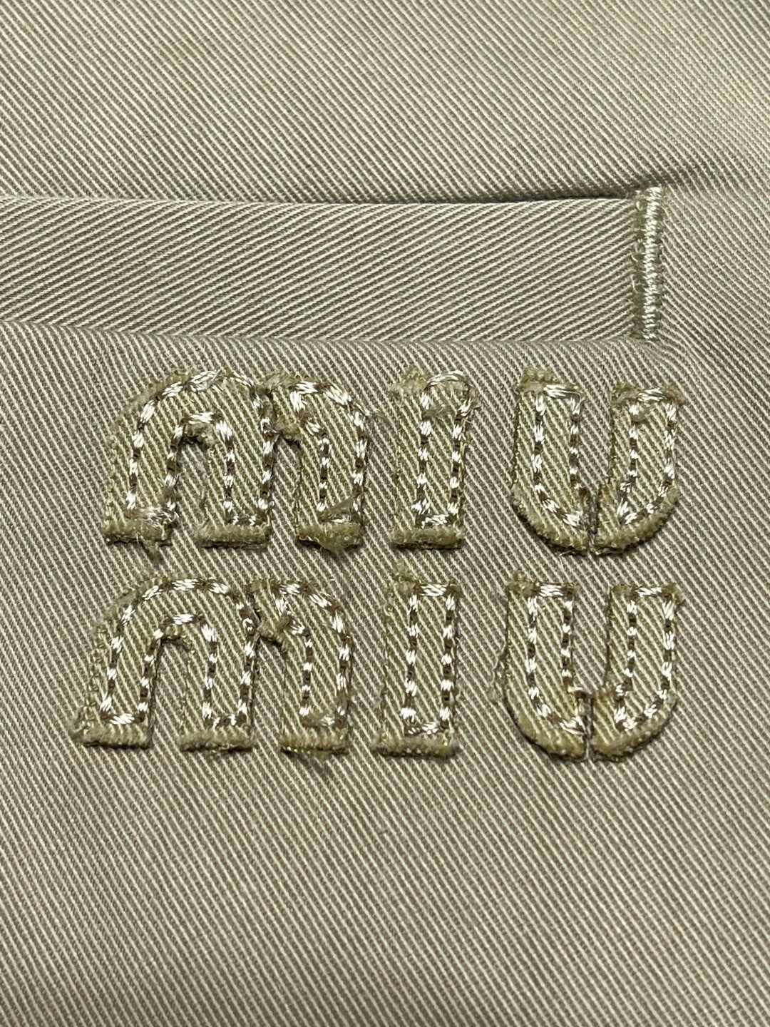 Dieser khakifarbene Minirock besticht durch sein verspieltes Lagendesign – der Saum ist mit blau kariertem Stoff besetzt, und die ausgefransten Kanten verleihen ihm einen coolen, kantigen Look. Er hat Gesäßtaschen und ein kleines gesticktes Logo auf einer Seite setzt ein dezentes Detail.