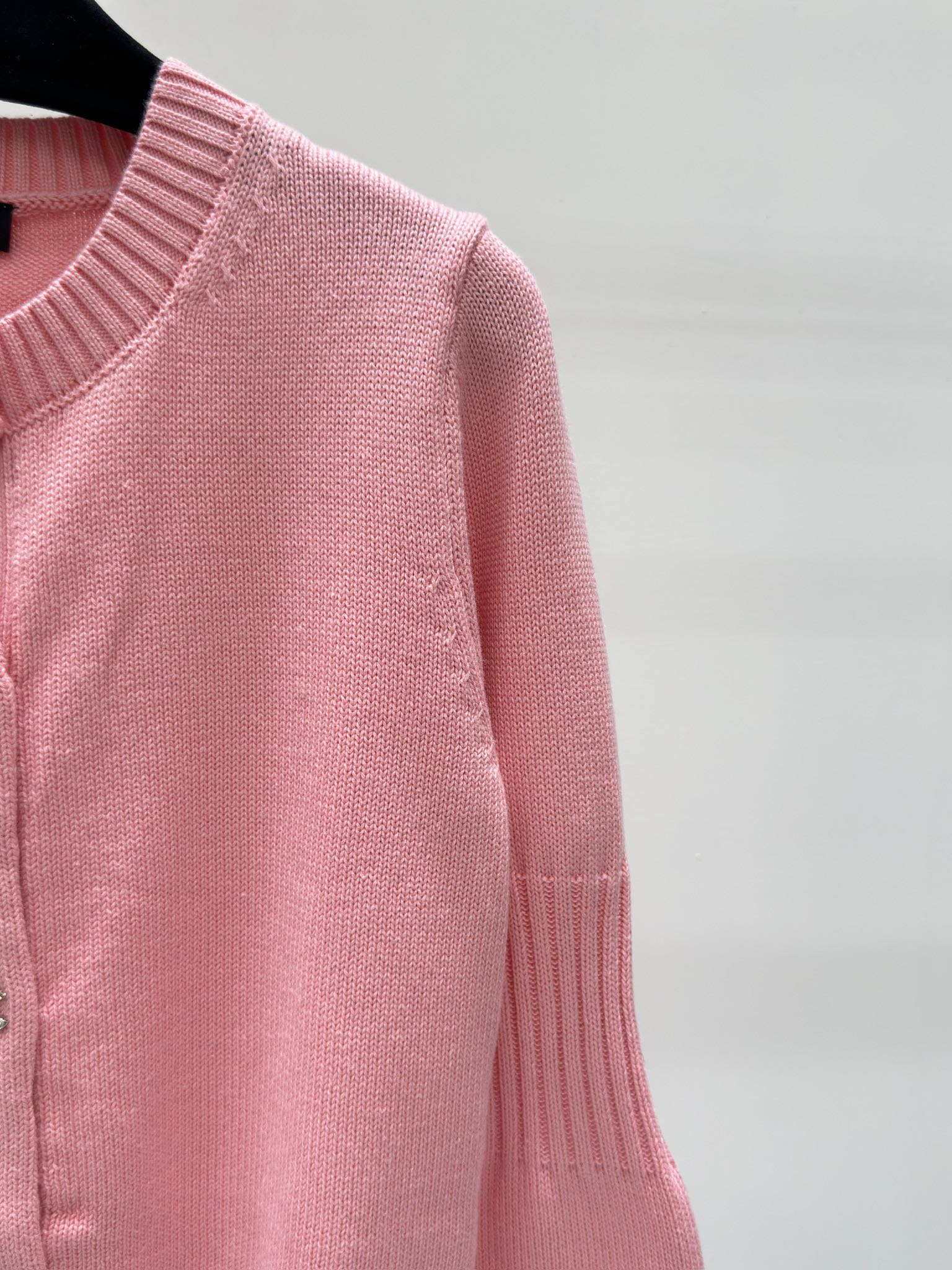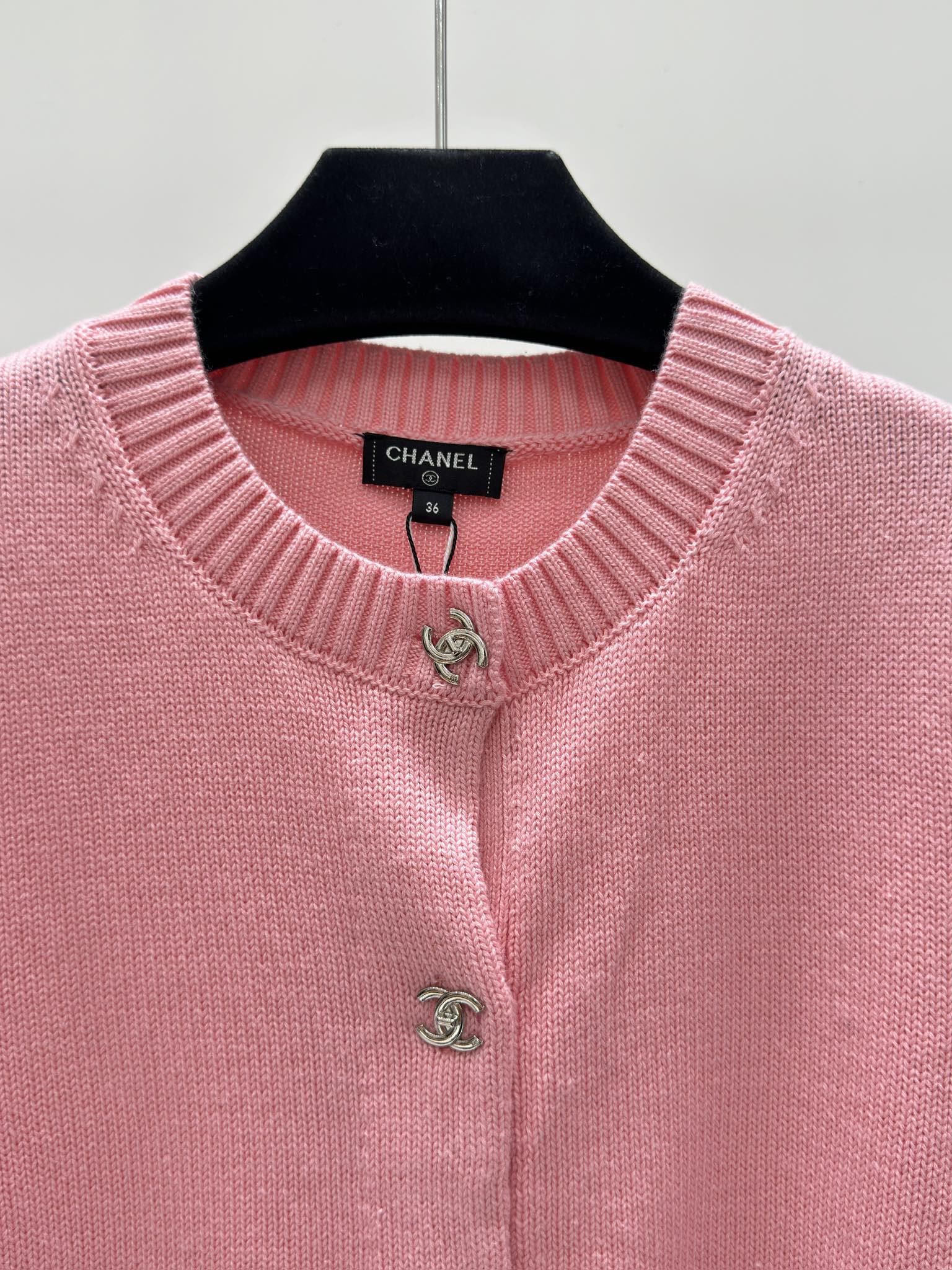 Rundhals-Strickjacke, neuer Stil im Frühherbst, einfarbige, einfache Strickjacke mit Doppel-C-Knopf