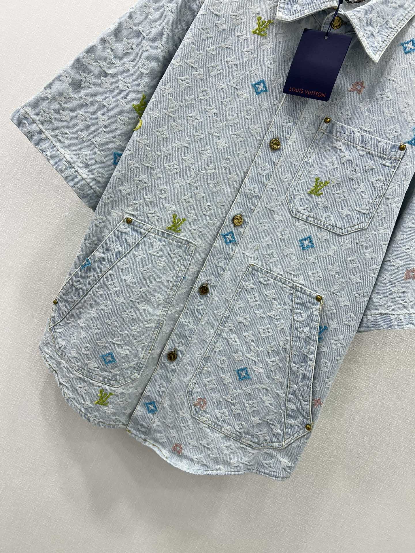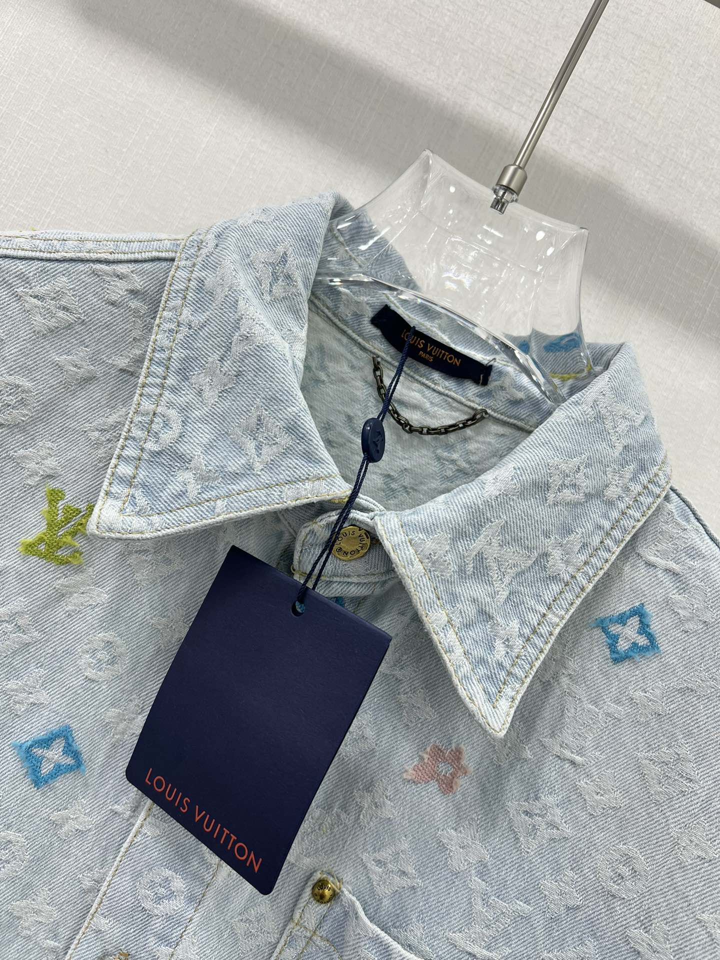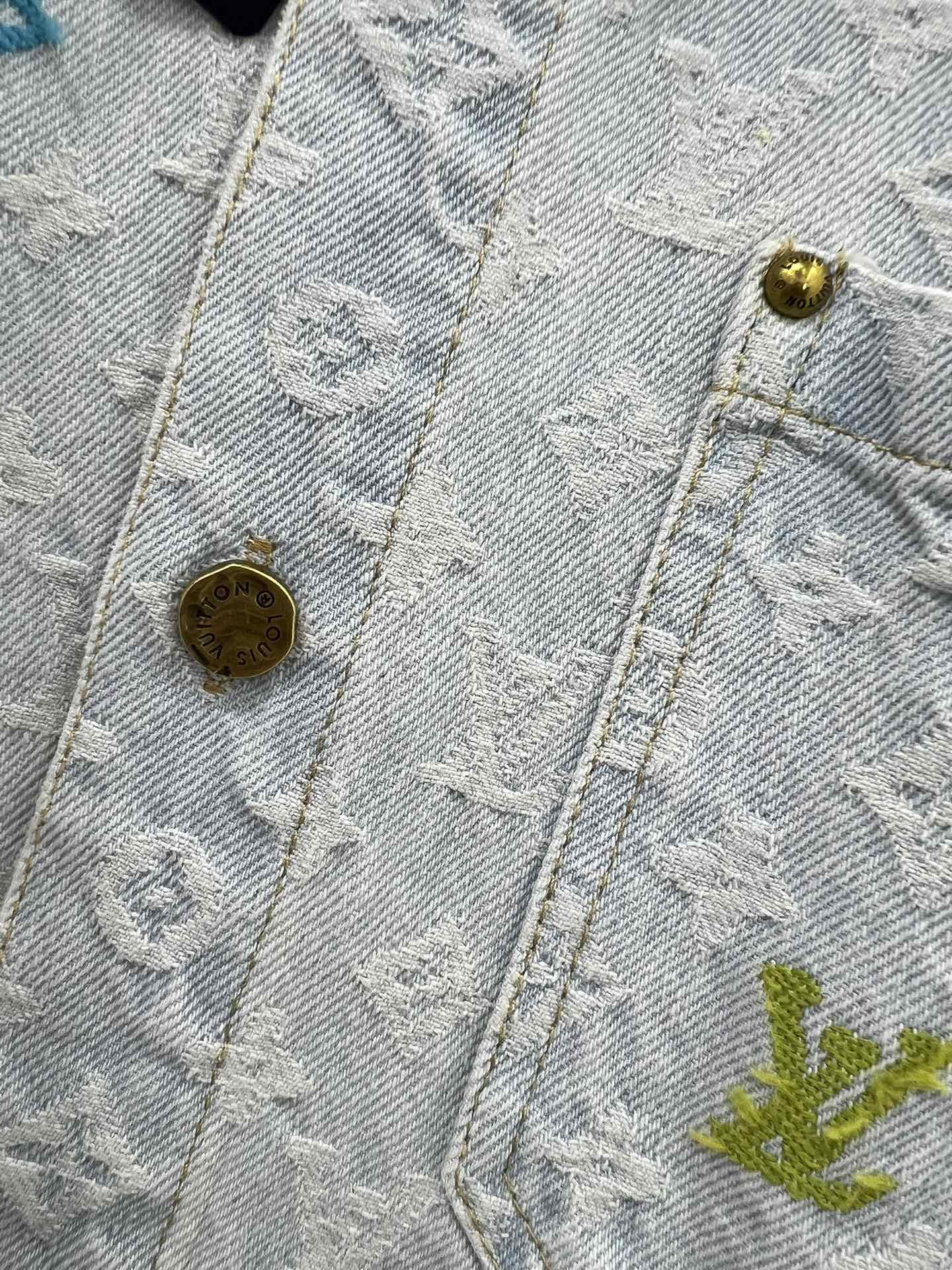 Die Jeansjacke integriert Taschen mit Monogrammprägung in eine lässige Workwear-Silhouette. Sie lässt sich mit der gleichen Arbeitshose kombinieren, um einen trendigen Look zu kreieren, oder mit anderen Kleidungsstücken kombinieren, um mehr modische Möglichkeiten zu entdecken.