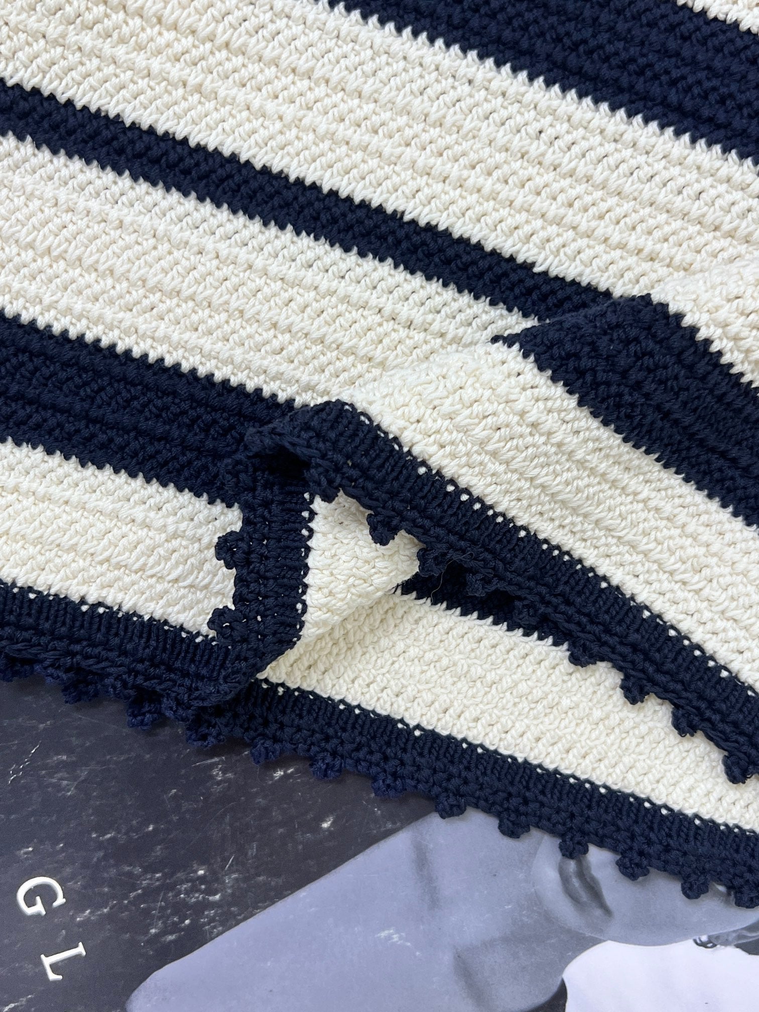 Beliebter klassischer gestreifter Kurzarm-Rockanzug mit V-Ausschnitt