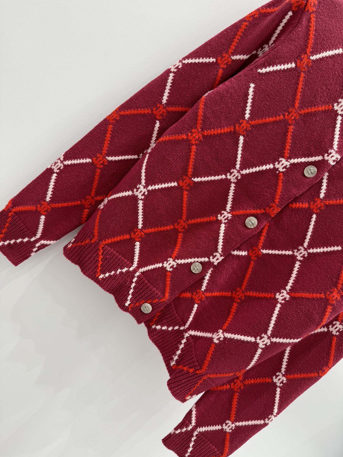 Neue gestrickte Strickjacke mit Rundhalsausschnitt für Frühling und Sommer 🆕 Jacquard-Handwerk mit Buchstabenlogo und Rautenmuster. Verzierung mit Knöpfen mit Buchstabenlogo und Rautenmuster. Modisch, exquisit und modern, passend für alle Größen SML