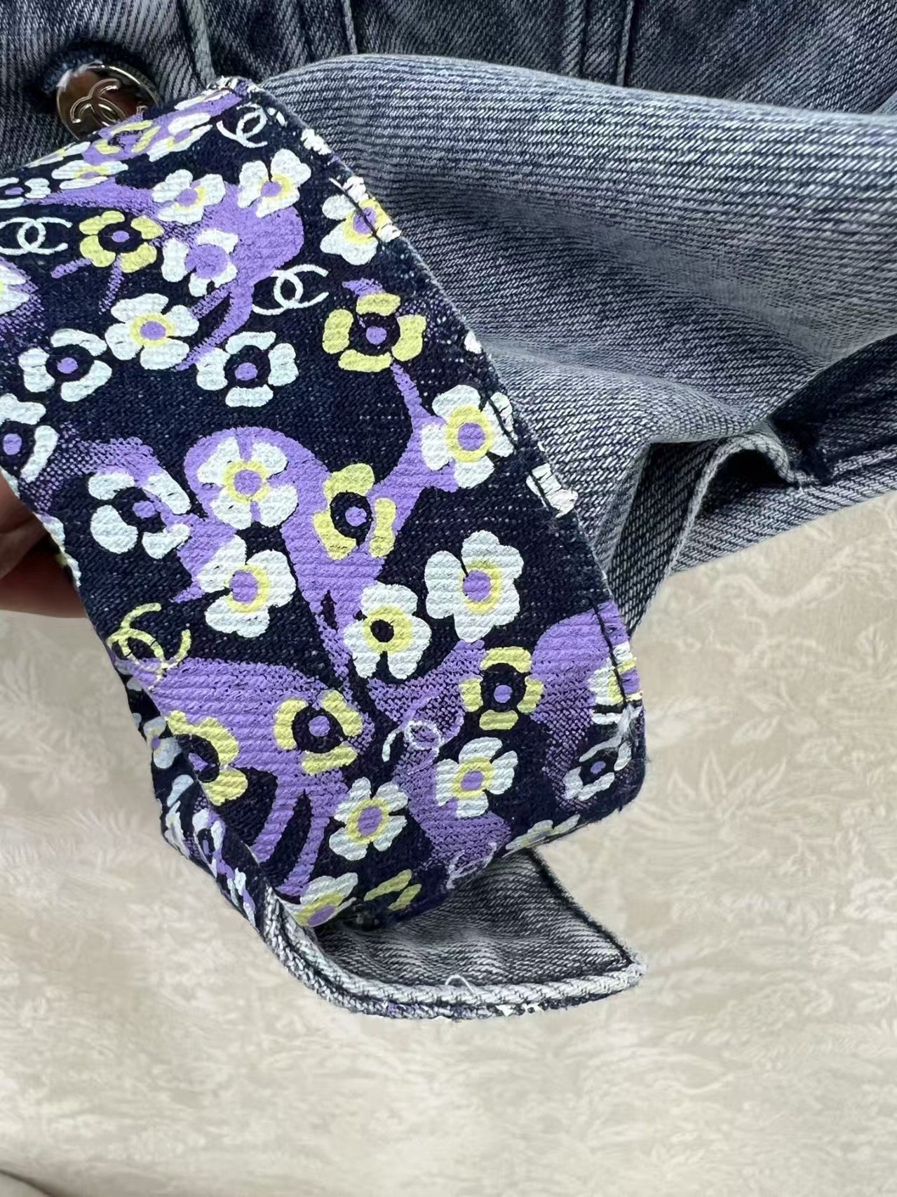 25 neue Retro-Jeansjacken mit Logodruck auf den Manschetten. Maßgeschneidertes YB-importiertes Twill-Baumwoll-Denim-Material. Bequem und stilvoll. Schnittführung und Details sorgen für mehr Raffinesse. Symmetrische Taschen und Saum mit leicht taillierter Schnittführung. Fügt der Form Schichten hinzu. Dezenter Luxus. Entwicklung von Oberfläche und Accessoires. Maßgeschneiderte Doppel-C-Hardware. Kann mit verschiedenen Artikeln der gleichen Serie kombiniert werden. Komplettes Outfit mit sanftem Hauch, um den Charme zu verstärken. Einfacher und fortschrittlicher Oberkörper