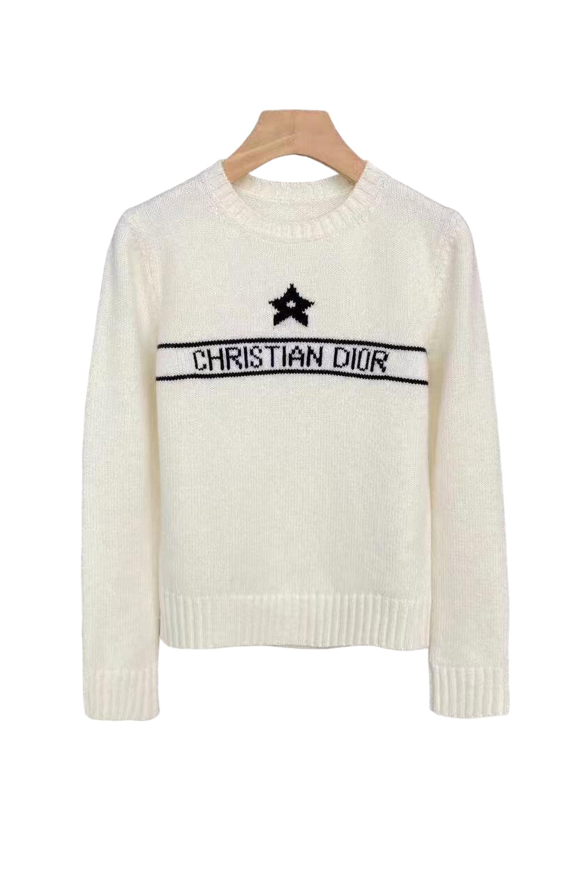 Neuer Strickpullover mit Buchstaben und langen Ärmeln
