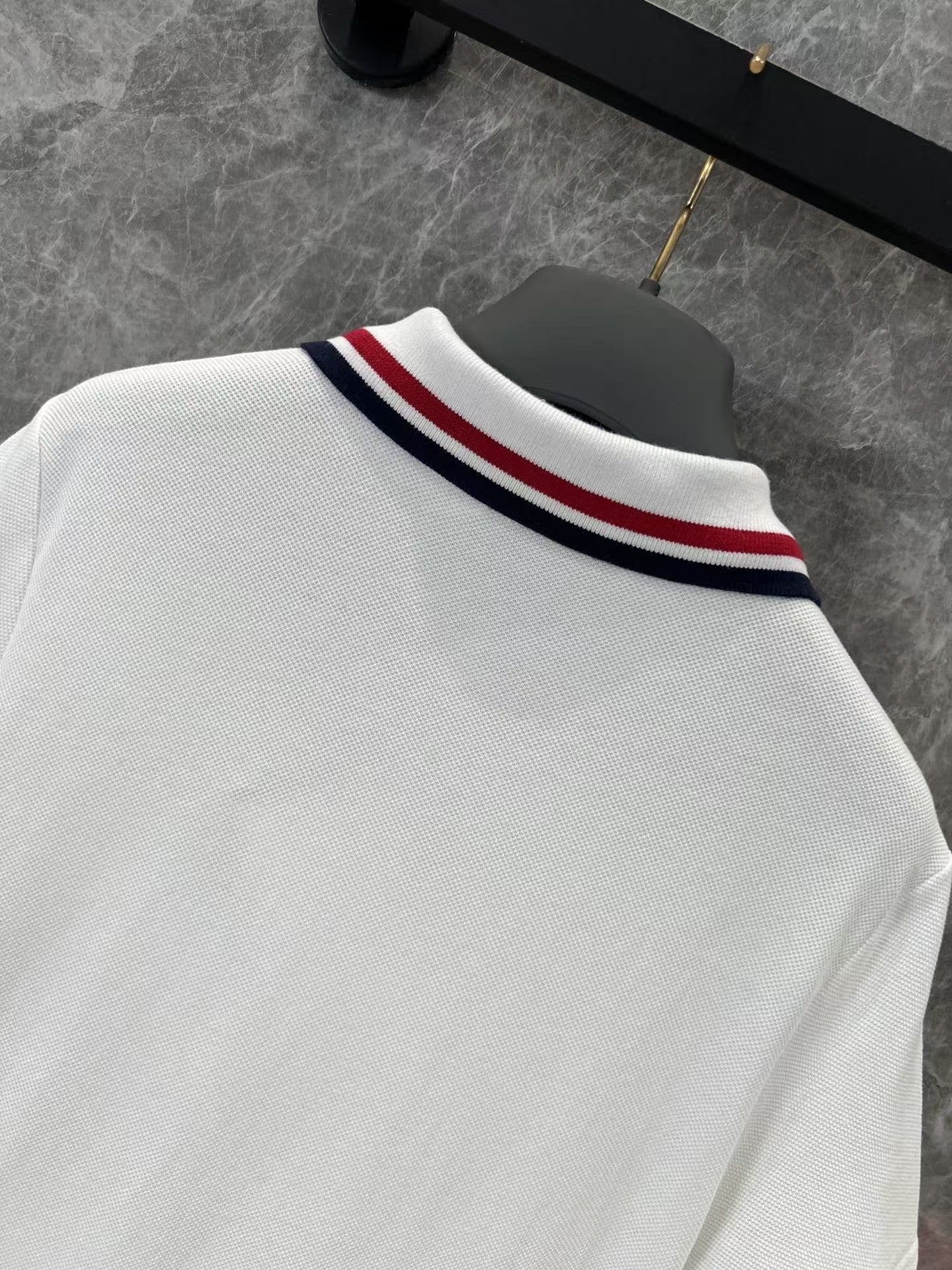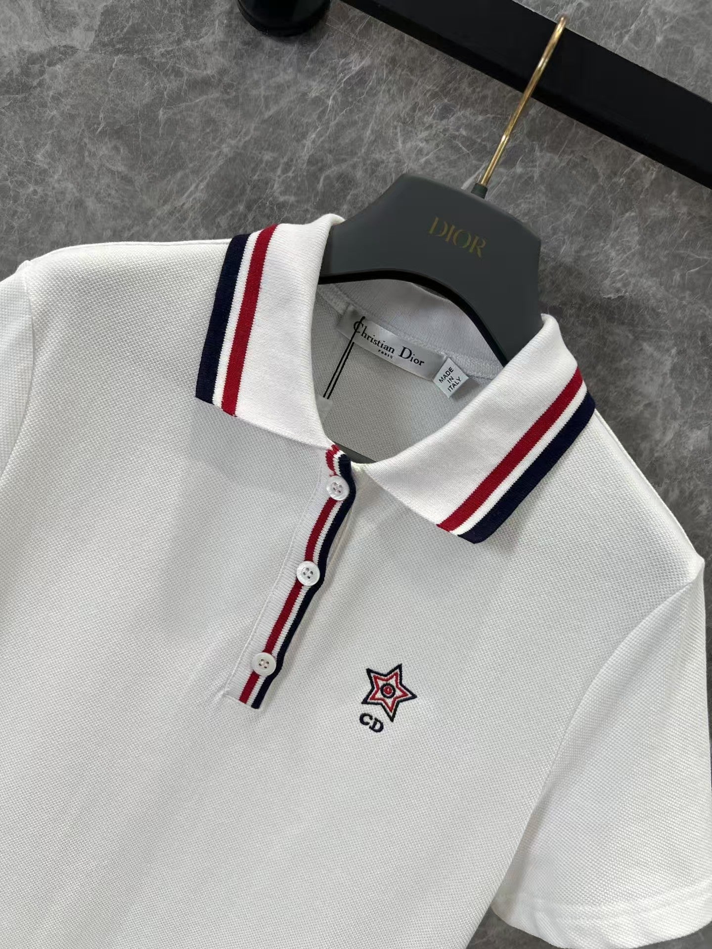 25Ss Frühling und Sommer neuer Stil College-Stil klassisches Revers-Plissee-Kleid! Aus reiner Baumwolle mit Löchern, atmungsaktiv und bequem. Revers-Plissee-Kleid-Stil. Halboffener Kragen mit Knöpfen, beliebig verstellbar. Die kontrastierenden Farben des Fadens sind als Highlight auf der Vorderseite des Kragens verteilt, was das fünfzackige Sternlogo auf der Brust widerspiegelt. Der zurückhaltende Stil unterstreicht den persönlichen Charme der Marke und bereichert das Design. Der Unterkörper ist mit Streifen als Trennlinie in Proportionen unterteilt.