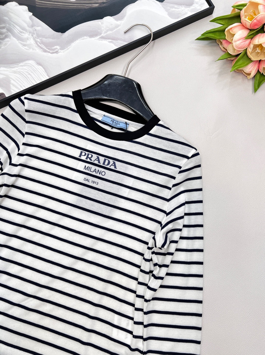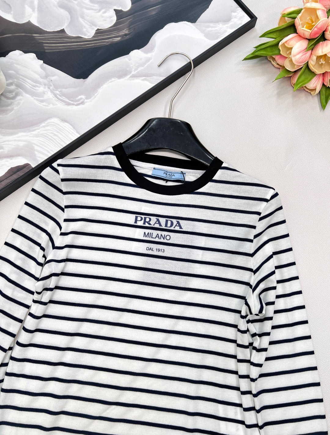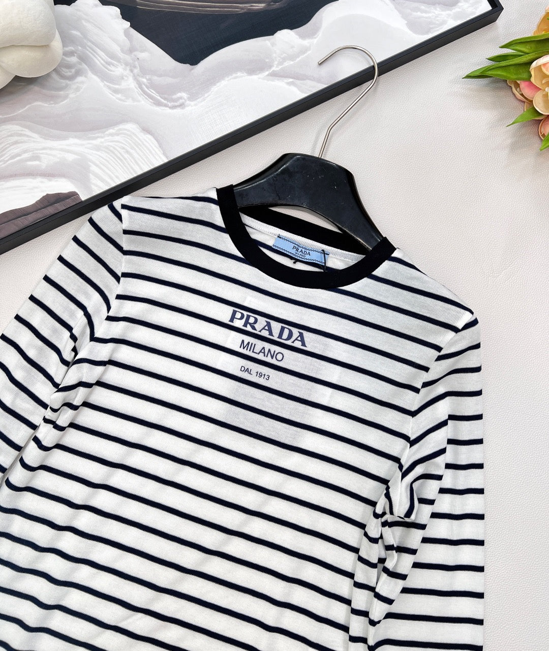 25SS neues Stretch-Hemd mit schmalem Streifenmuster und Buchstabenmuster, maßgeschneidertes YB Tencel-Wollmaterial, strukturiert und glänzend, sehr dehnbar, Rundhalsausschnitt mit langen Ärmeln, Halsausschnitt und Bündchen mit Fadenverzierung verziert, durchgehend abwechselnd schwarze und weiße Streifen, vielseitig und langlebig, kultige Buchstabenlogo-Verzierung auf der Brust vertreibt langweilige Monotonie, schmaler Schnitt, passt sich der Körperform an, trägt sich schmal und modern, passt perfekt zu Herbst und Winter, zum täglichen Pendeln, für Verabredungen und in der Freizeit 👌