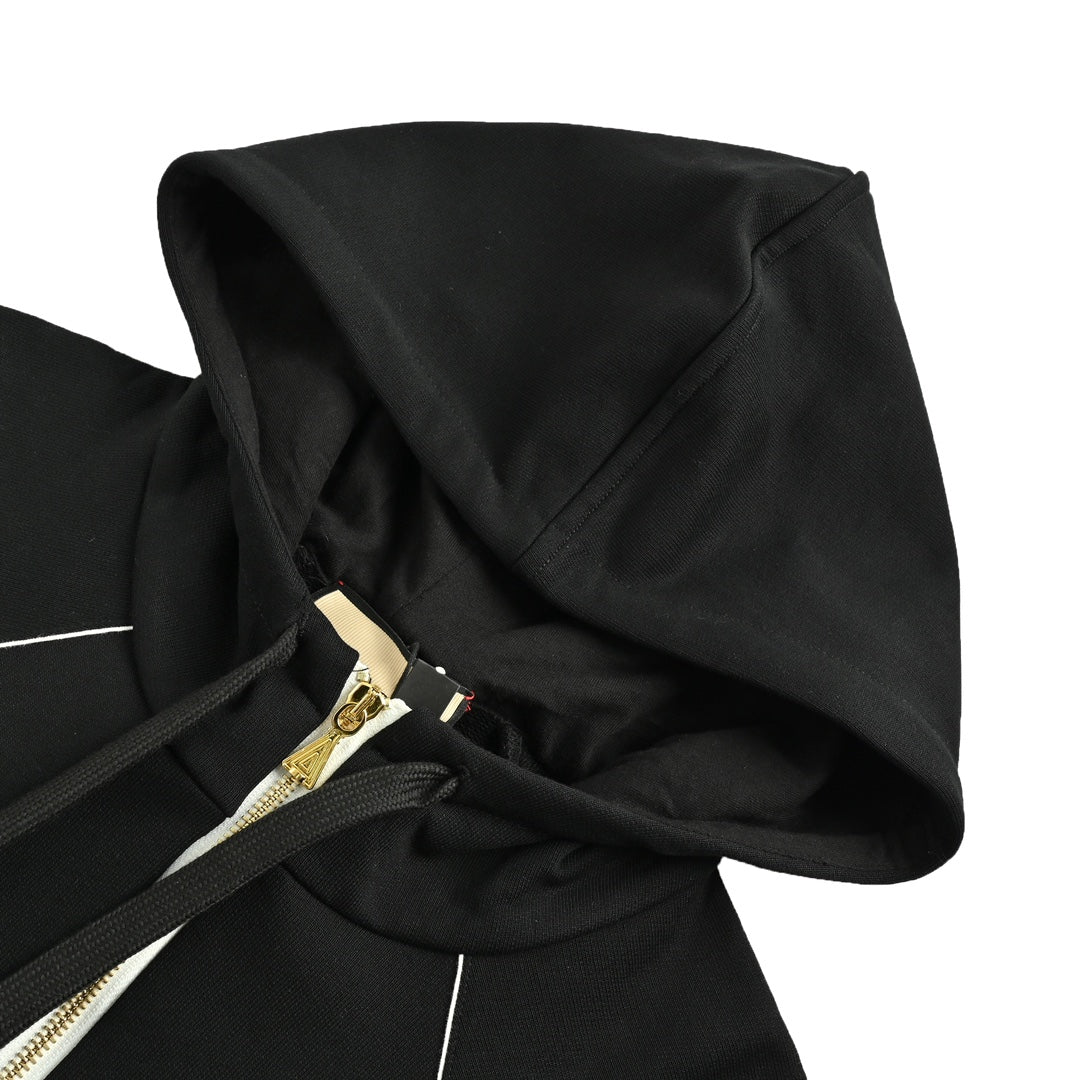 - Hergestellt aus 21 doppellagigem, verflochtenem 32-fädigem Doppelgarn, großem Frottee-Unterteil aus gekämmter Baumwolle, das dasselbe Gewicht von 400 g wie das Originalgewebe hat. Das graue Originalgewebe wird vor dem Weben und Färben zerlegt und gewogen. Die Mindestbestellmenge allein beträgt 50 Stück, geripptes 21-fädiges 1*1-Doppelgarn, maßgeschneidertes rot-grünes kontrastierendes Baumwollgewebe um die Taille, hochdichte Stickerei der Haupttaillenmarkierung, mit einem 35,5 cm langen, dreieckigen, matt galvanisierten, gravierten Schieber und einem goldenen 5#-Reißverschluss mit eingravierten Buchstaben an der Unterseite. Es wird mit einem brandneuen grünen Etikett und einer Waschmarke geliefert. Beim Einsetzen des Reißverschlusses braucht es einen erfahrenen Handwerker, um ihn glatt und schön zu machen. Übung macht den Meister. Die Innenseite ist vollständig mit Futter vernäht. Es ist eine Originalversion und der Oberkörper sieht erstaunlich gut aus.