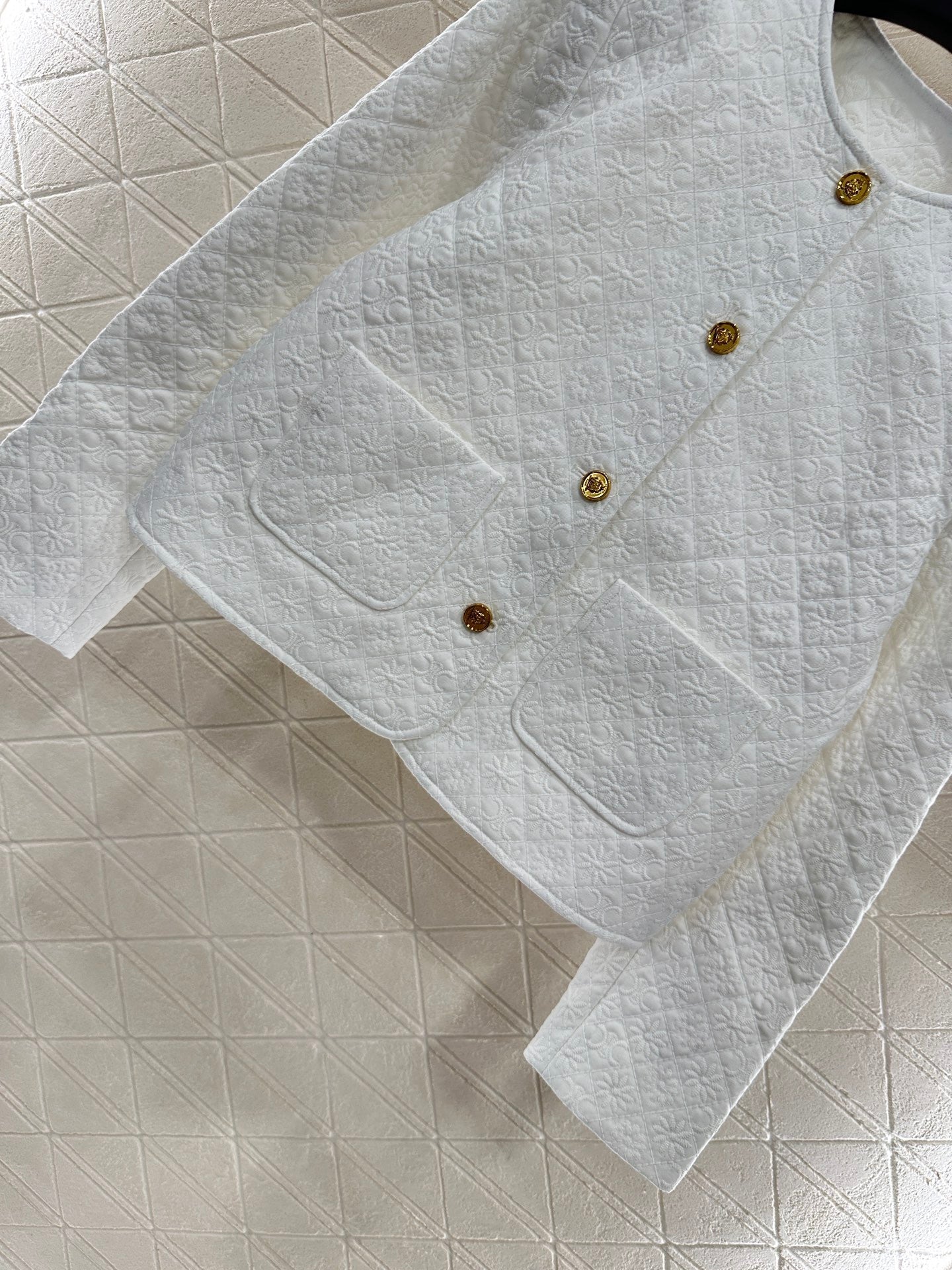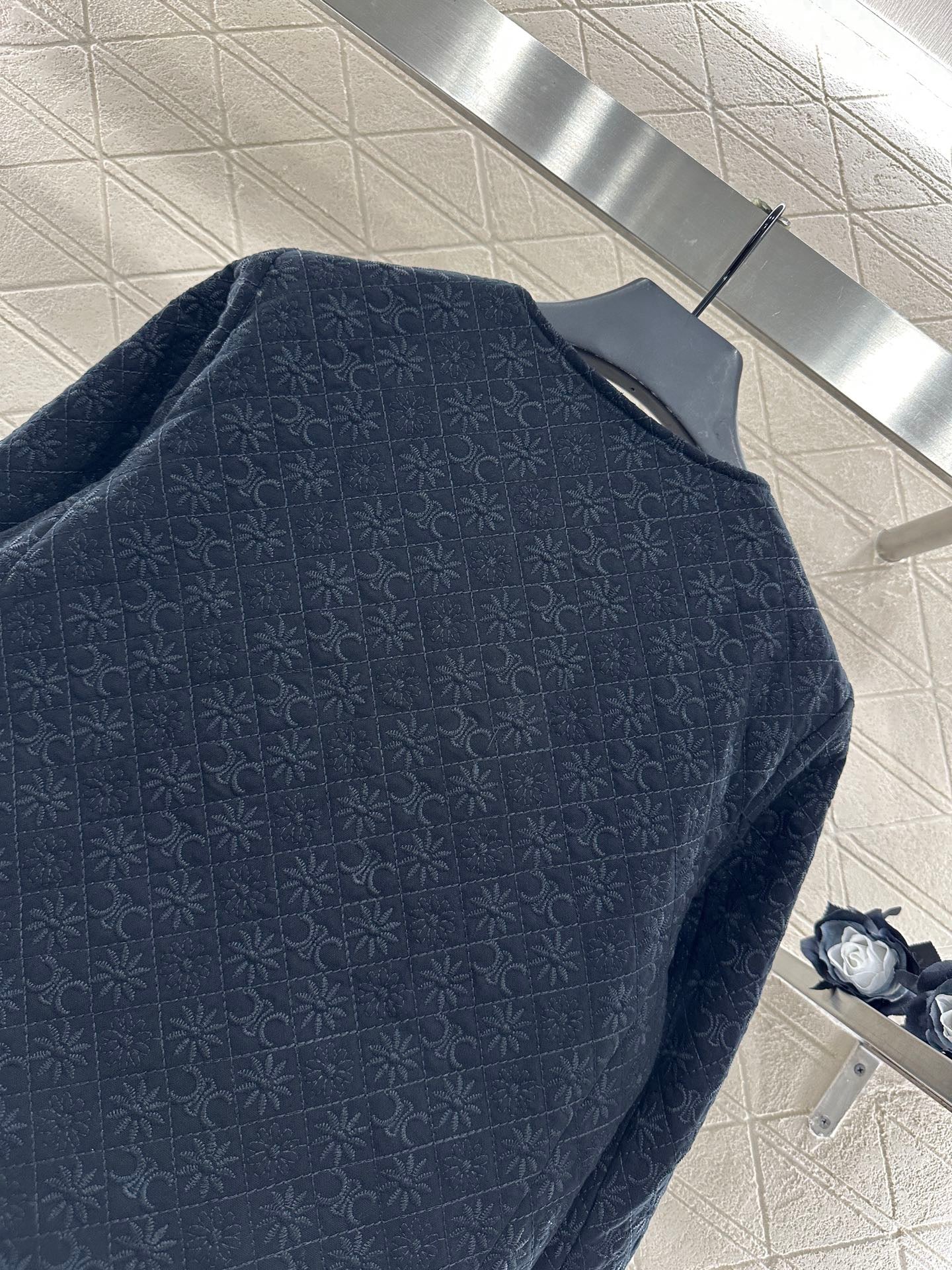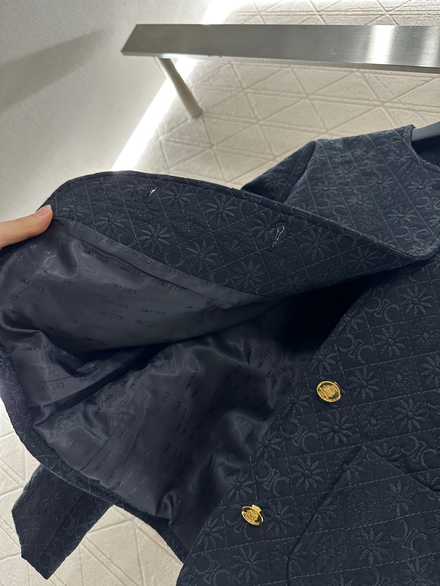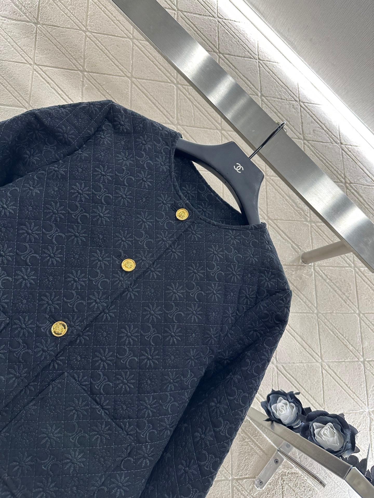 Maßgeschneiderter YB-Baumwoll-Twill-Jacquardstoff. Leicht und warm. Rundhalsausschnitt, Wildlederdesign mit geraden Schultern. Verstellbare Knopfleiste. Gestepptes Futter für maximale Wärme und Funktionalität. Durchgehende Jacquard-Prägung mit Rautenmuster. Durchgewebt mit dem ikonischen Arc de Triomphe-Logo, das die Identität und den Stil der Marke hervorhebt. Symmetrische Taschen für zusätzliche Details. Leicht und stilvoll, perfekt für jedes Outfit. 👌 Vereint Wärme und Stil. Dünne Daunenfüllung für eine dreidimensionalere Silhouette. Replika der maßgefertigten YB-Stoffe.