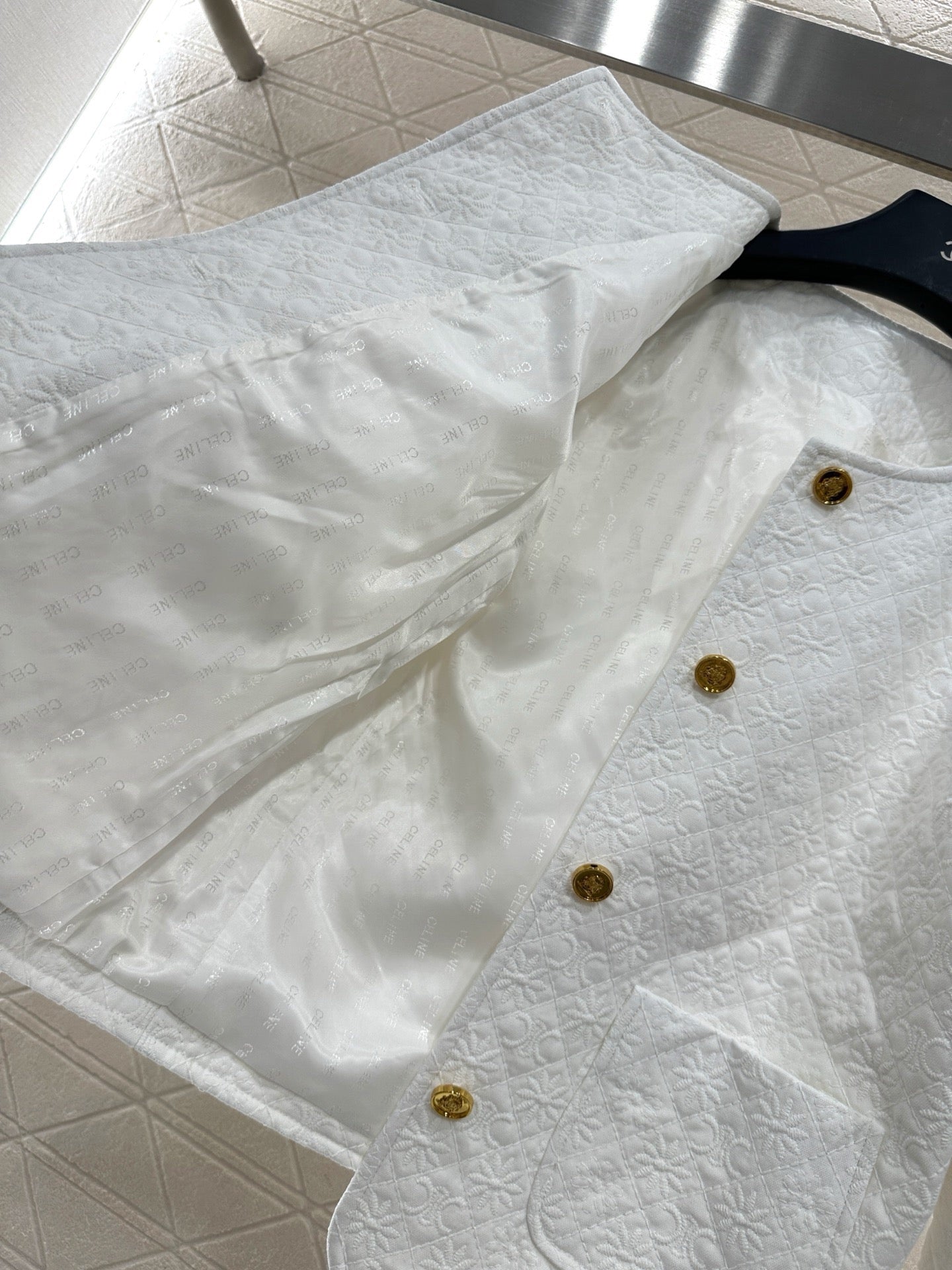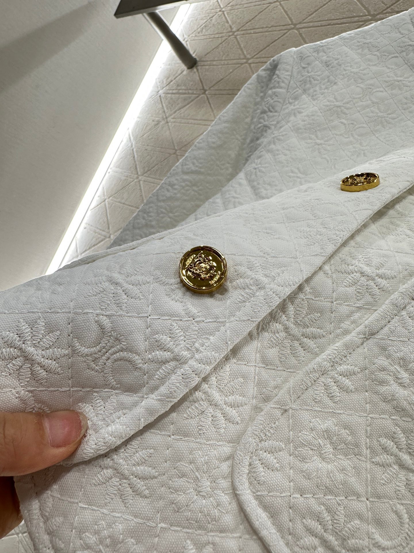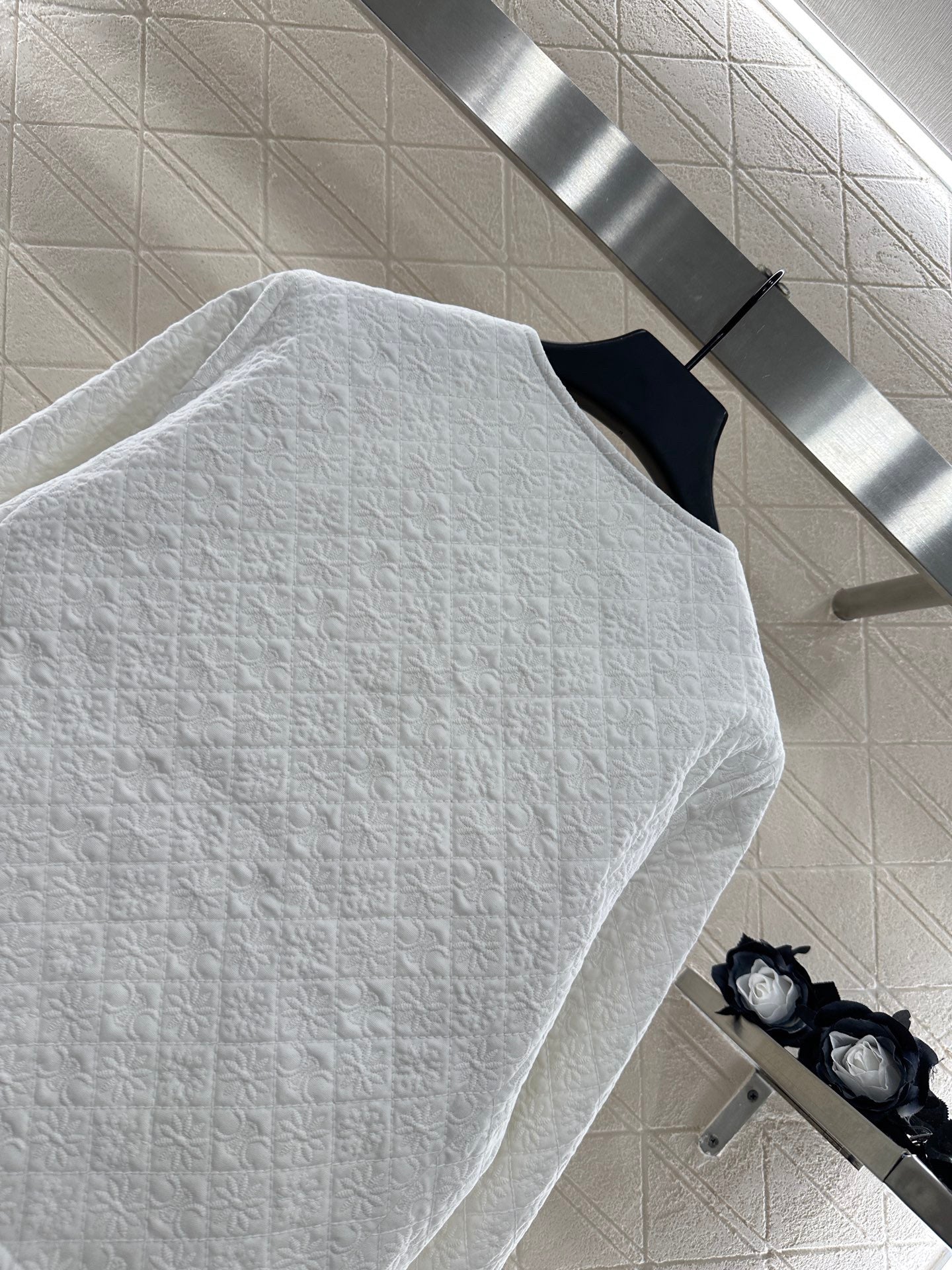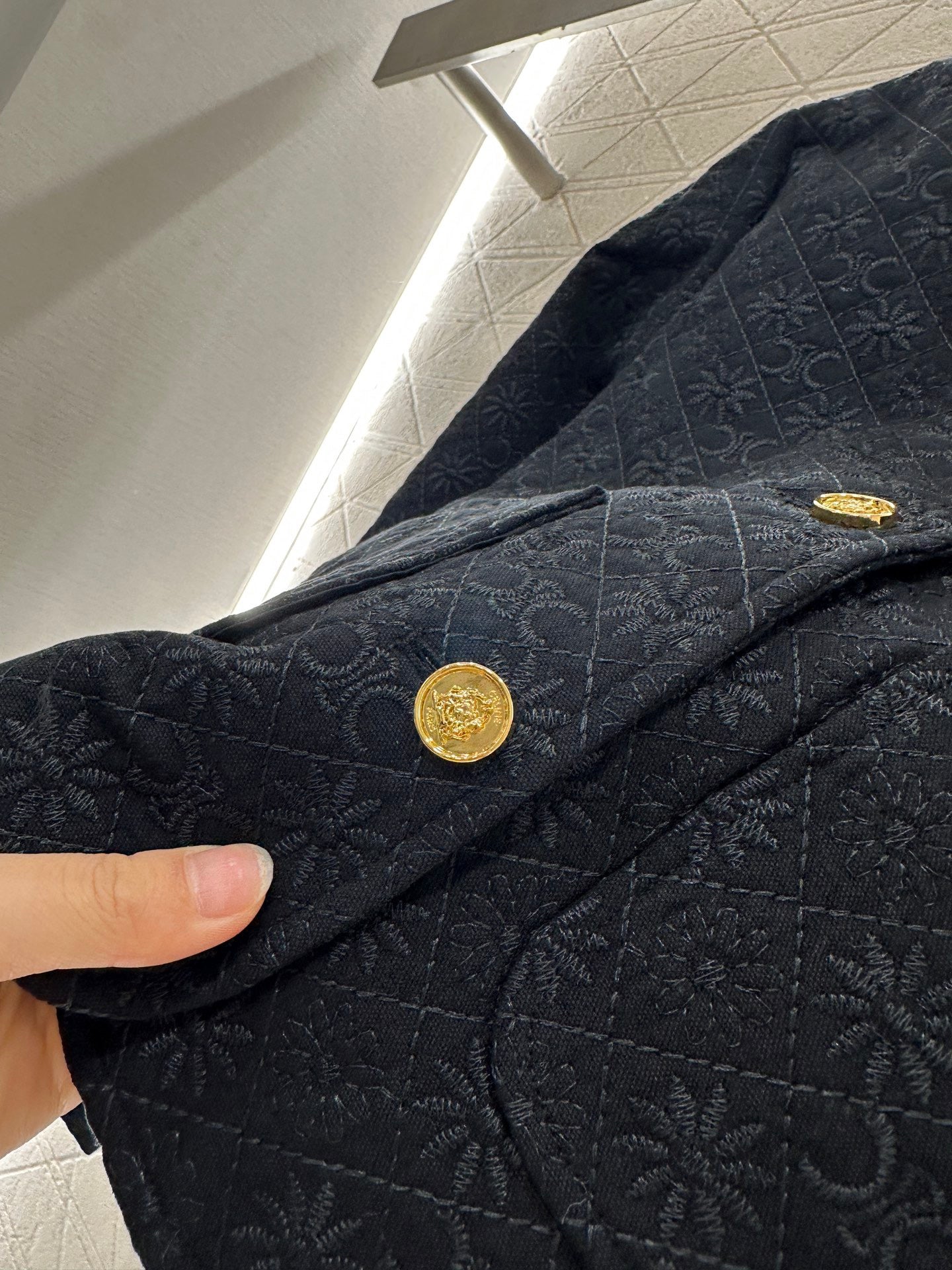 Maßgeschneiderter YB-Baumwoll-Twill-Jacquardstoff. Leicht und warm. Rundhalsausschnitt, Wildlederdesign mit geraden Schultern. Verstellbare Knopfleiste. Gestepptes Futter für maximale Wärme und Funktionalität. Durchgehende Jacquard-Prägung mit Rautenmuster. Durchgewebt mit dem ikonischen Arc de Triomphe-Logo, das die Identität und den Stil der Marke hervorhebt. Symmetrische Taschen für zusätzliche Details. Leicht und stilvoll, perfekt für jedes Outfit. 👌 Vereint Wärme und Stil. Dünne Daunenfüllung für eine dreidimensionalere Silhouette. Replika der maßgefertigten YB-Stoffe.