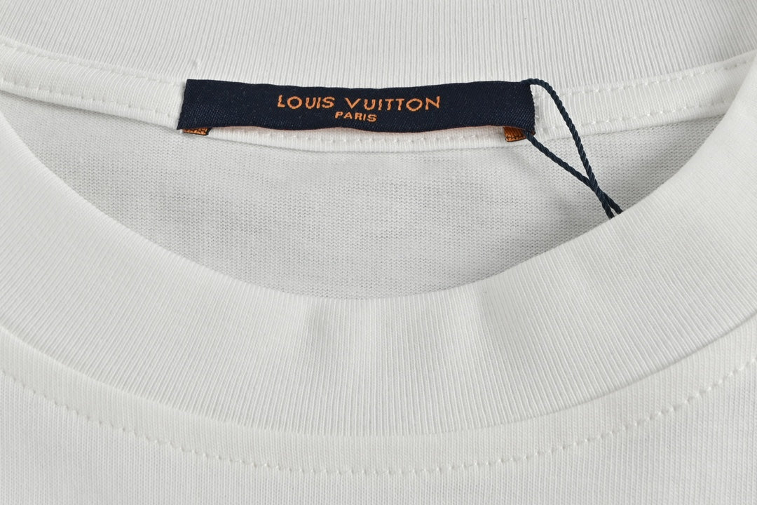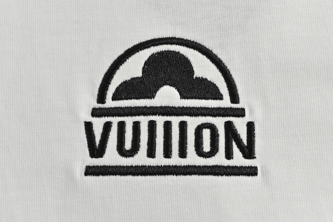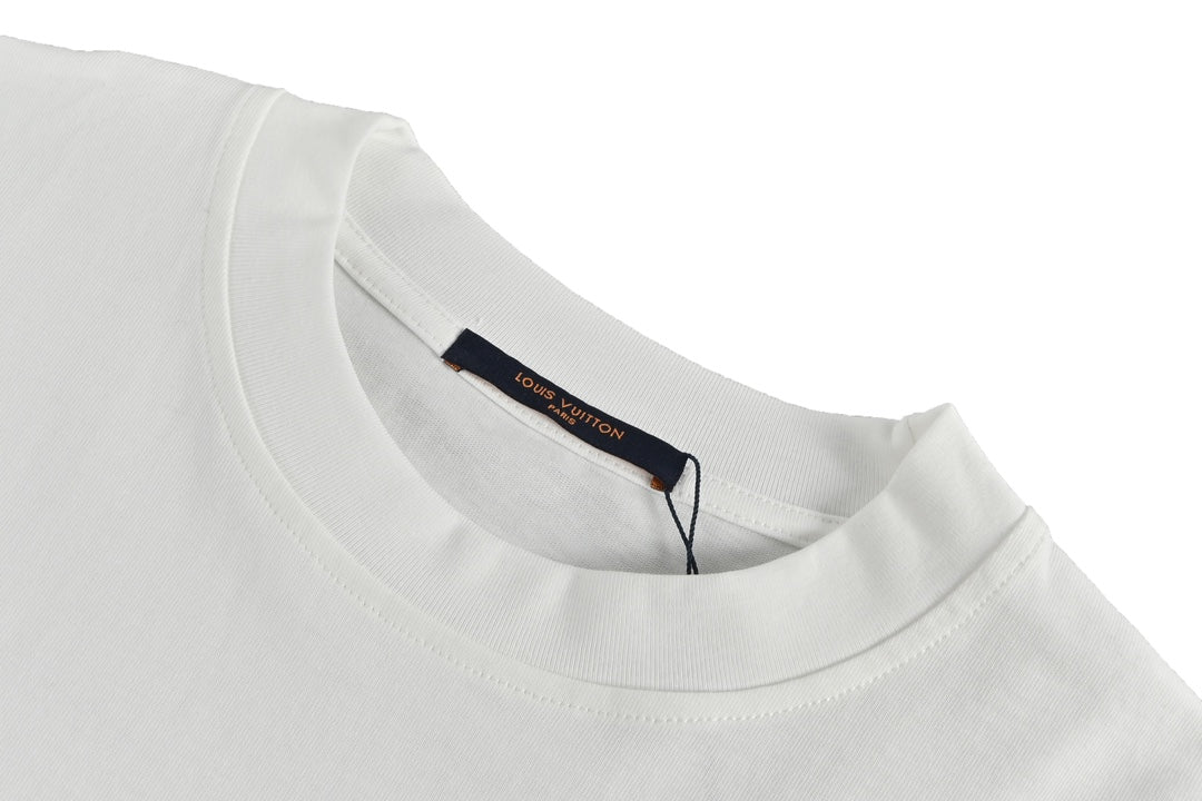 Kurze Ärmel mit kleiner Blumenstickerei und Schreibschrift auf der Rückseite