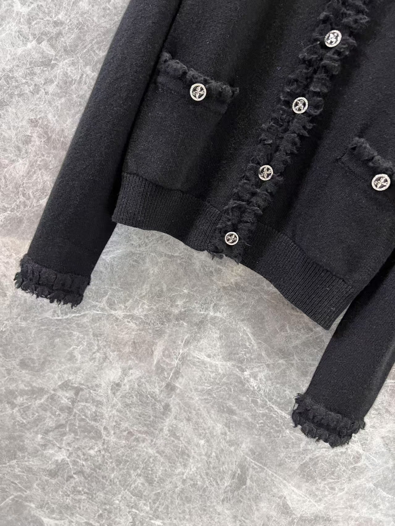 25s Frühjahr neue einreihige Spitzenstrickjacke Rundhals-Strickjacke Schneiderei Dichtes Texturmuster am ganzen Körper + Kragenmanschetten und Saum mit Spitzenumrandung Das klassische schwarz-weiße Farbschema mit einem Hauch von Reichtum macht den Stil edler Die runde Knopfdekoration mit Doppel-C-Fliegenfisch unterstreicht die Markenpersönlichkeit Betont das hochwertige Tragegefühl Elastizität macht es exquisiter Das Tragen lässt Sie schlanker aussehen und zeigt einen entspannten Ton Leichter Luxus und modisches Temperament Kann allein oder in Schichten getragen werden
