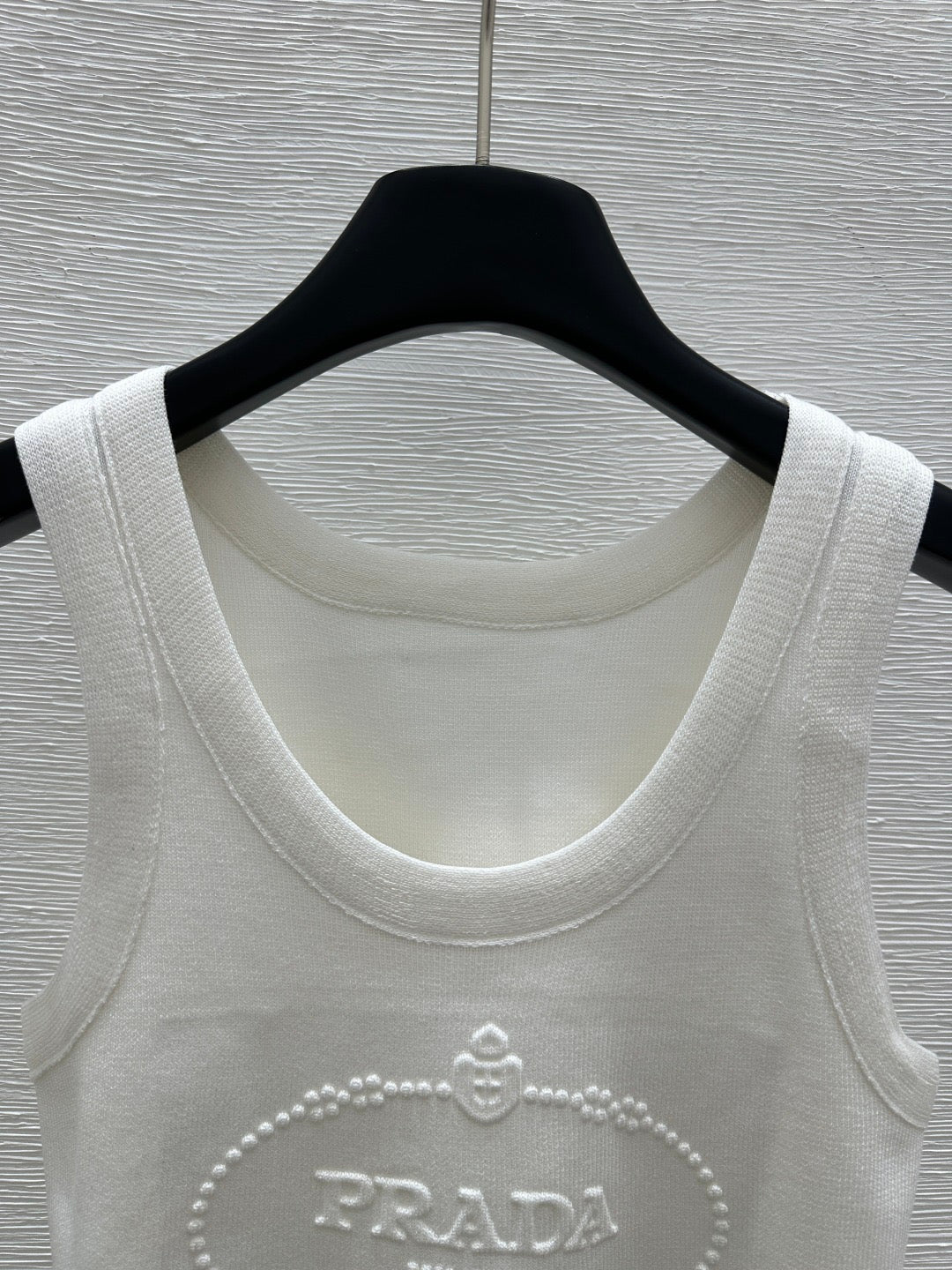 Neu für den frühen Frühling: Einfarbige Strickweste mit Rundhalsausschnitt und geprägtem Schriftzug.