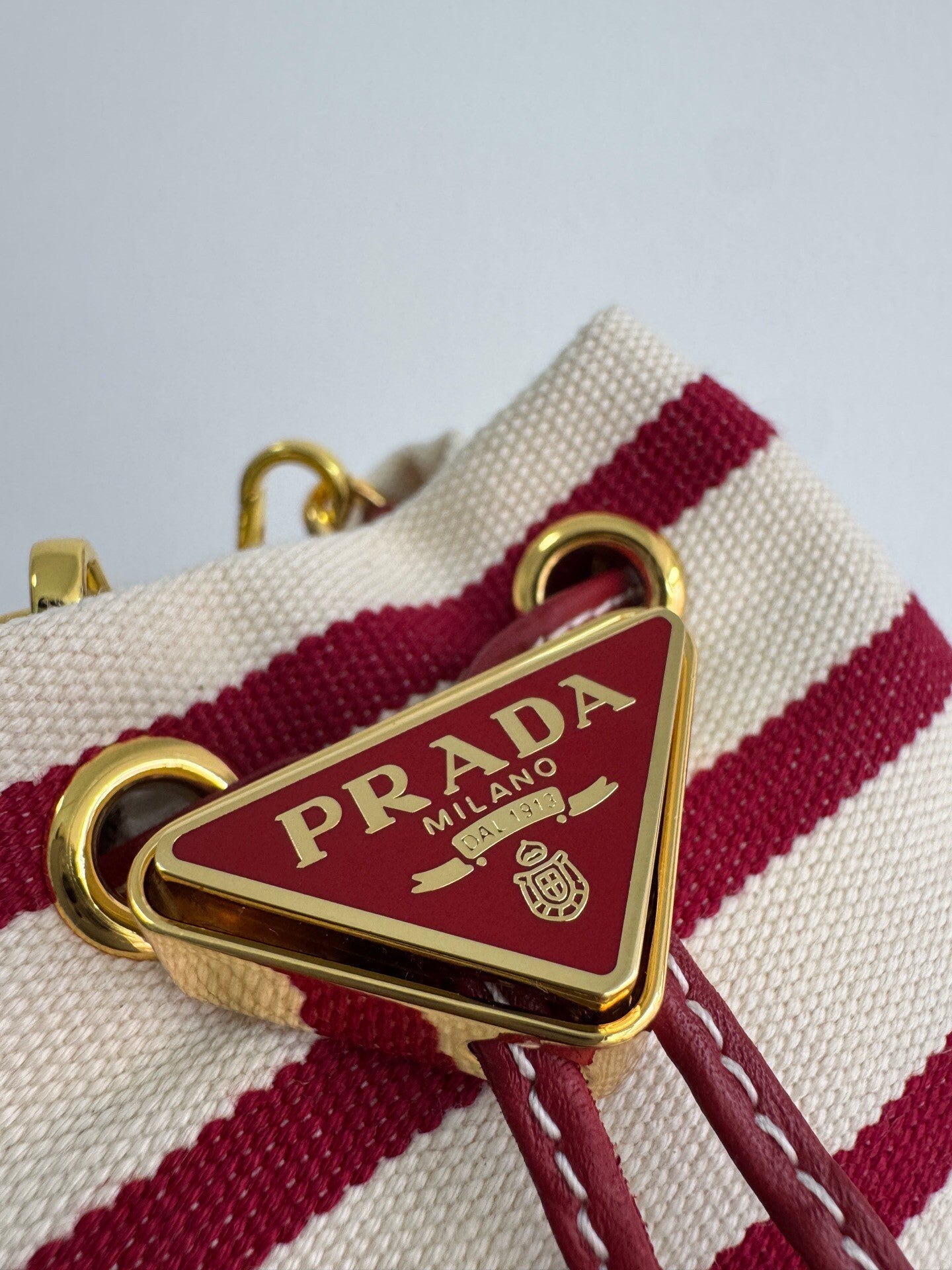 Diese Mini-Bucket-Bag ist nicht nur ein Accessoire – sie ist eine Stimmungsmache. Retro-Streifen, luxuriöse Golddetails und überraschende Funktionalität machen jeden Ausflug zu einem stilvollen Abenteuer. Denn toller Stil sollte nicht bedeuten, dass Funktionalität (oder Spaß) auf der Strecke bleiben.