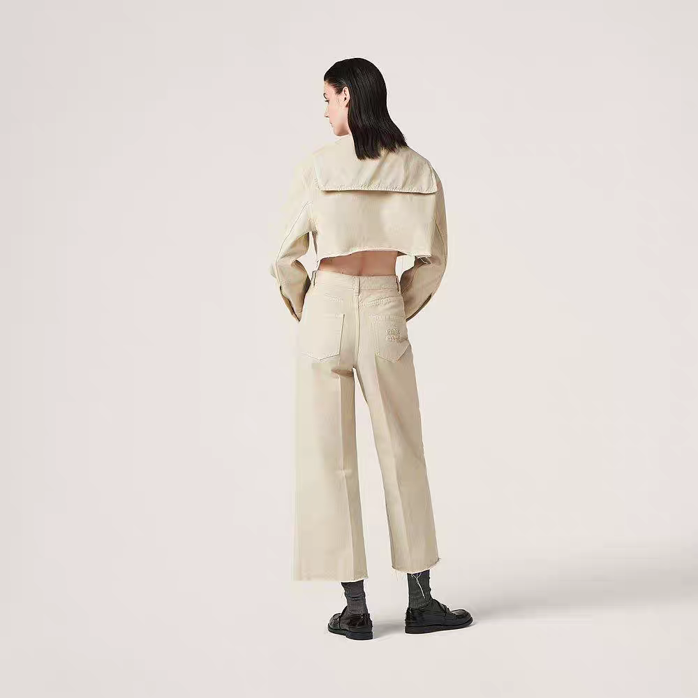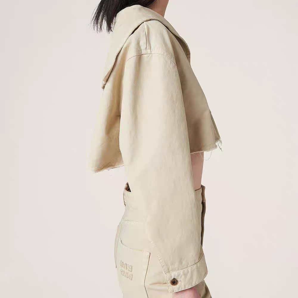 Neue Jeansjacke mit kurzem, marineblauem Kragen
