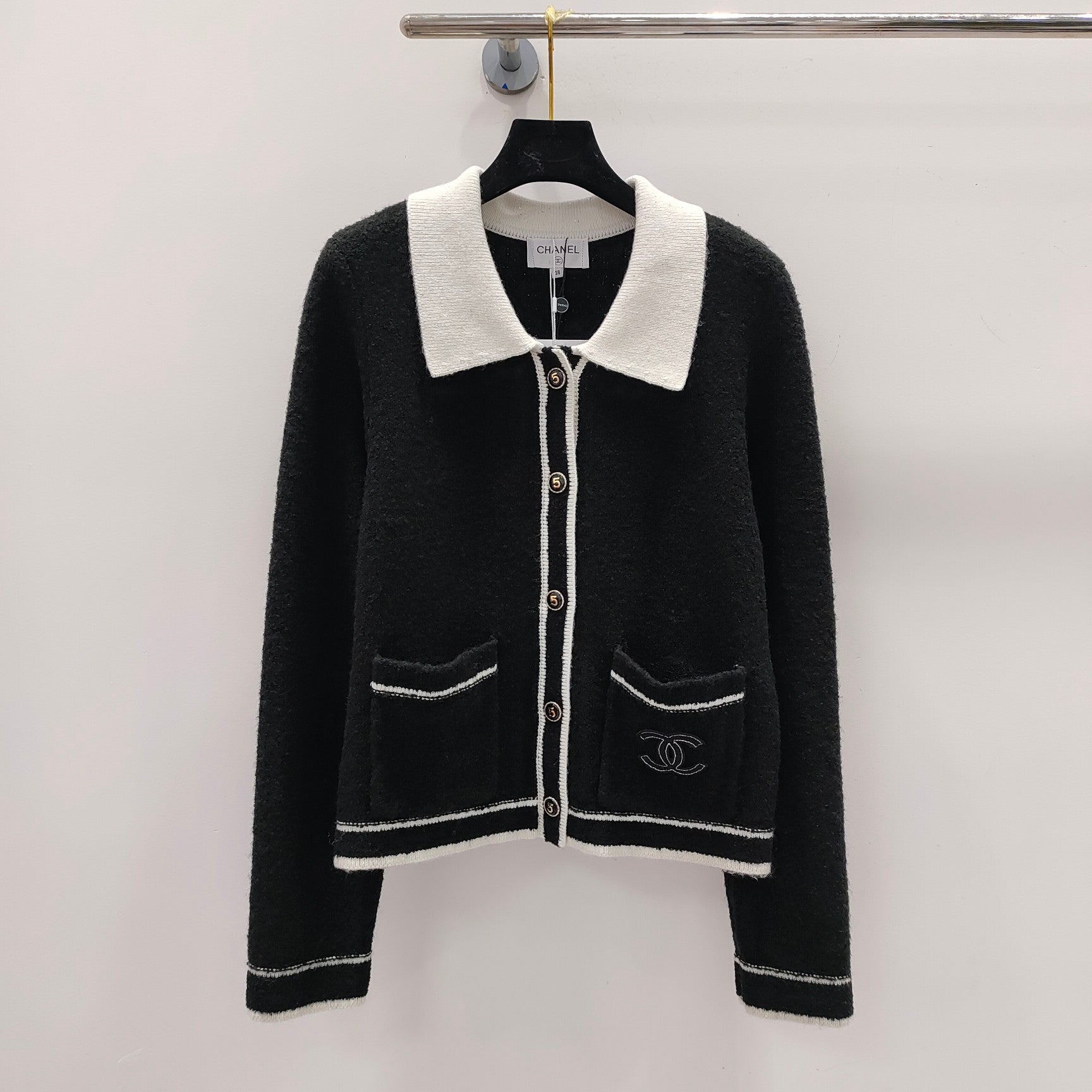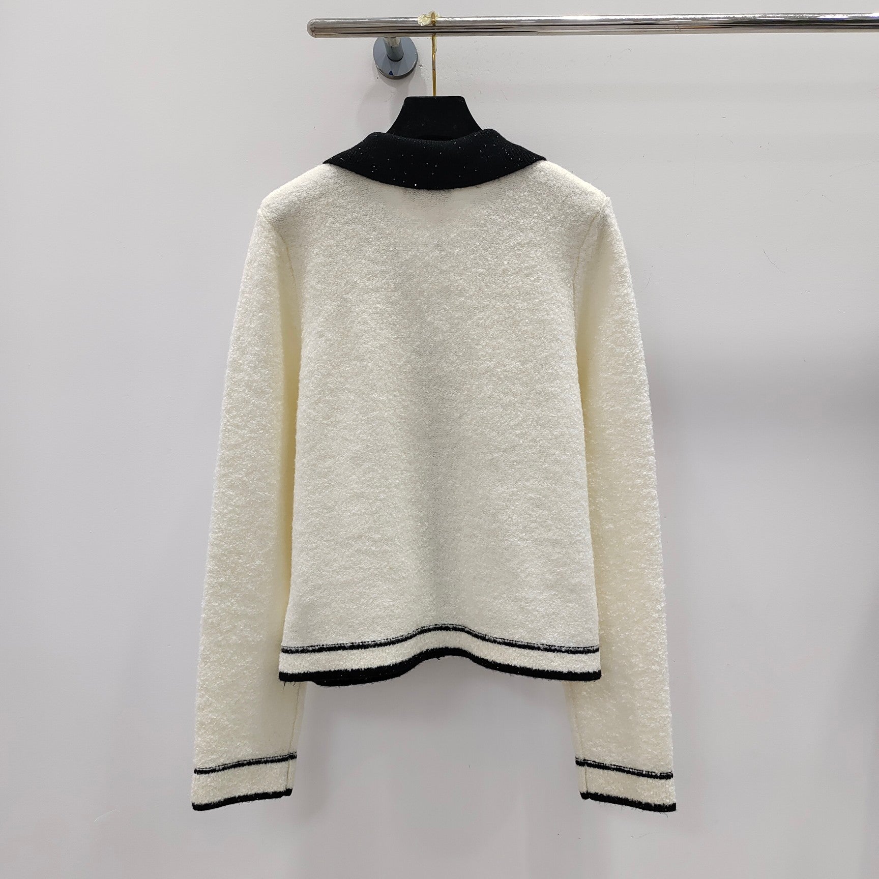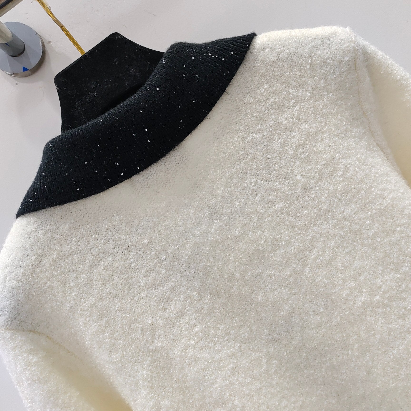 exquisites Temperament, Hemdkragen mit Paillettengarn + dickes, warmes, flauschiges Schlingengarn. 5-stellige Goldknöpfe, altersreduzierendes und modisches Outfit
