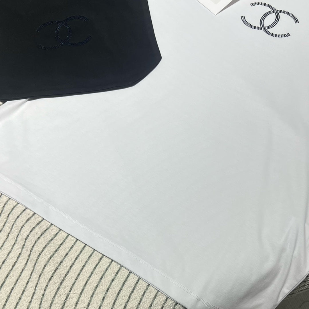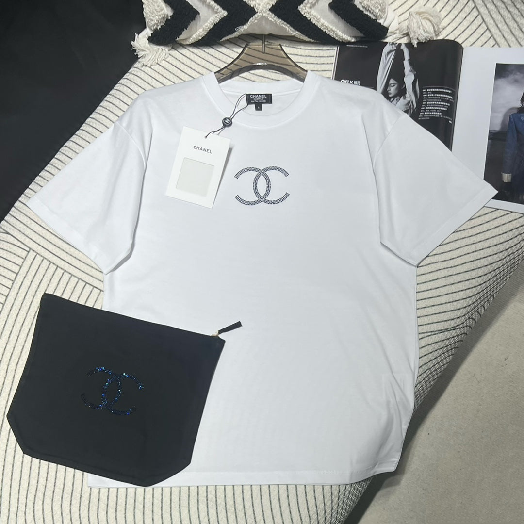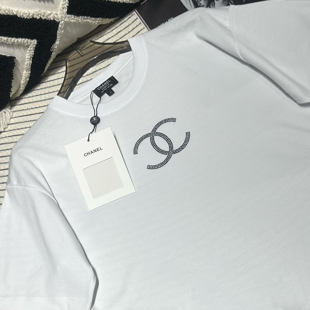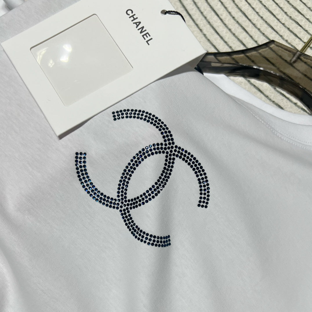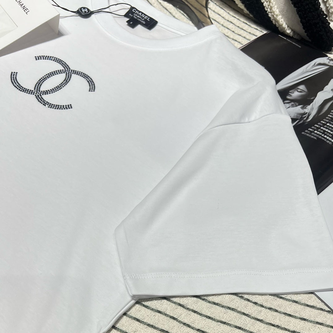 Die Kurzarmserie im Resort-Stil ist mit viel Handwerkskunst gefertigt. Es handelt sich um ein sehr stylisches Kurzarmshirt aus maßgeschneidertem Baumwollstoff. Es ist bequem und atmungsaktiv. Es hat doppelte C Swarovski-Diamanten auf der Brust, was modisch und auffällig ist. Dieser Stil hat nicht zu viele Designs und kann lässig mit Röcken und Röcken kombiniert werden. Jeans sind so hochwertig! Sommermodische und altersreduzierende, vielseitige Artikel
