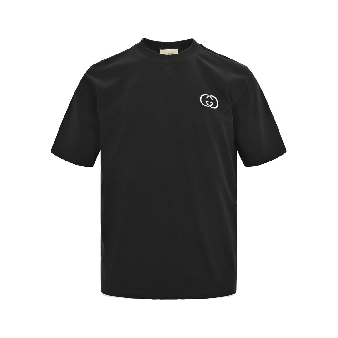 Weiße, mit Doppel-G-Ring bestickte kurze Ärmel