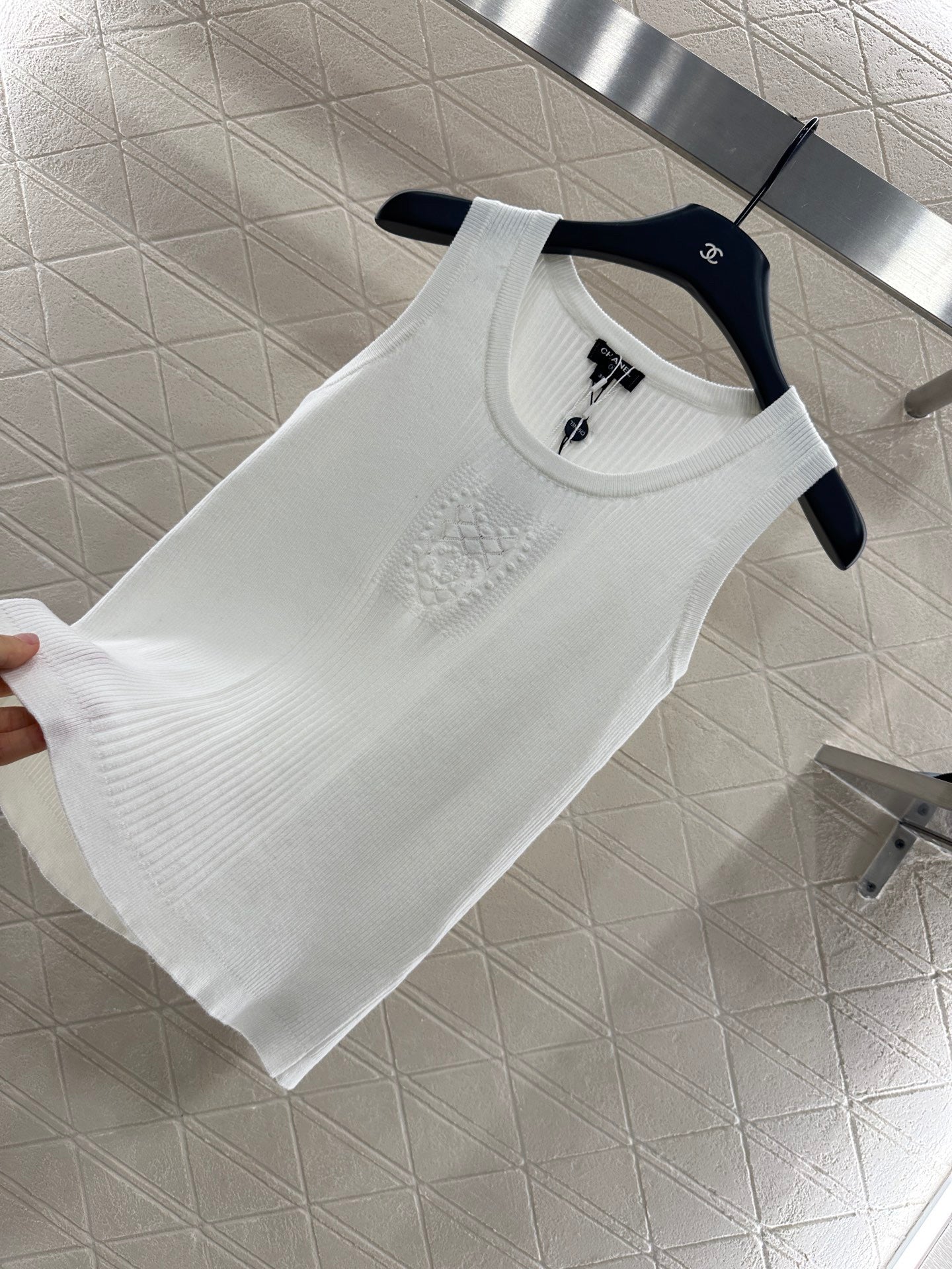 Tissage de fil de laine YB personnalisé, respirant et confortable, plein de texture, coupe de gilet tricoté, léger et respirant, plus adapté à l'été, motif de lettre double C en forme de cœur sur la poitrine, couches colorées, étiquette métallique double C au dos, soulignant le style de la marque, le vêtement est légèrement élastique, montrant un effet visuel amincissant, il est élégant à porter seul ou avec une couche intérieure, surface et accessoires personnalisés, identifier la version, version haute, 2 couleurs, 36, 38, 40