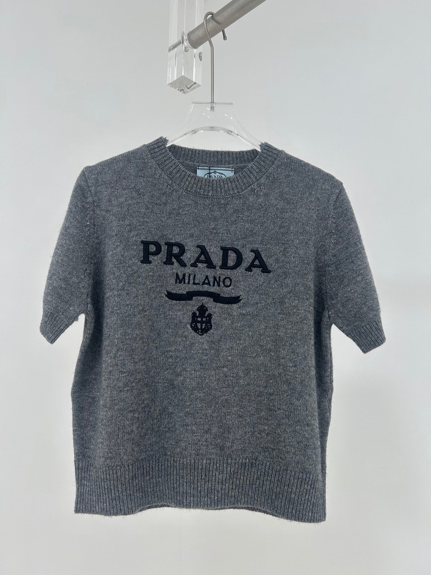 Manches courtes en laine tricotée avec logo lettre brodé en trois dimensions