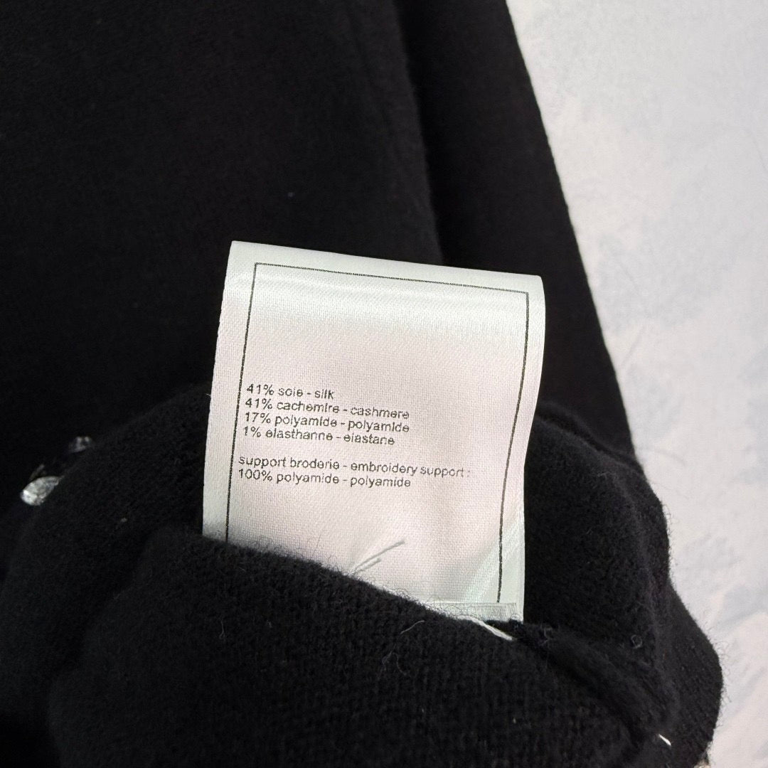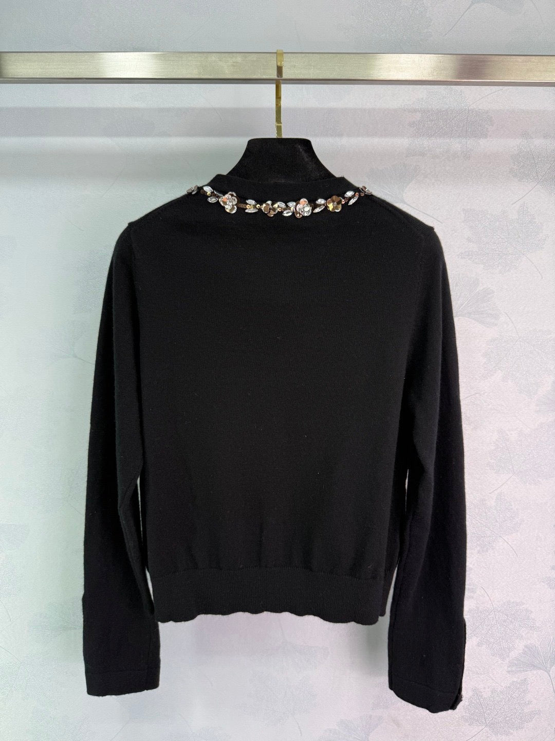 Nouveautés : Cardigan en tricot à fleurs perlées. Fil de soie et laine YB personnalisé, maille fine, texture laineuse claire, confortable et agréable au toucher. Coupe cardigan à col V et épaules tombantes. Boutons ronds brodés de losanges, lourds et élégants, pour une sensation de détente. Le col, les poignets et l'ourlet sont côtelés élastiquement. Les poignets et les poches avant sont ornés de fleurs perlées et pailletées, avec broderie. Le positionnement est décalé. La palette de couleurs noir et or enrichit le design d'une touche de superposition. Ce modèle s'adapte aux morphologies et est tendance.