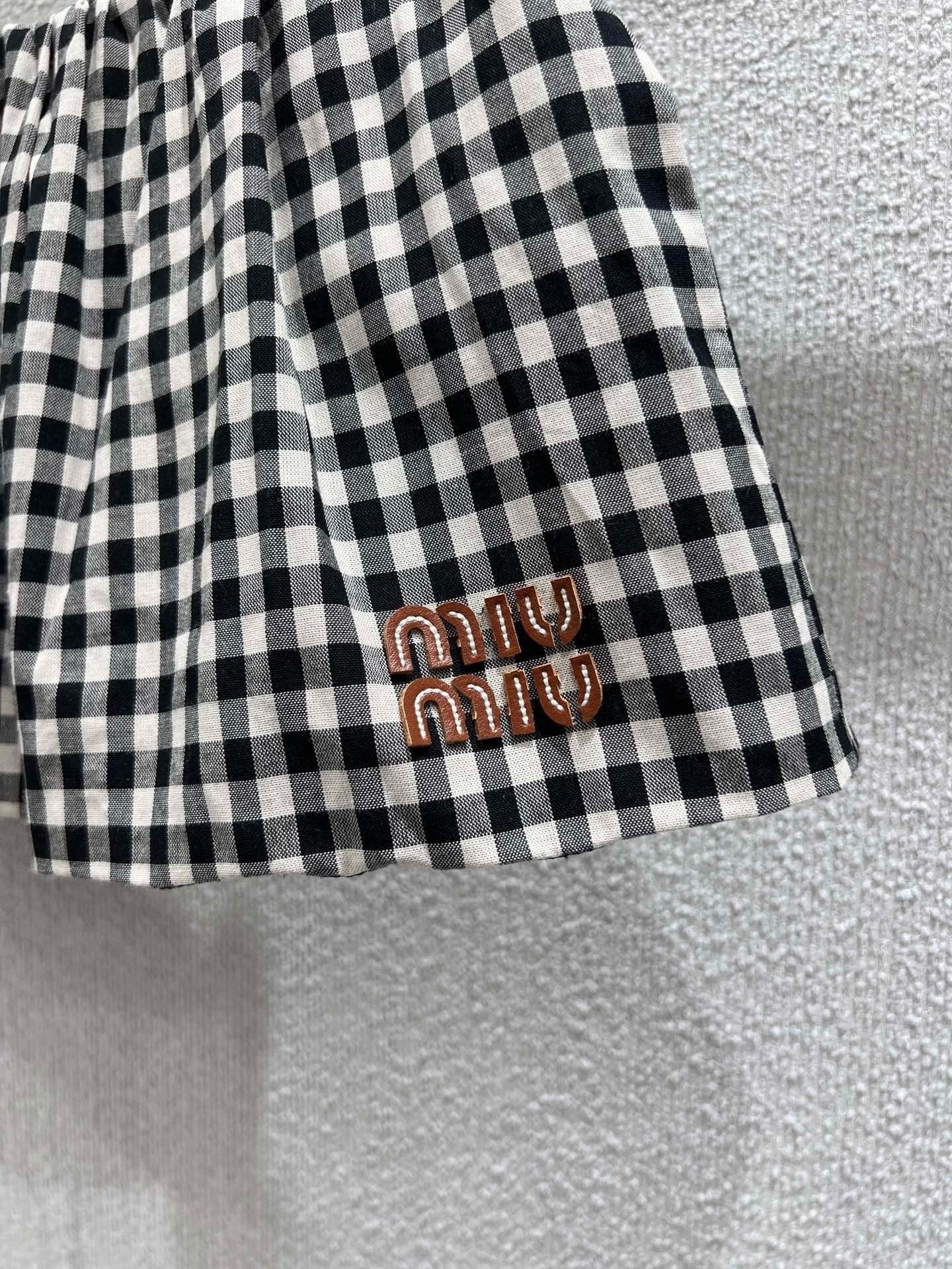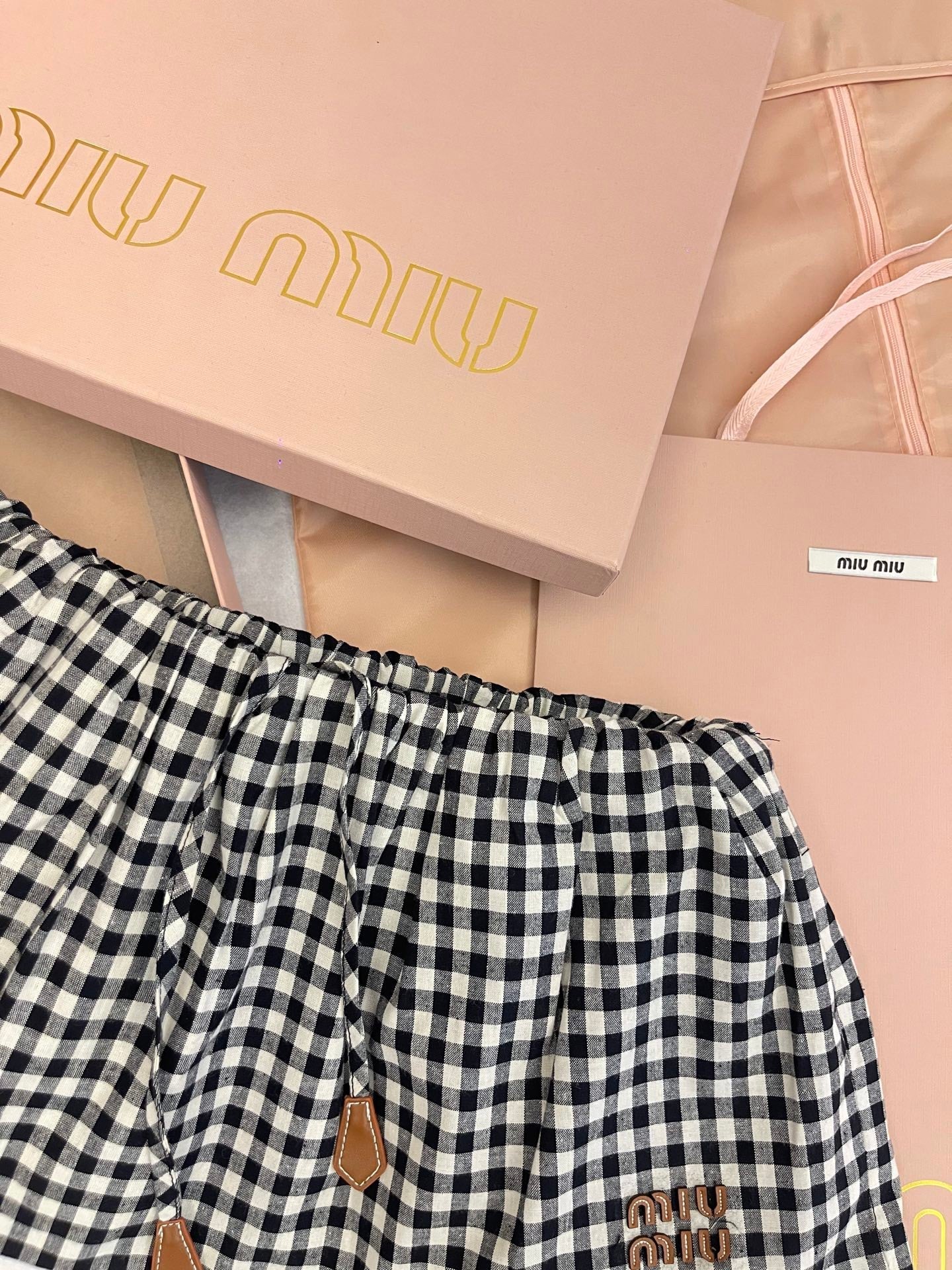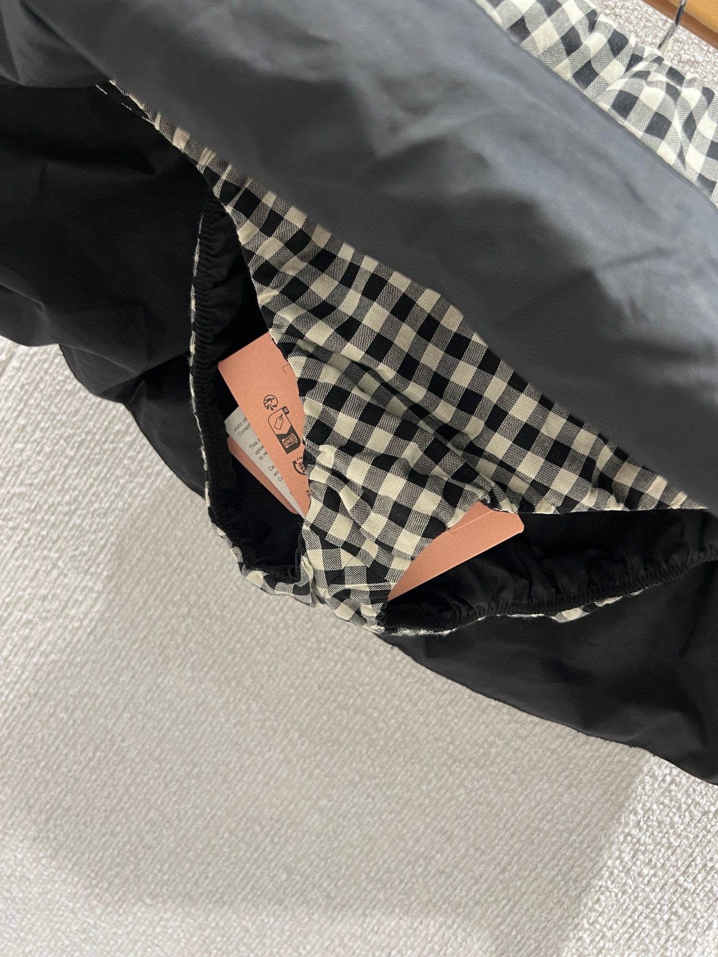 Cette mini-jupe vichy noire et blanche présente une coupe évasée et ludique. Son cordon de serrage à la taille et ses pompons en cuir permettent de l'ajuster. Un petit logo brodé sur le côté apporte une touche subtile à la marque.