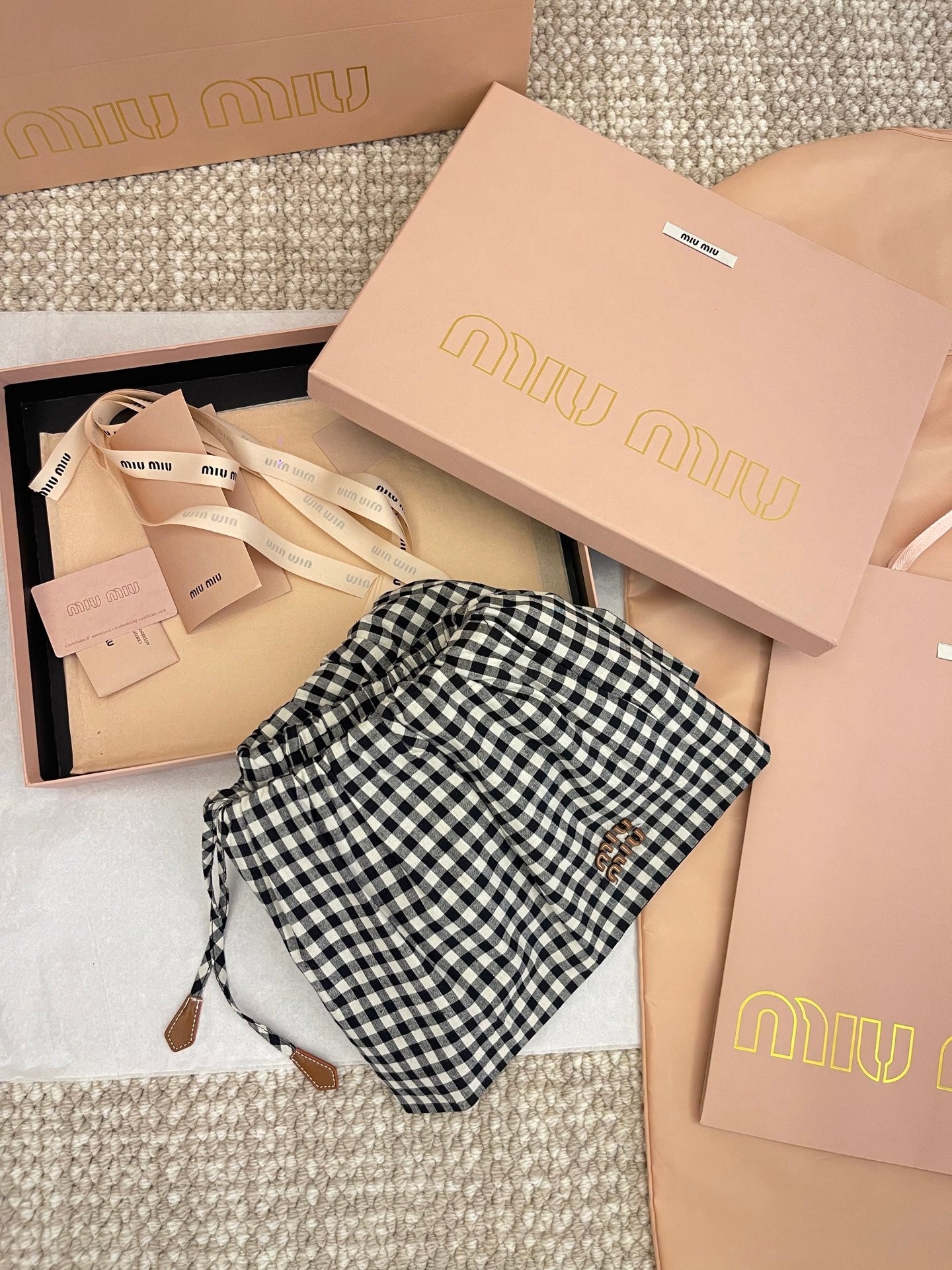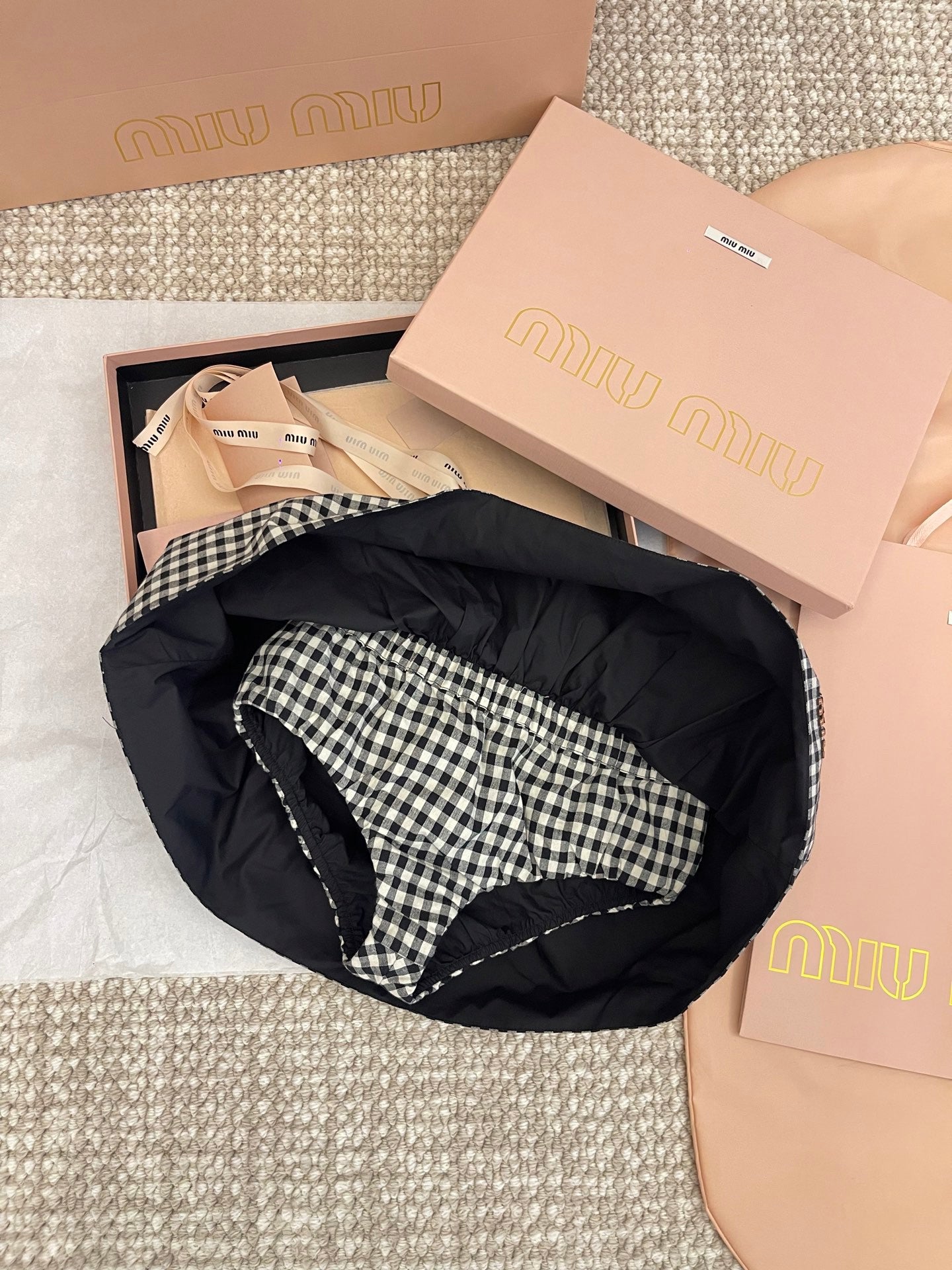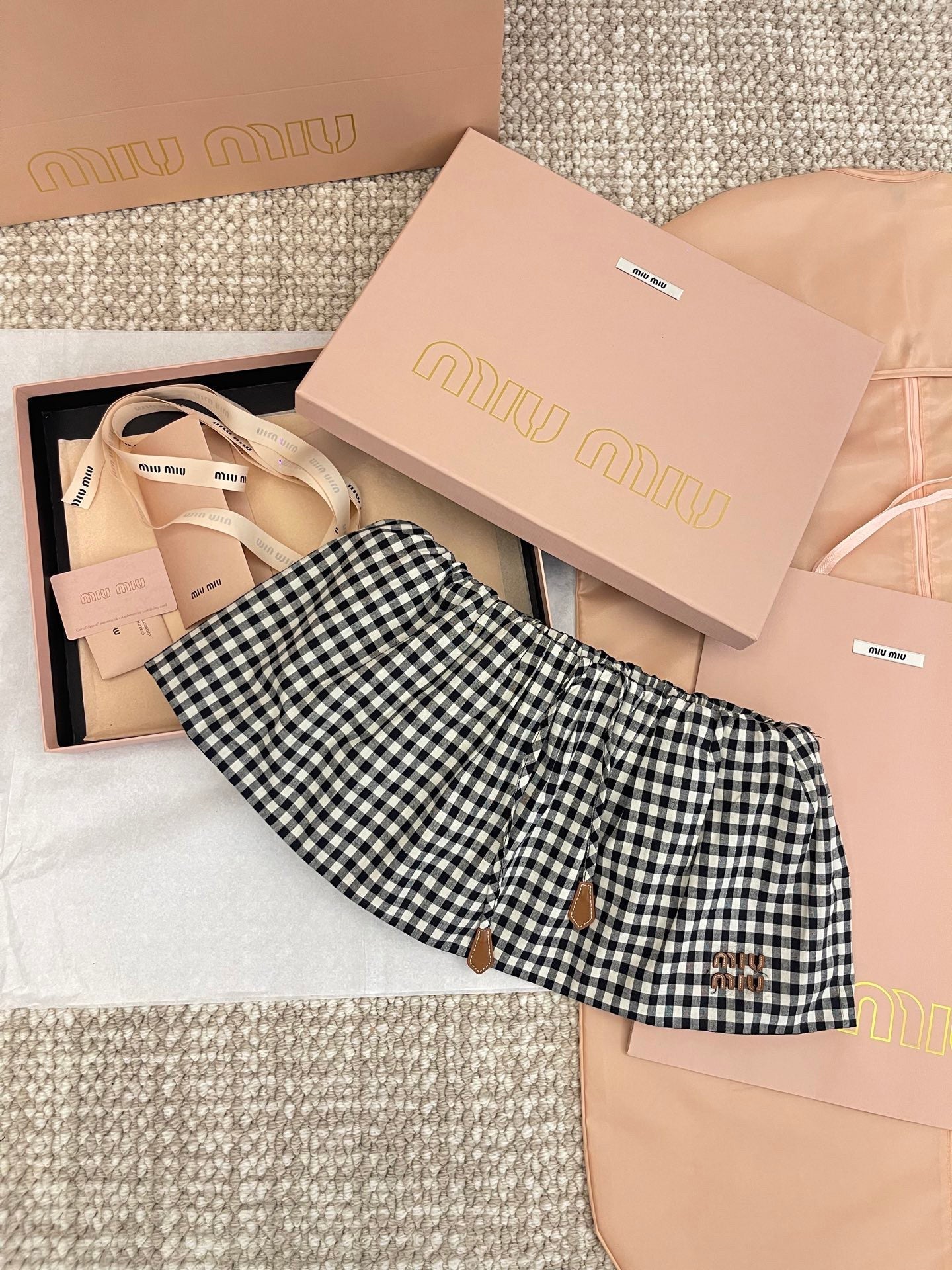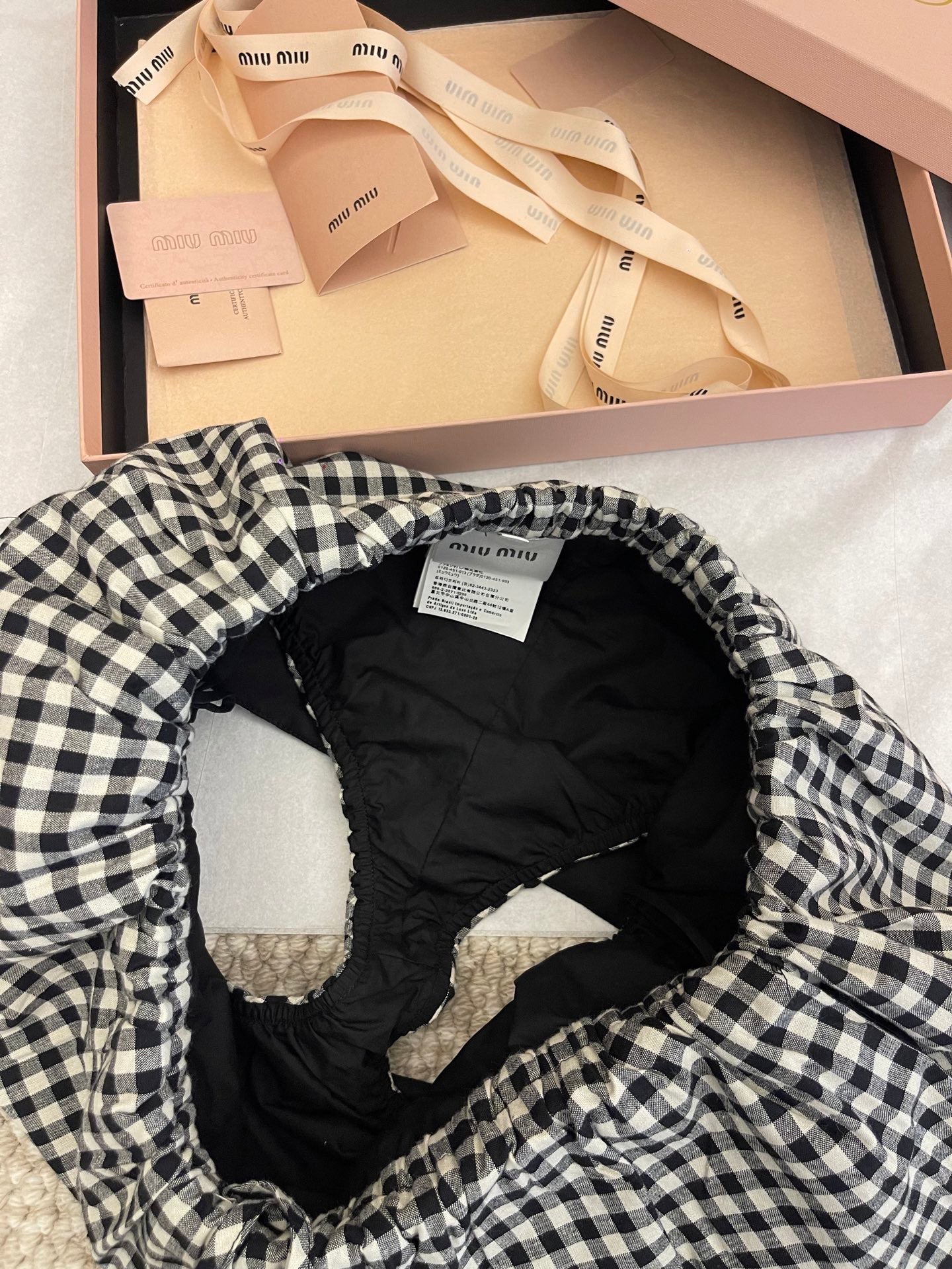 Cette mini-jupe vichy noire et blanche présente une coupe évasée et ludique. Son cordon de serrage à la taille et ses pompons en cuir permettent de l'ajuster. Un petit logo brodé sur le côté apporte une touche subtile à la marque.