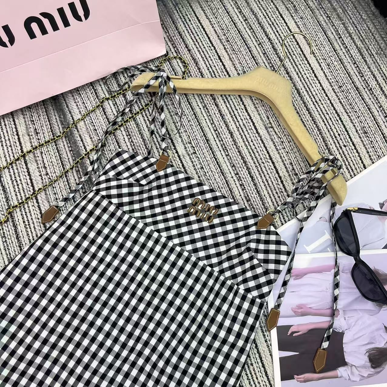 Cette robe nuisette à carreaux vichy noir et blanc est dotée de bretelles réglables à nouer pour un look mignon et personnalisé. Elle épouse les formes et met en valeur vos courbes. Un petit logo de la marque sur le devant apporte une touche subtile.