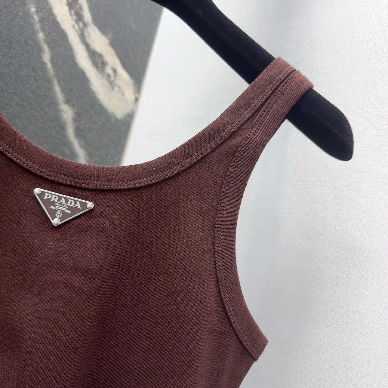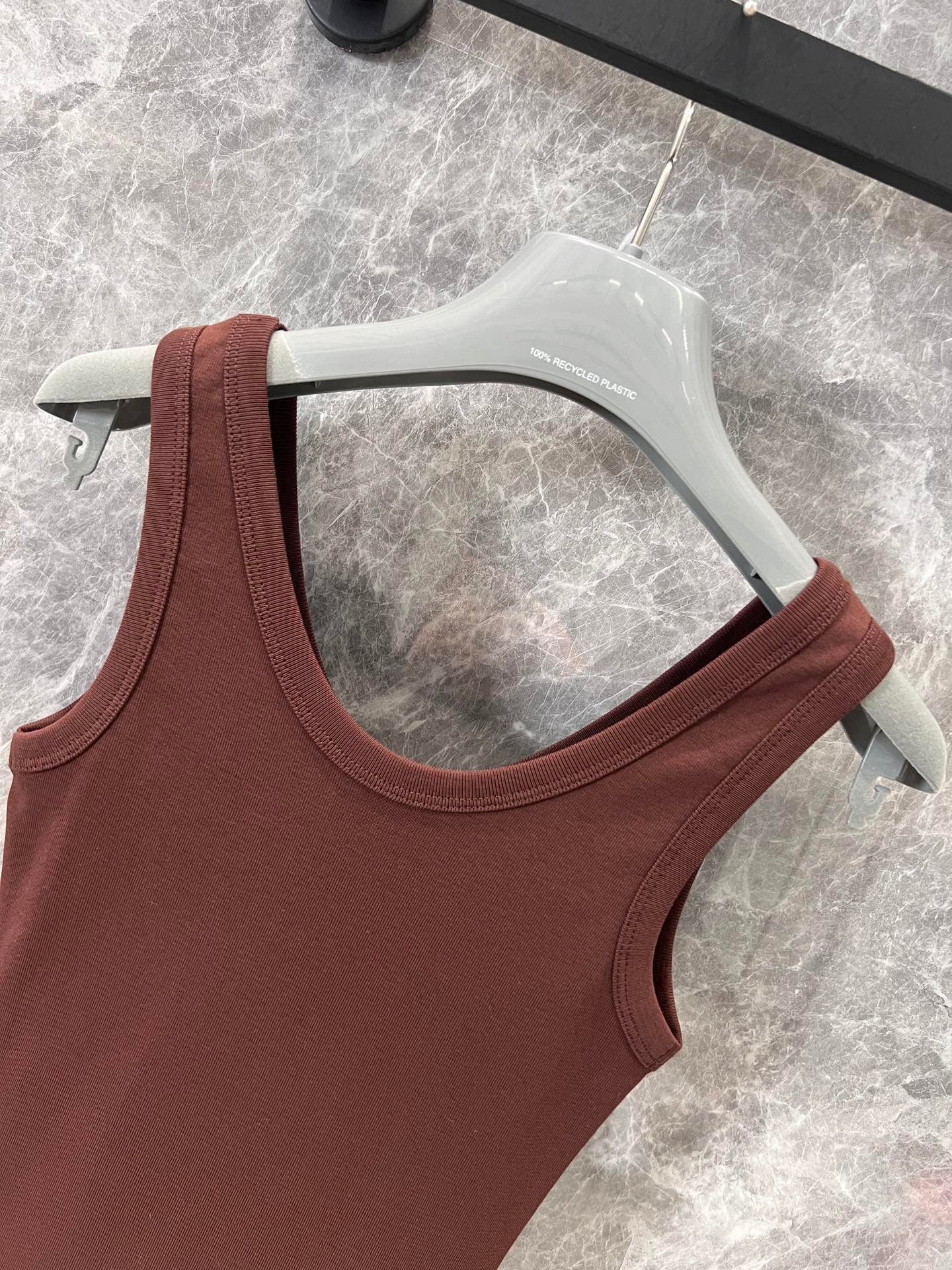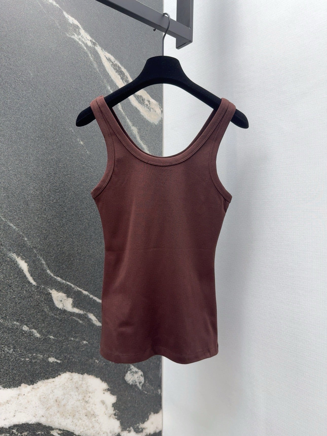 Ce débardeur côtelé chocolat transforme la simplicité en sophistication : son col en U fluide épouse les clavicules, tandis qu'un délicat emblème géométrique sur la poitrine ajoute une touche de raffinement. Sa maille côtelée moulante sculpte les courbes avec une précision discrète, ce qui en fait un atout discret pour toute garde-robe.