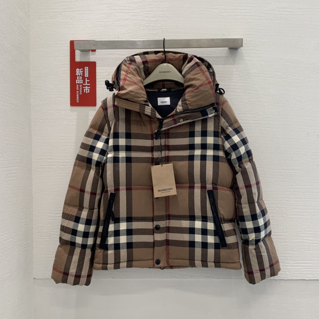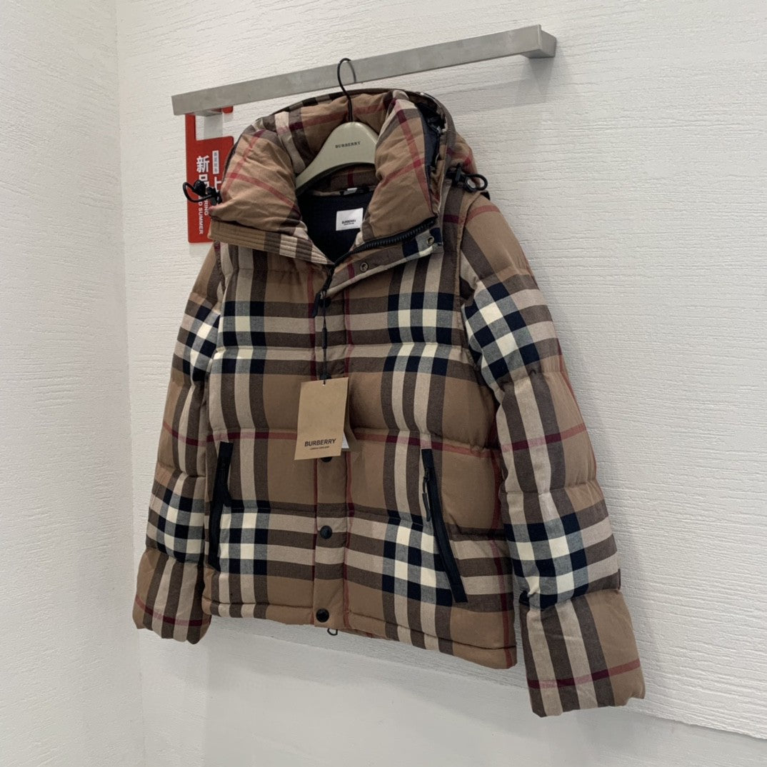 Doudoune femme classique à carreaux avec manches amovibles et fermeture éclair