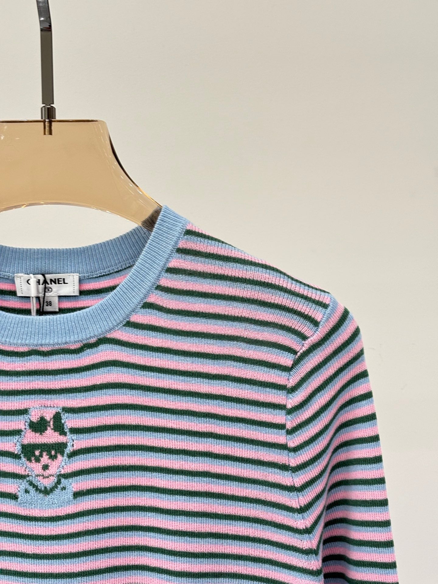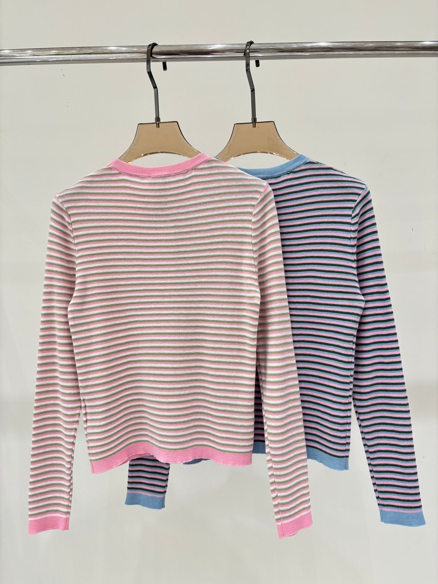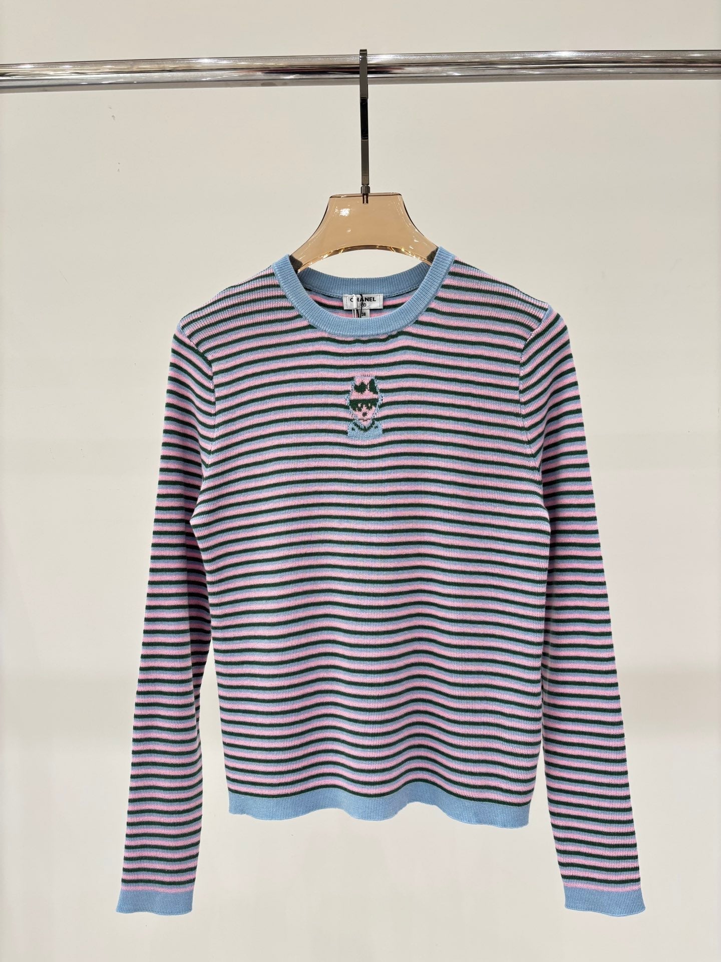 Manches longues | 25 printemps et été nouveau col rond motif dessin animé jacquard rayures fines couleur assortie ourlet couleur contrastée décontracté tricoté manches longues