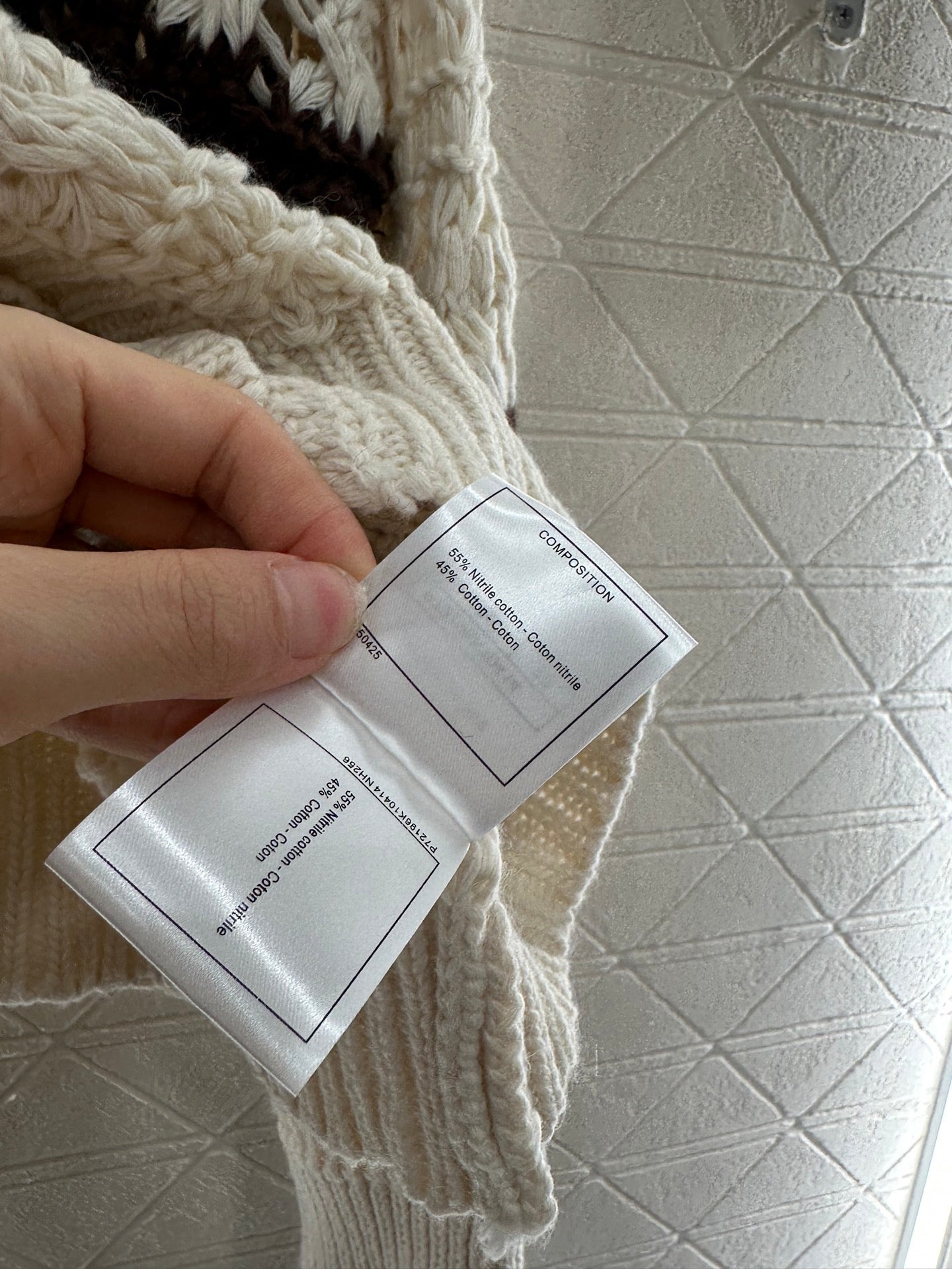 Confectionné en fil de coton YB personnalisé, ce cardigan est doux et confortable, élégant et près du corps. Son col en V s'étend de la poitrine aux manches, créant un contraste de couleurs claires et foncées avec le corps. Les poignets et l'ourlet reprennent les contours du cardigan, créant une silhouette définie. Ce cardigan est orné de multiples points de crochet torsadés, créant un look raffiné et polyvalent. Le logo double C en peluche met en valeur le style signature de la marque et lui confère une allure élégante. Il s'accorde naturellement avec toutes vos tenues, qu'elles soient chic ou élégantes. Tissus et accessoires personnalisés.
