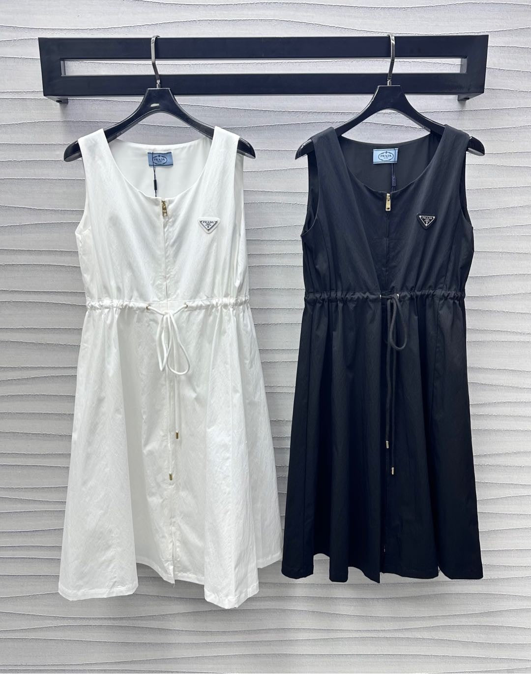 - Accents métalliques : Des fermetures éclair dorées et un élégant emblème géométrique ajoutent une touche de luxe. Ces petits détails subliment la robe, la faisant passer de simple à sophistiquée, sans effort excessif.