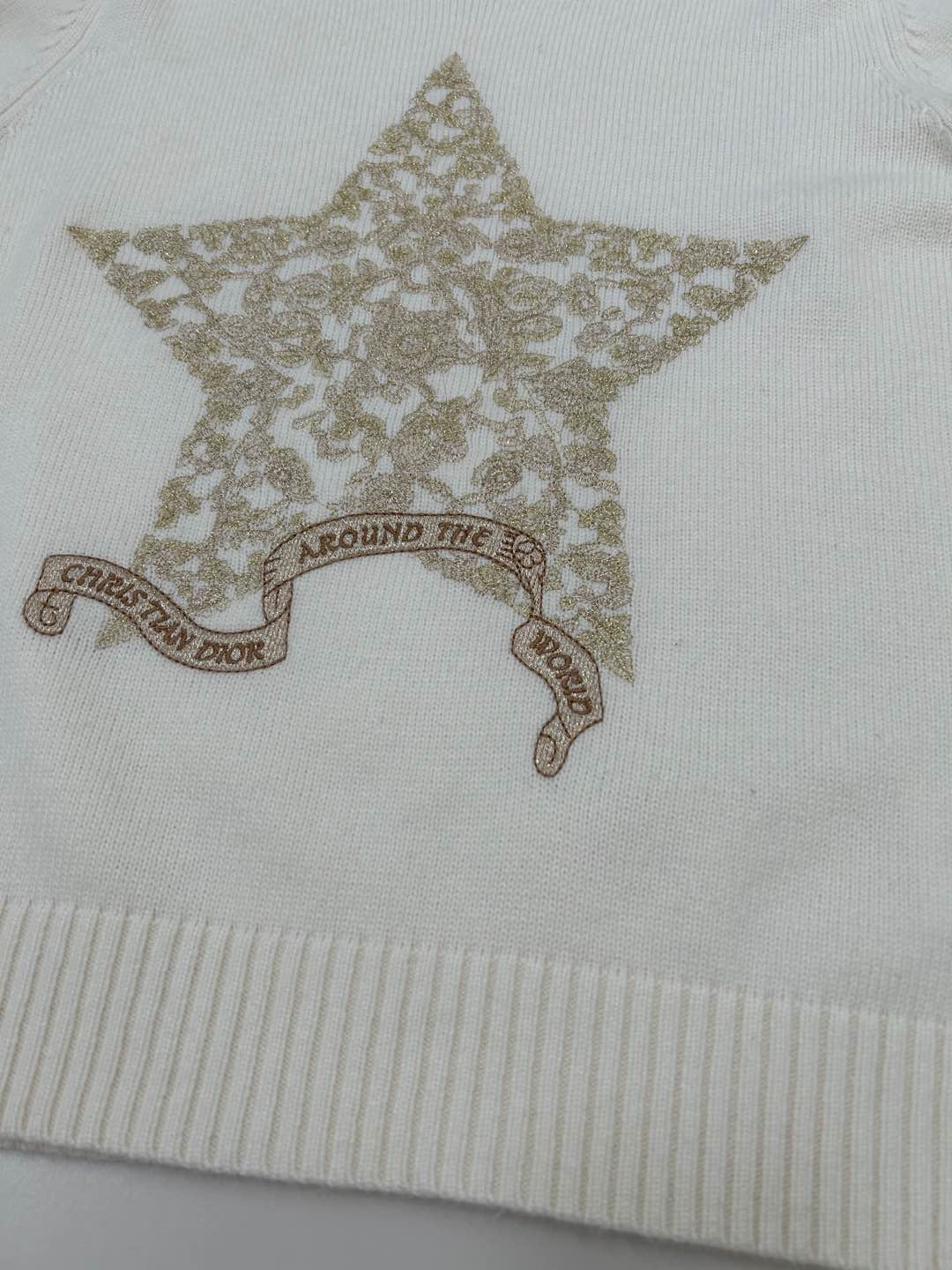 Pull en laine à col rond avec ruban étoile à cinq branches et fil d'or