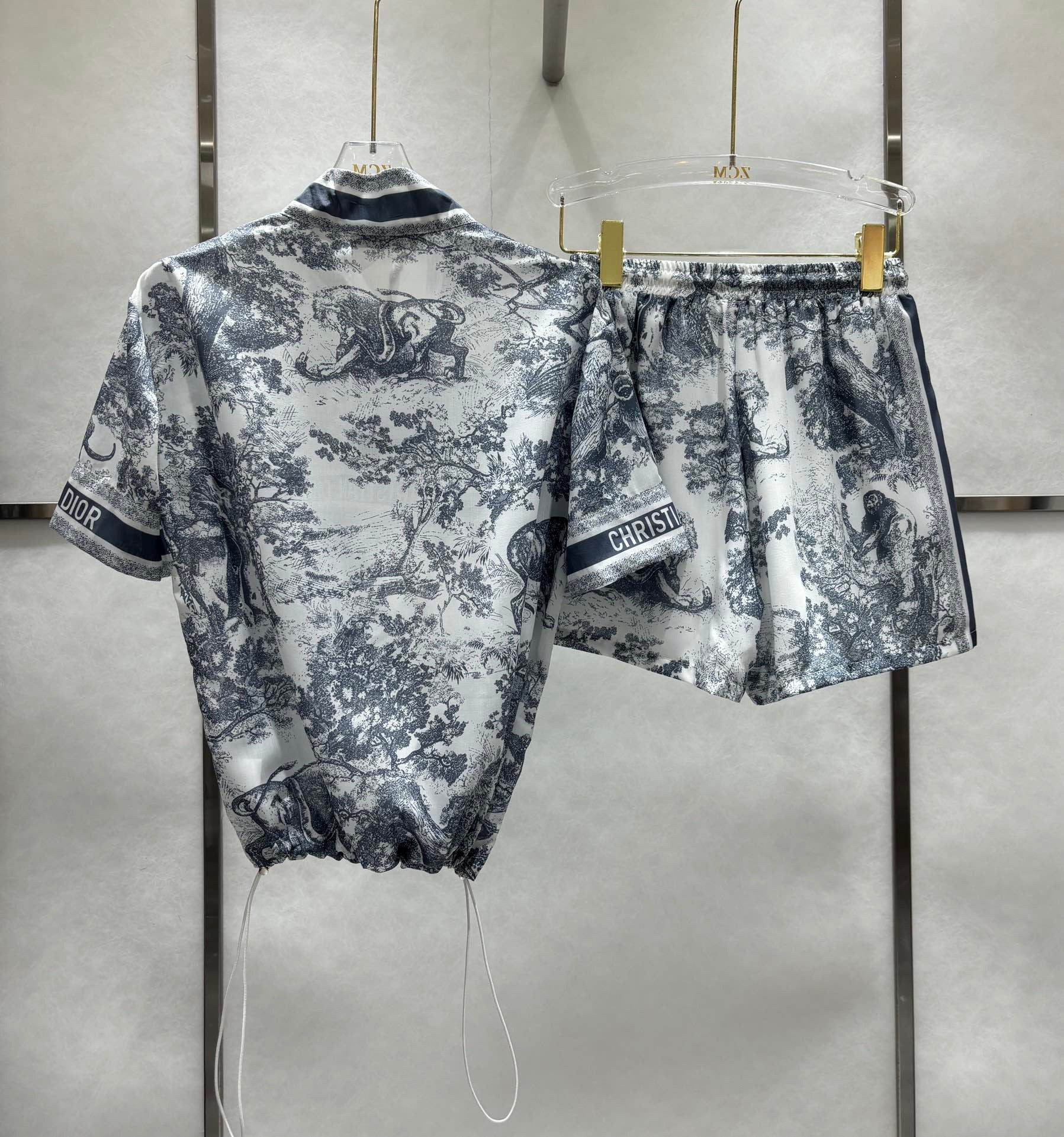 Nouveau printemps et été animal jungle loisirs manches courtes + taille haute élastique sport léger tissu de gaze est super approprié pour l'été chaud confortable respirant rafraîchissant cool inspiration florale fusion animal élégance française globale tissu de teinture fixe avec technologie d'impression active luxueux et à la mode plein de sensation haut de gamme version décontractée ample du haut du corps pour réduire l'âge de la fille la sensation peut être sucrée ou salée sport loisirs