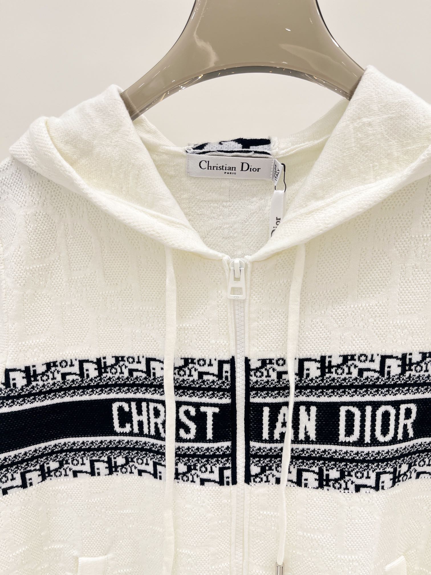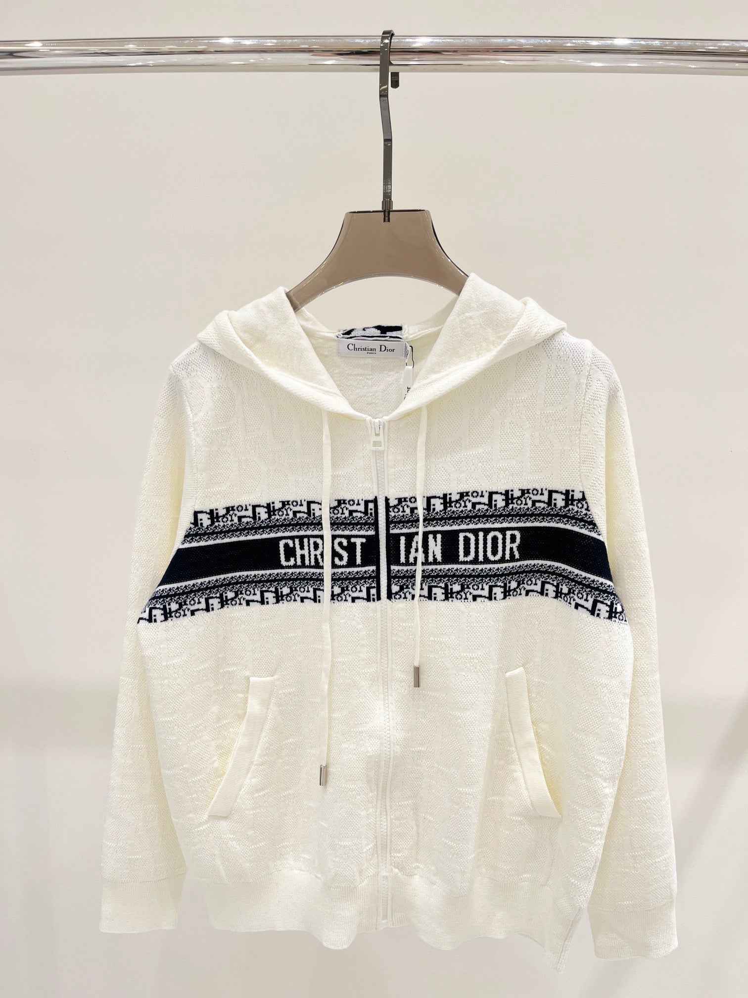 D Nouveau sweat à capuche avec monogramme et fermeture éclair en tricot à manches longues