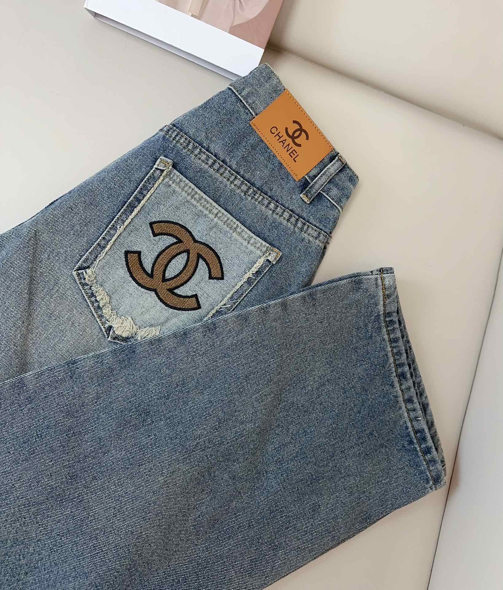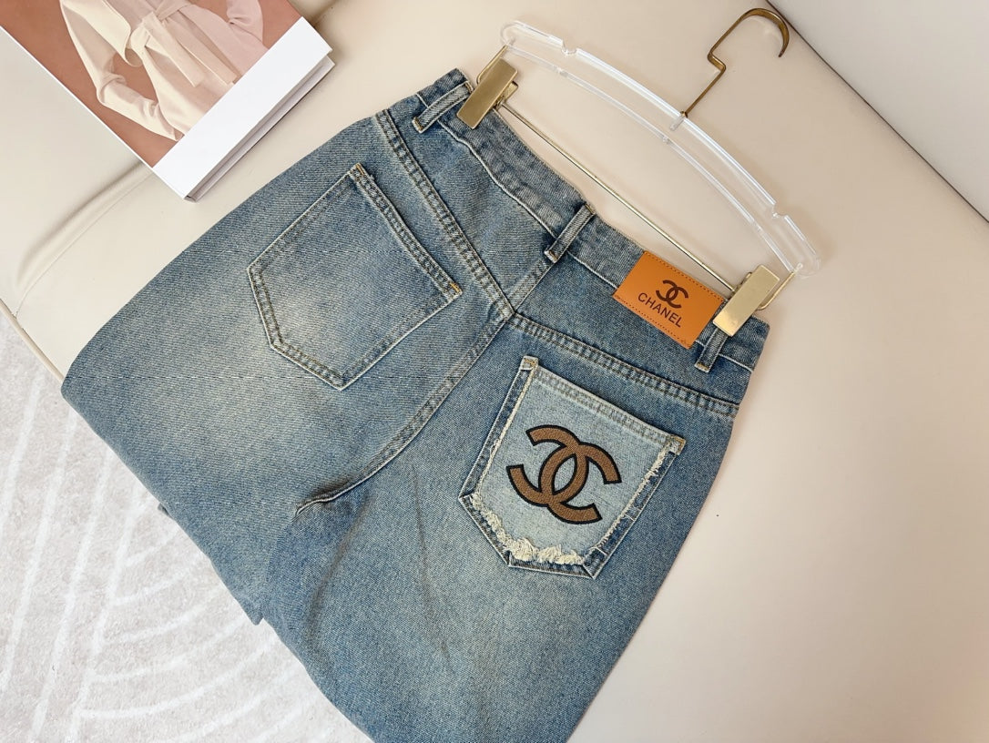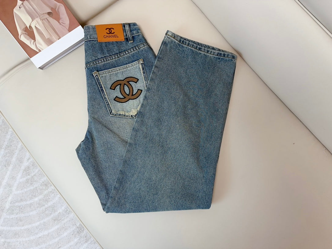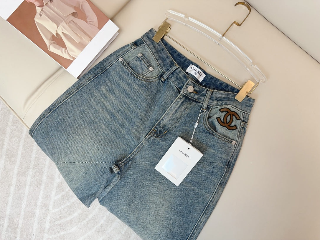 Jean avec logo brodé de couleur contrastée