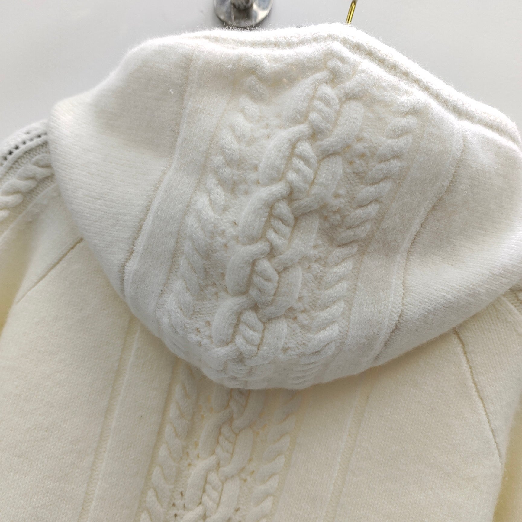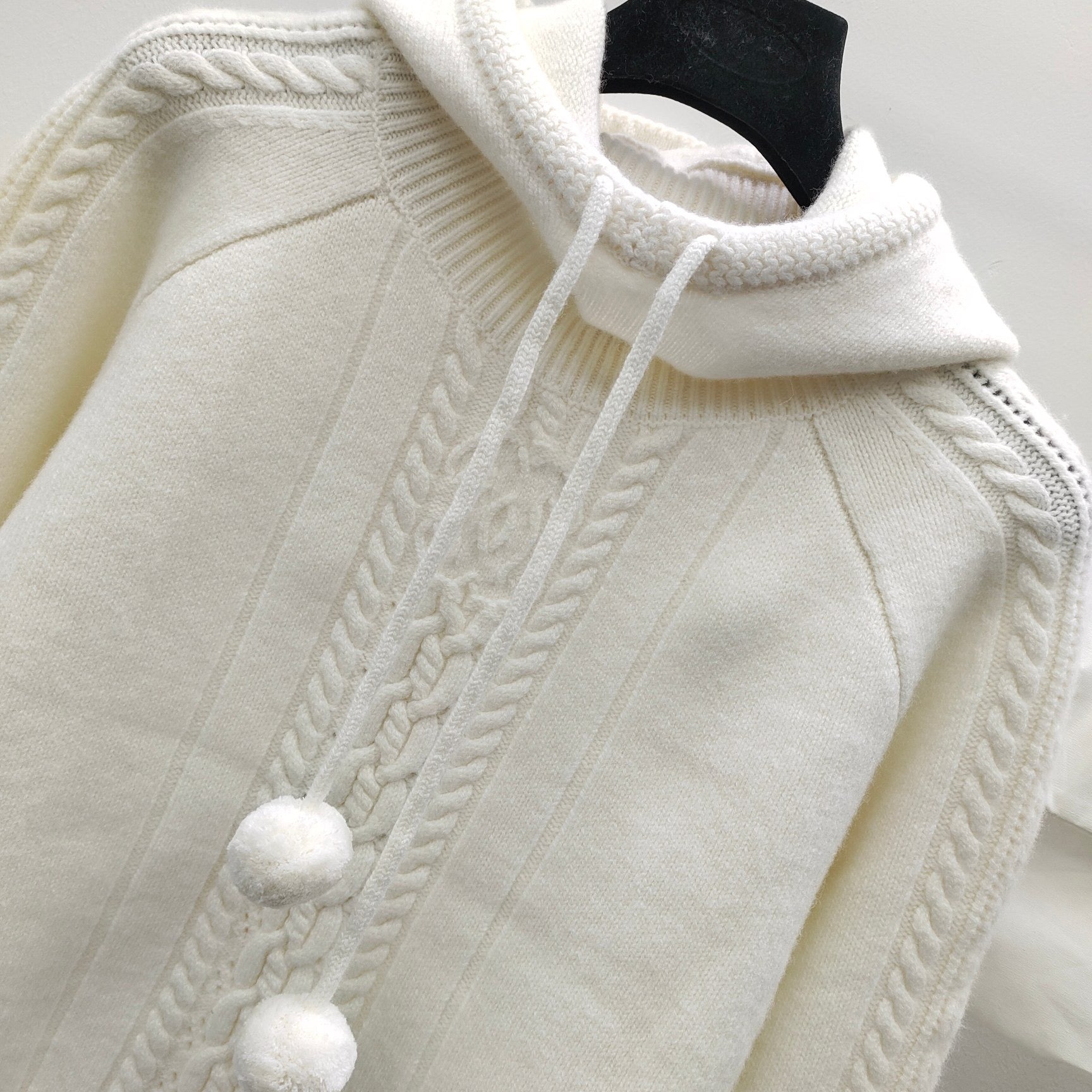 Haut tricoté à capuche avec pendentif boule jacquard tridimensionnel