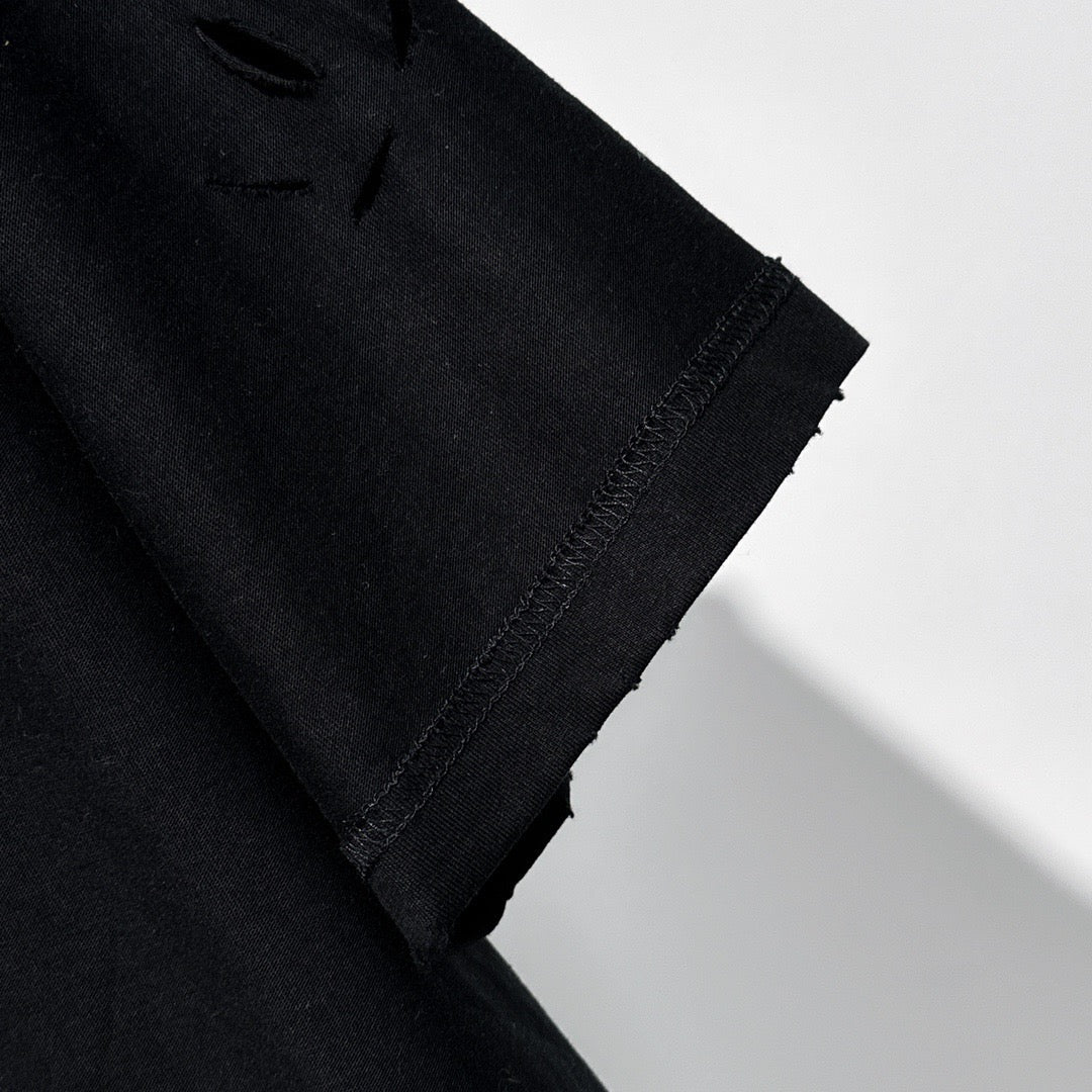 Le nouveau couteau à la mode de l'été coupe des trous dans le t-shirt court à col rond en coton,